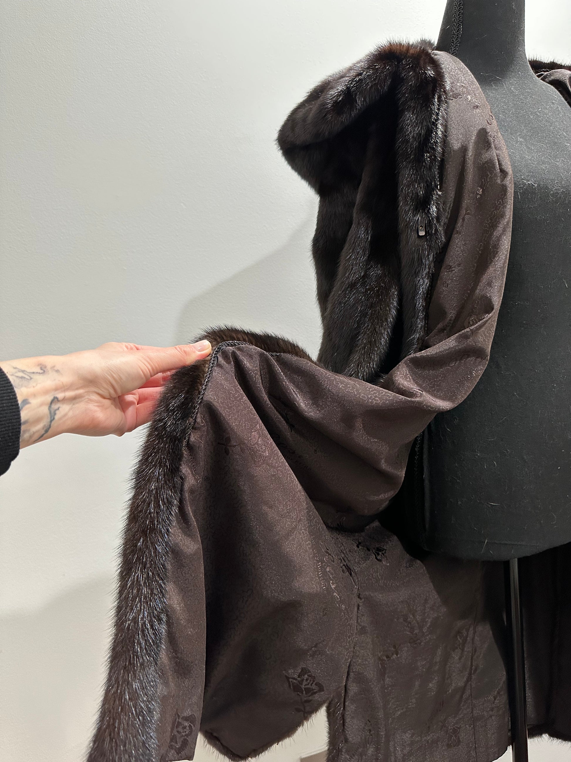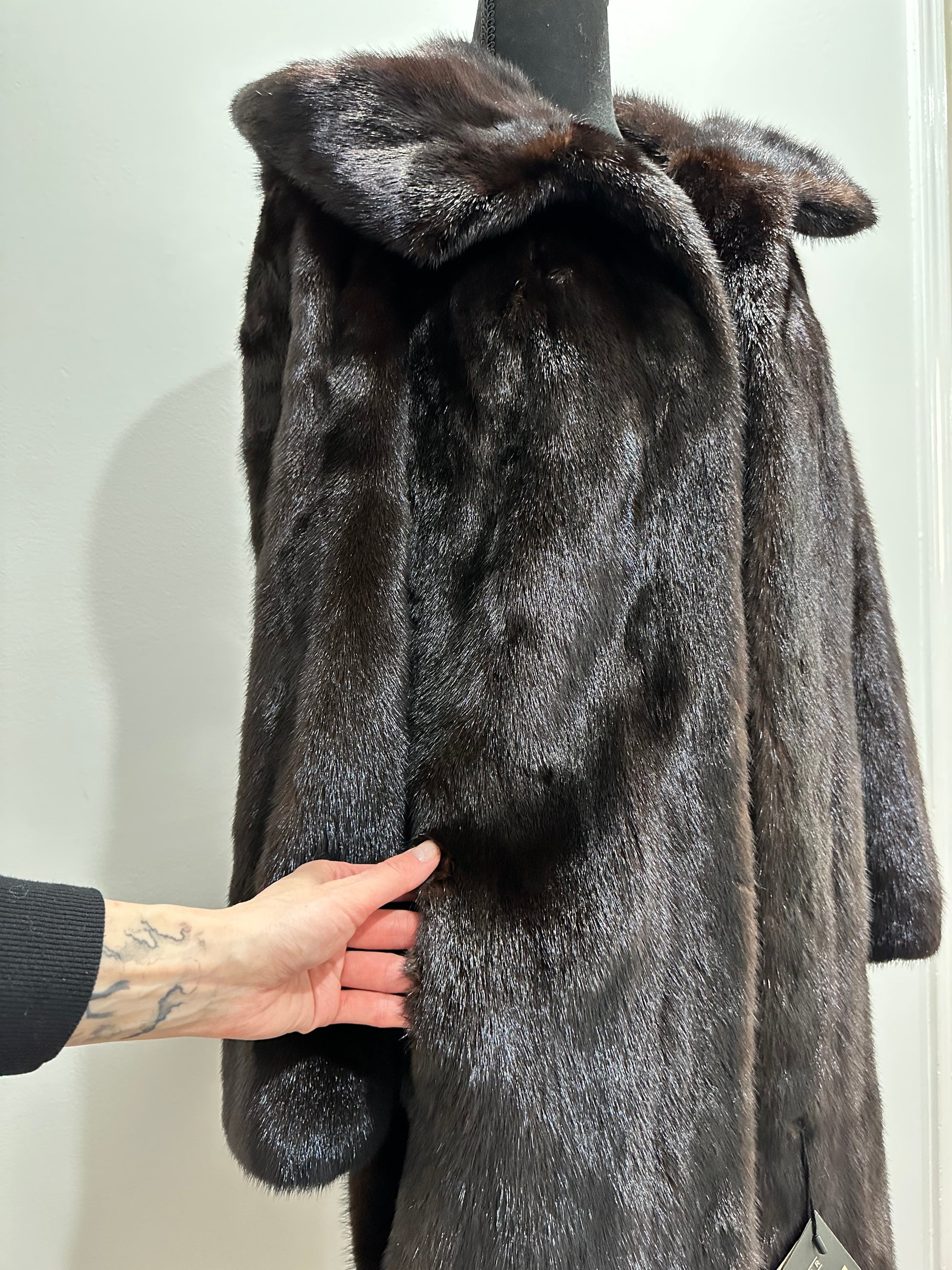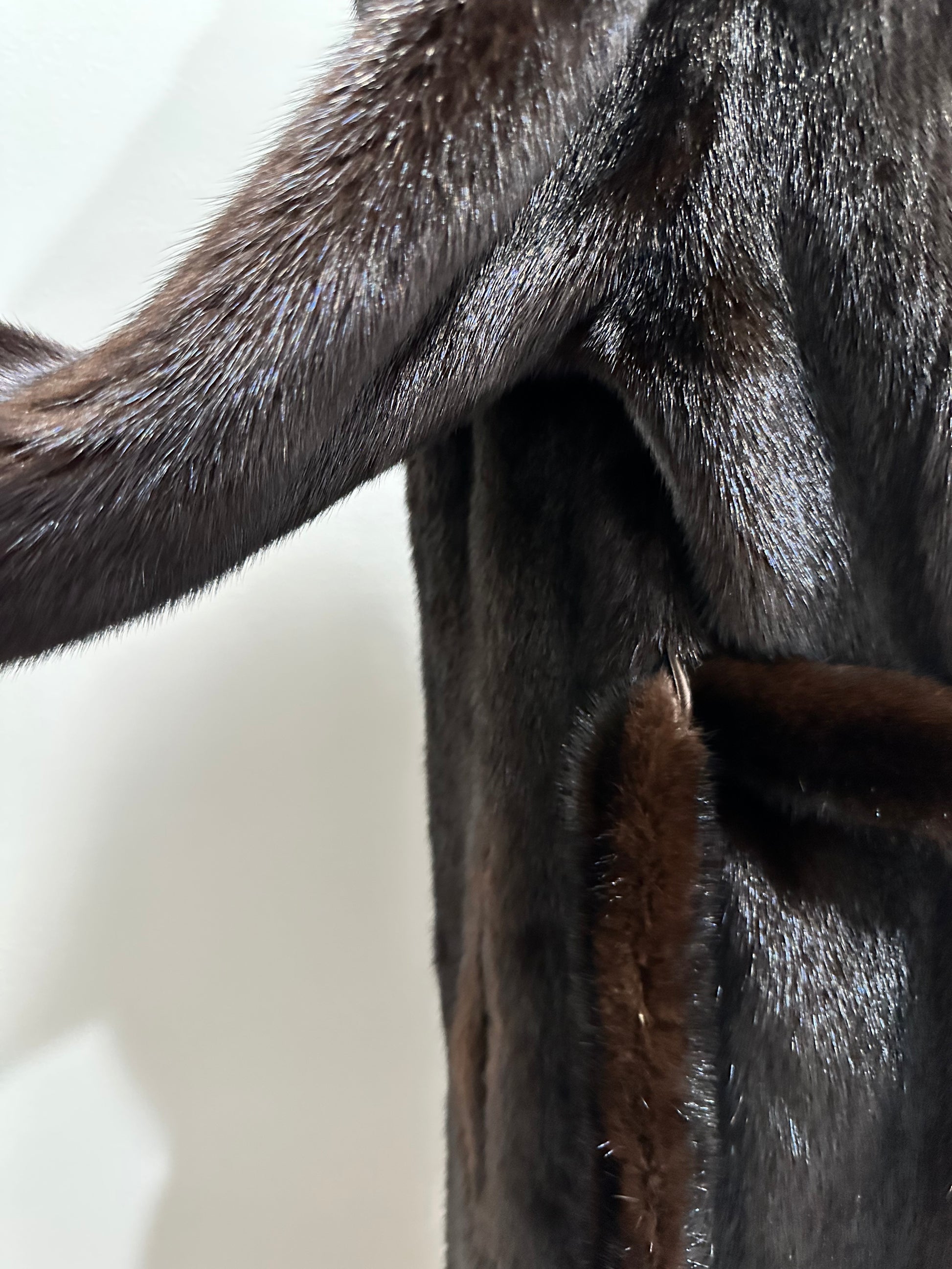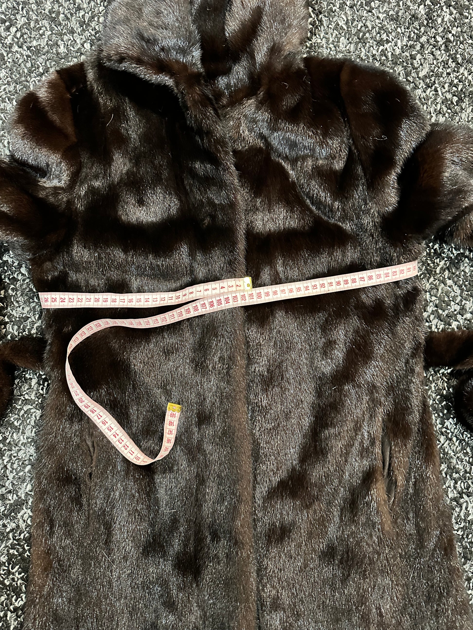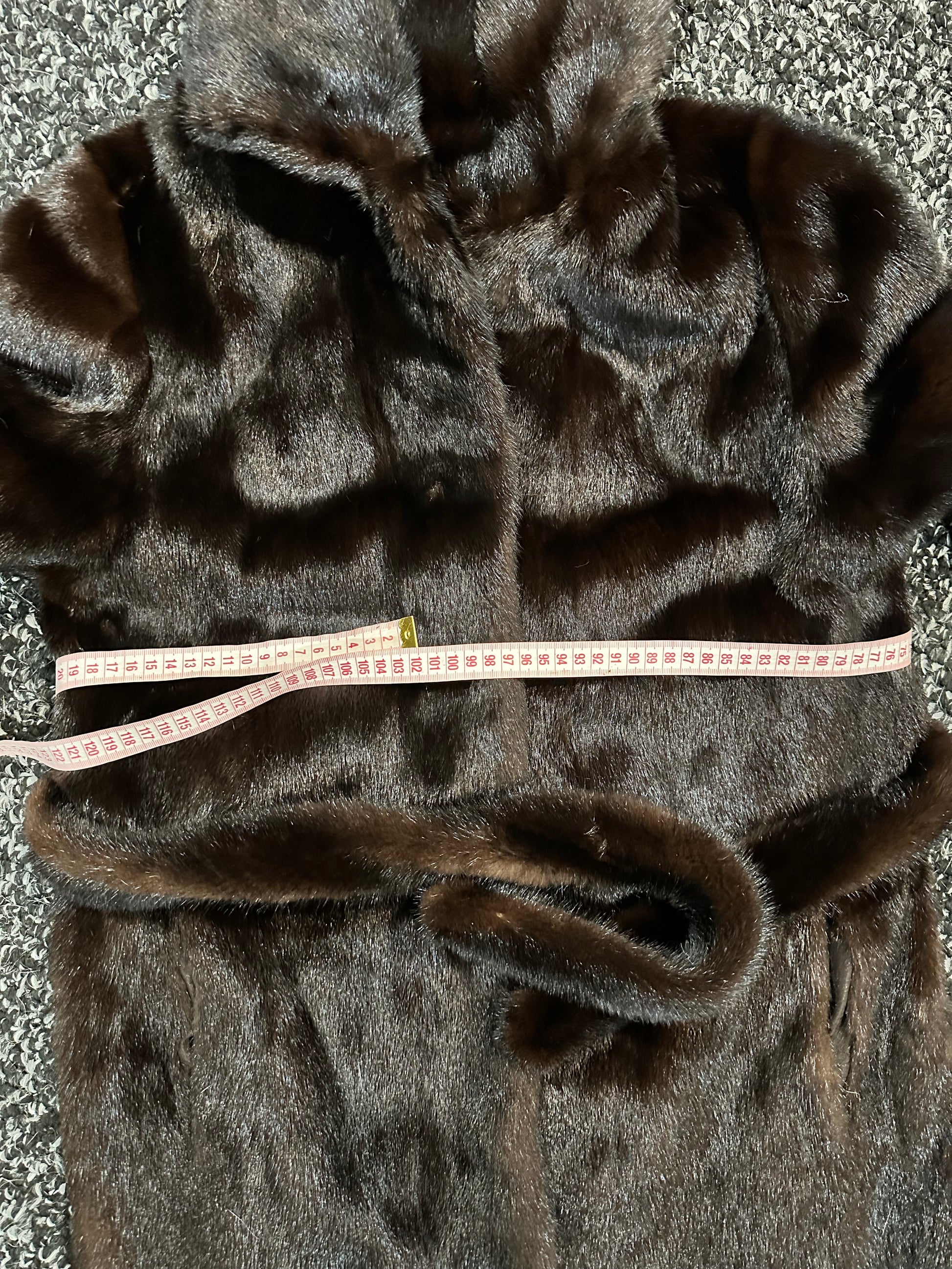 NEW REAL MINK FUR coat size M BELTED HOODED 1201104 long sleeve jacket BROWN