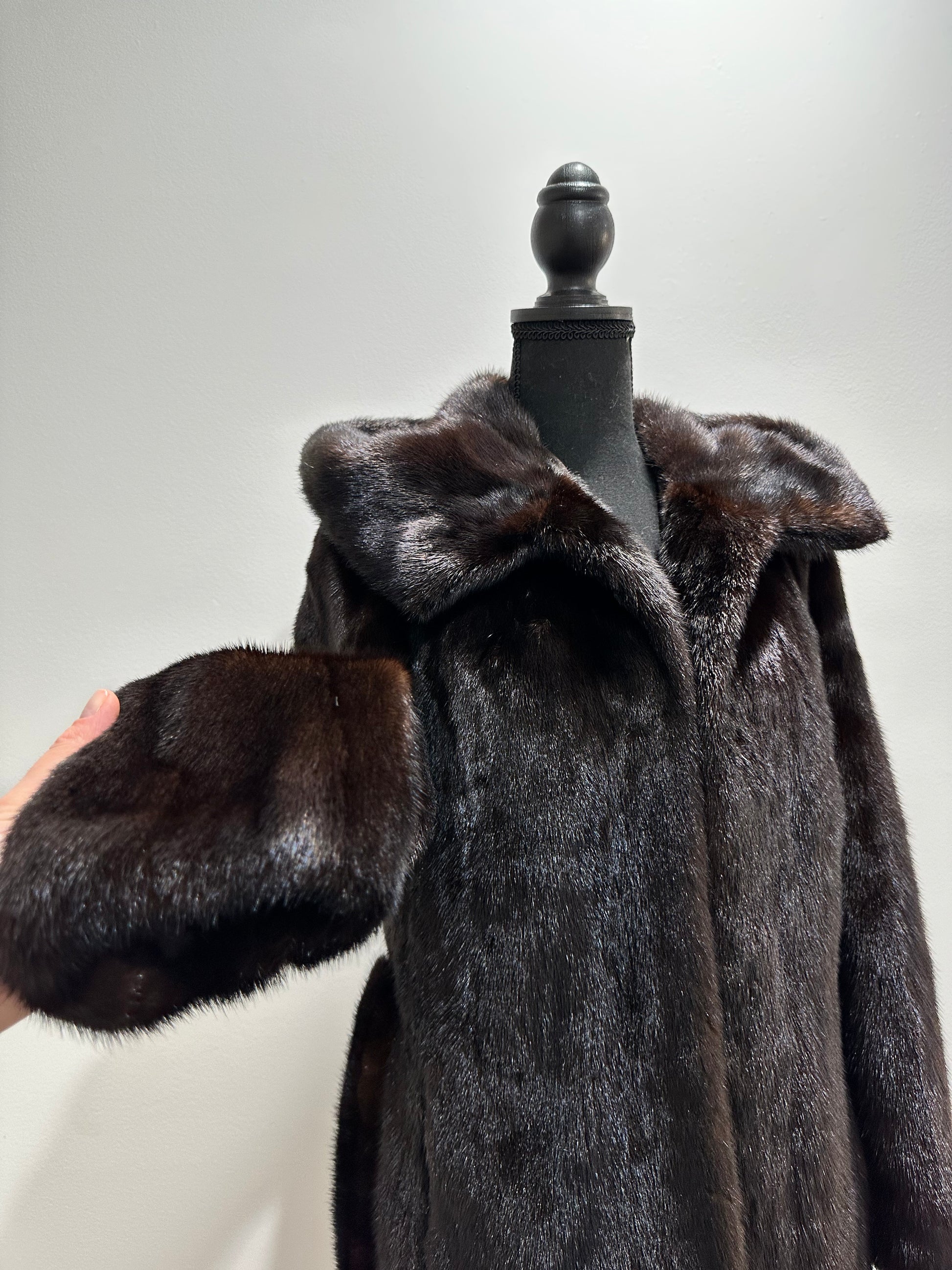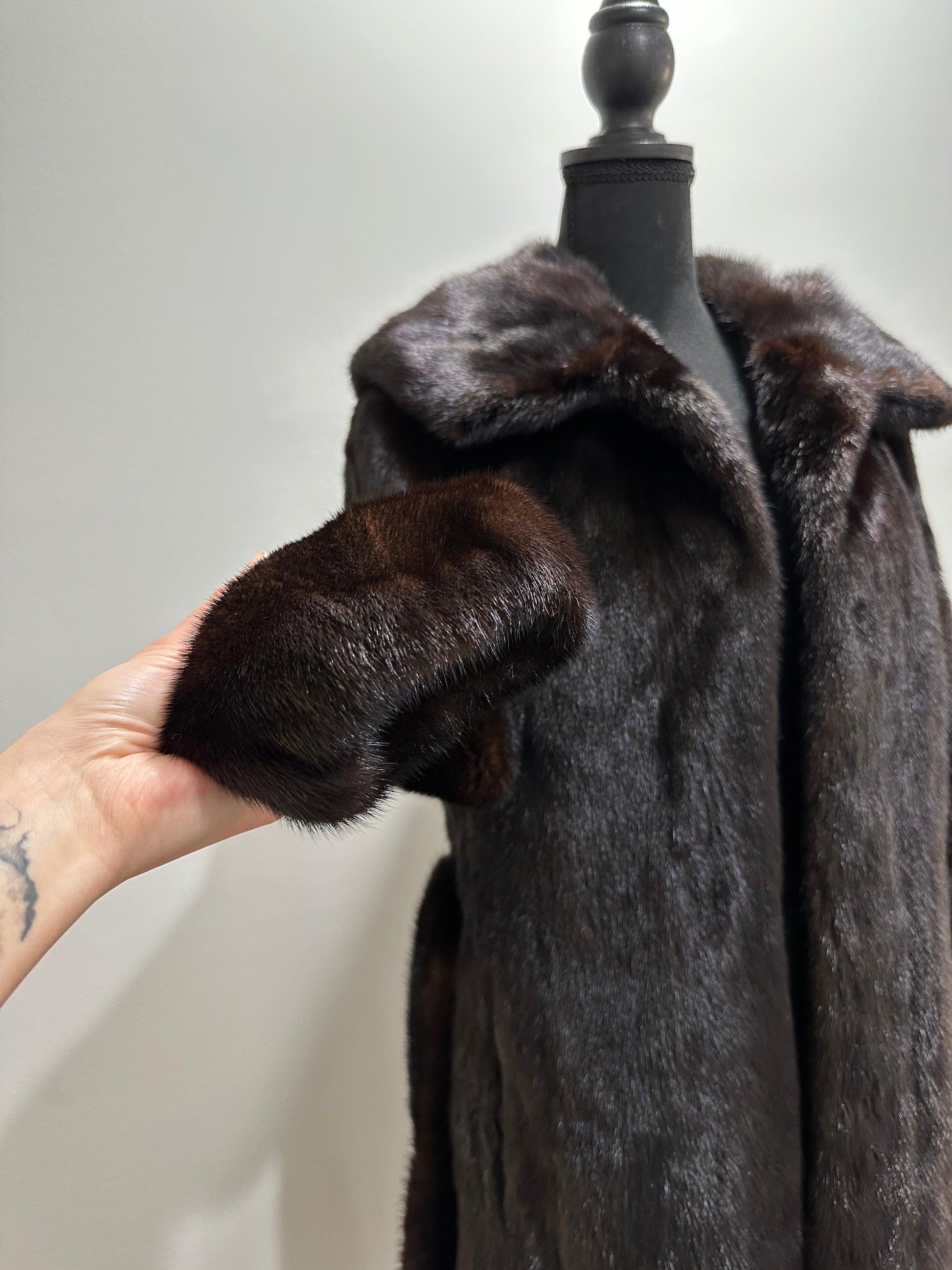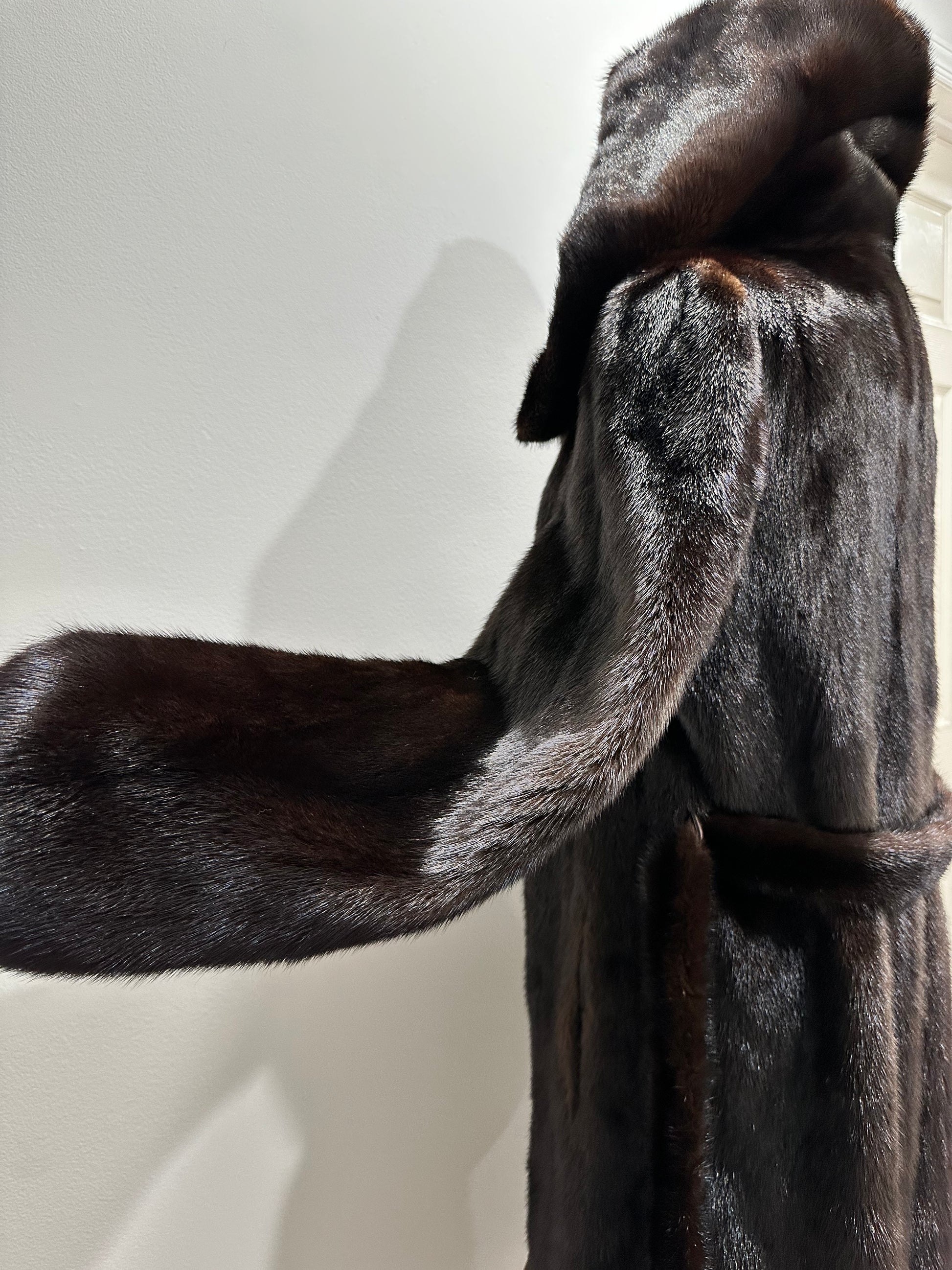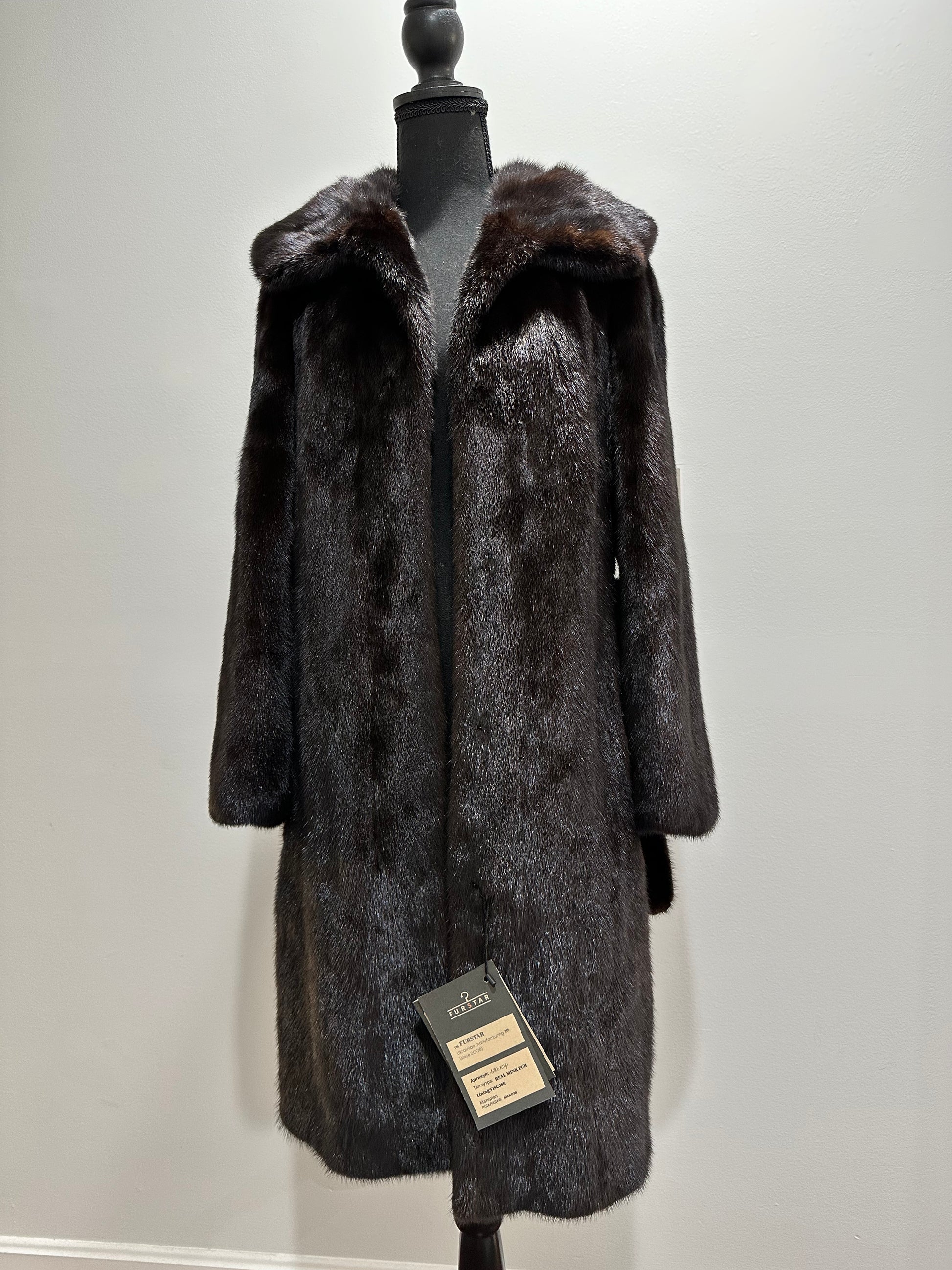NEW REAL MINK FUR coat size M BELTED HOODED 1201104 long sleeve jacket BROWN