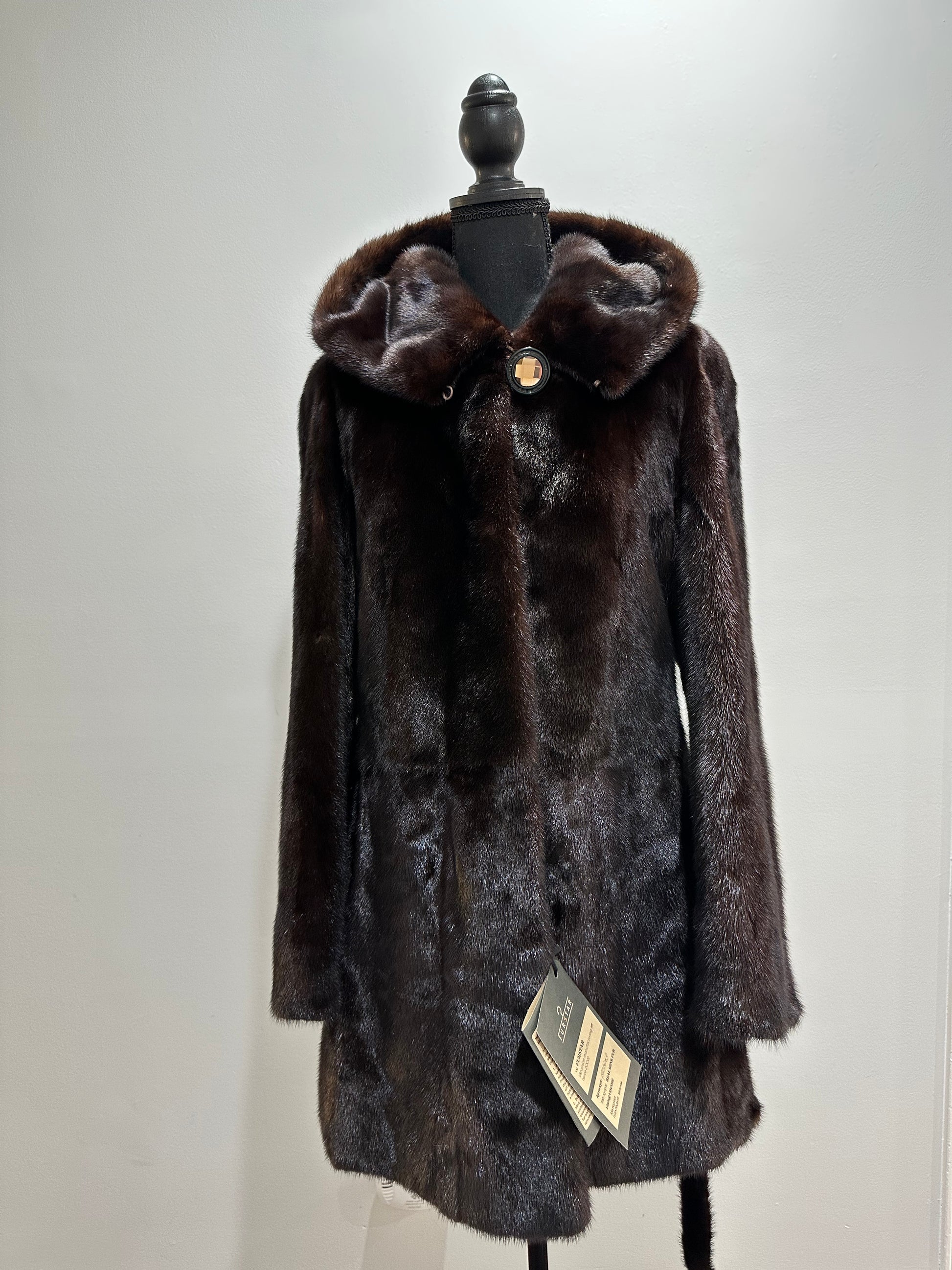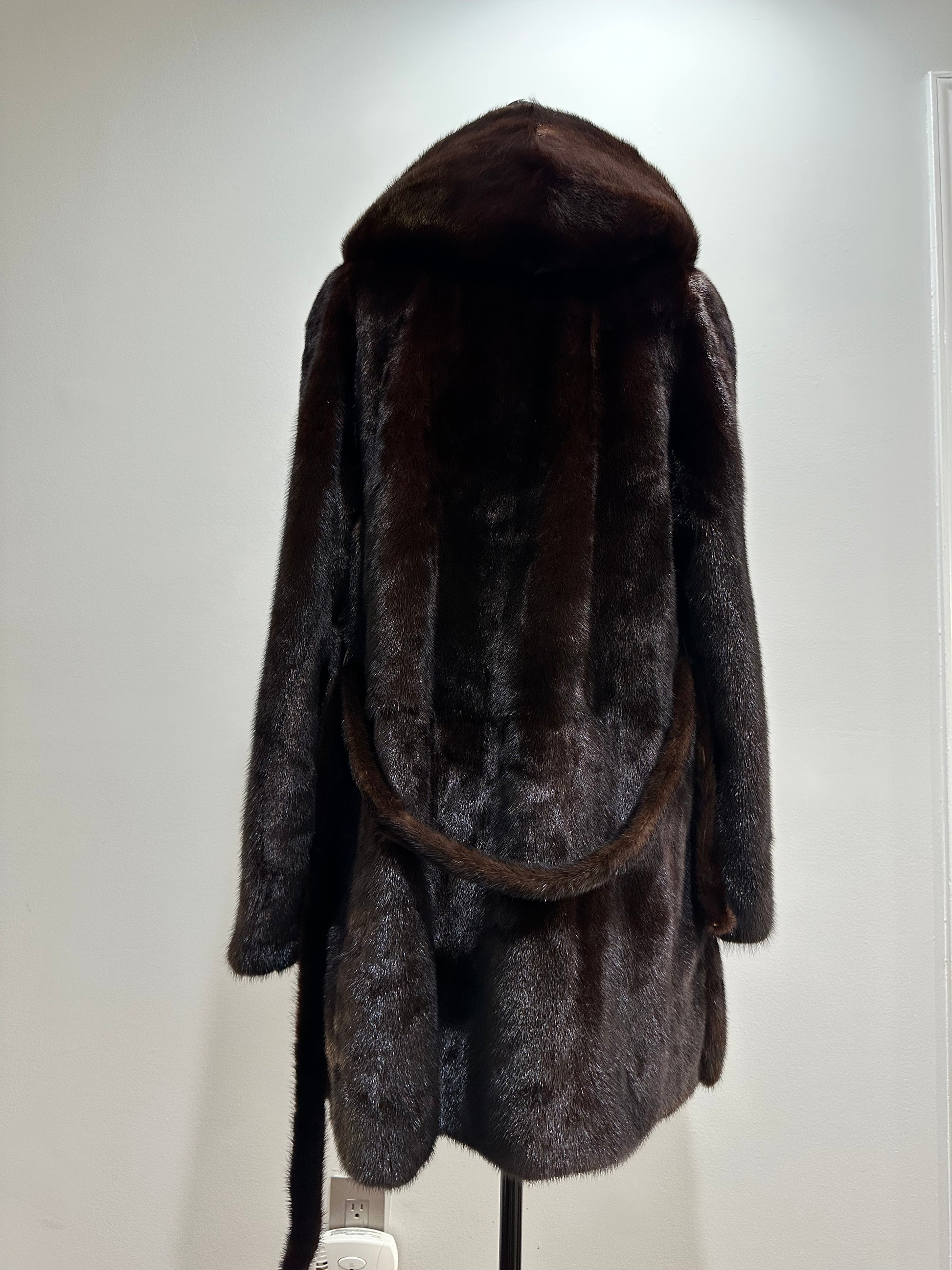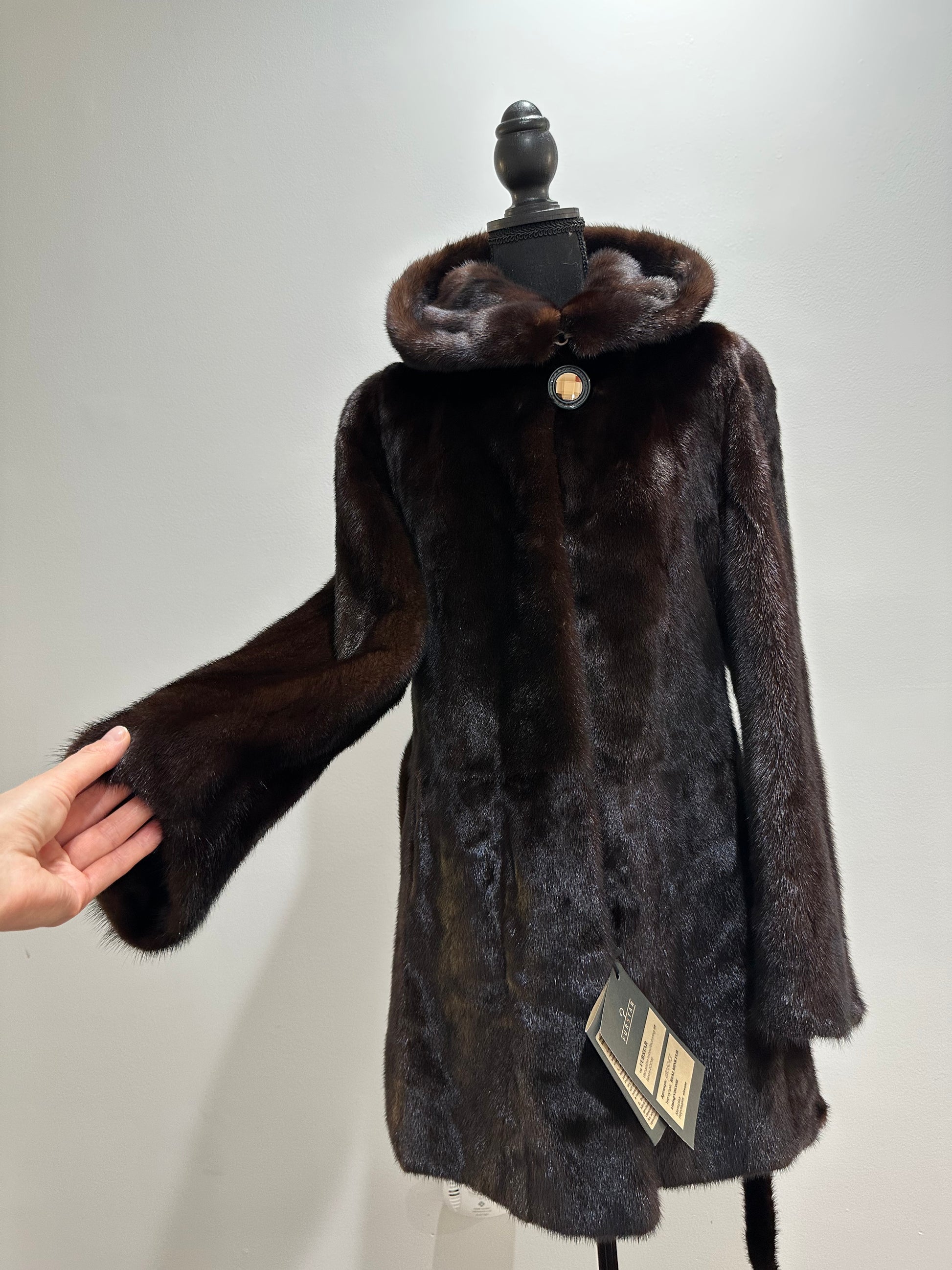 NEW REAL MINK FUR coat size M MEDIUM HOODED 1201063 long sleeve jacket BROWN