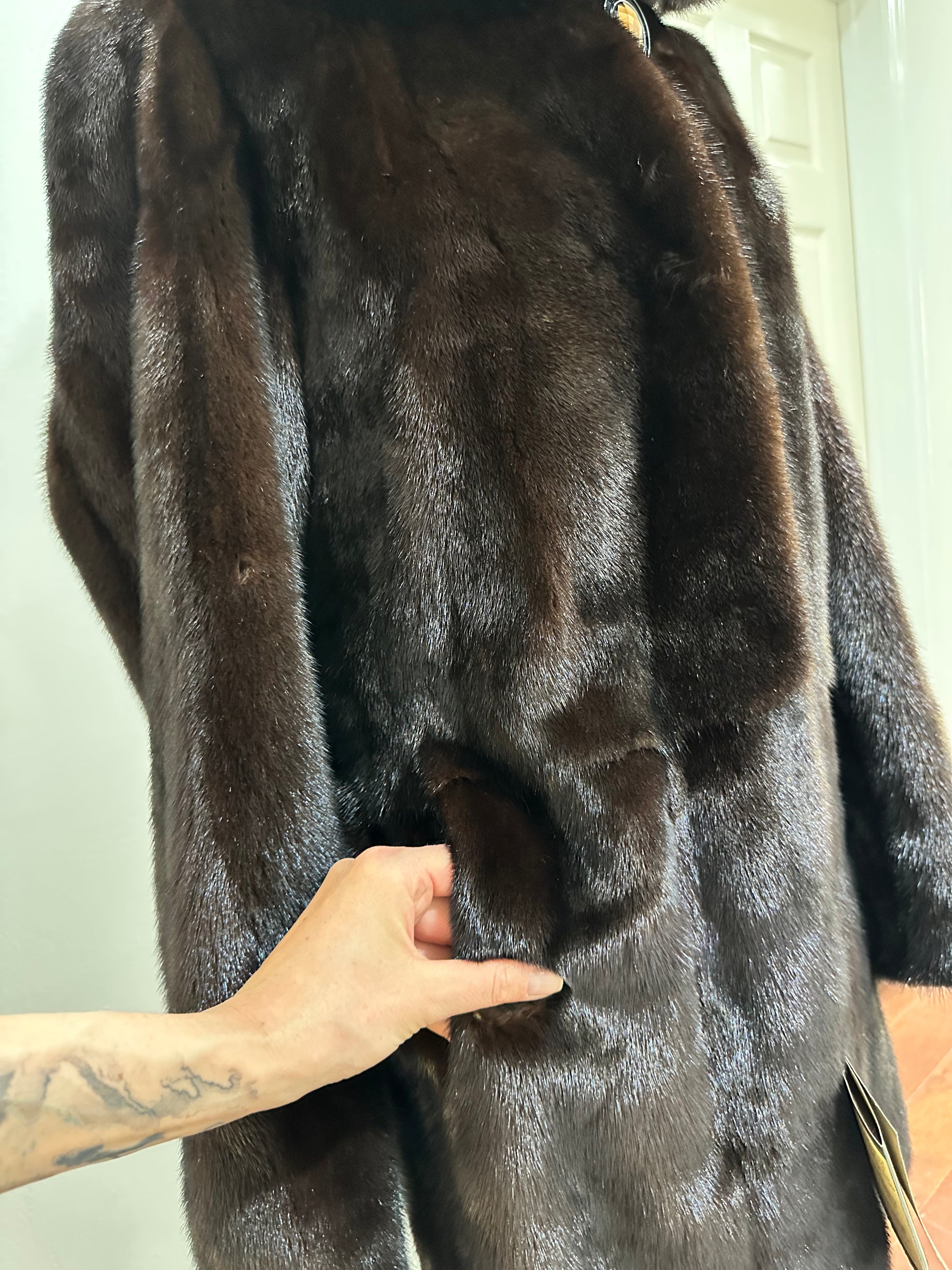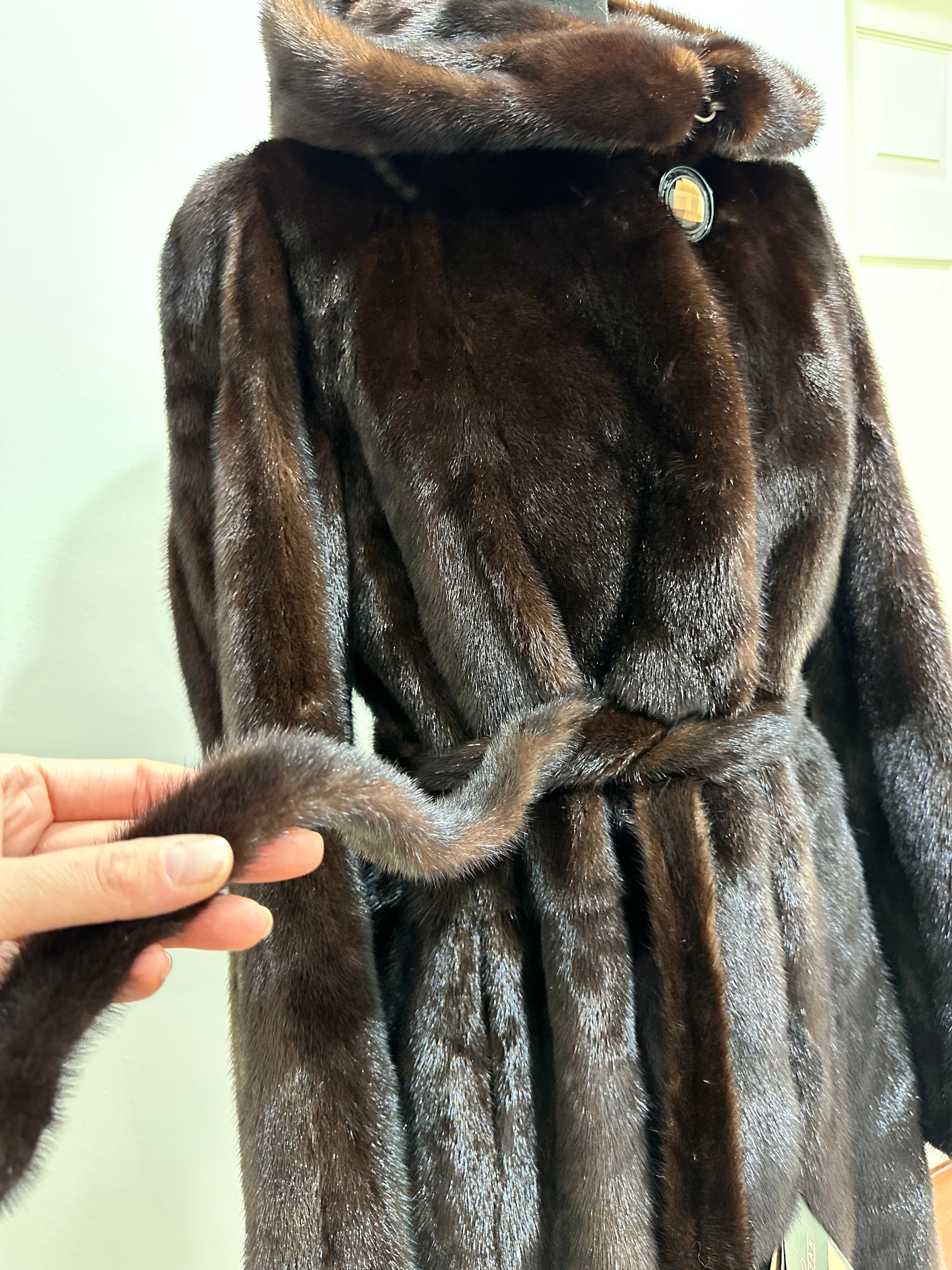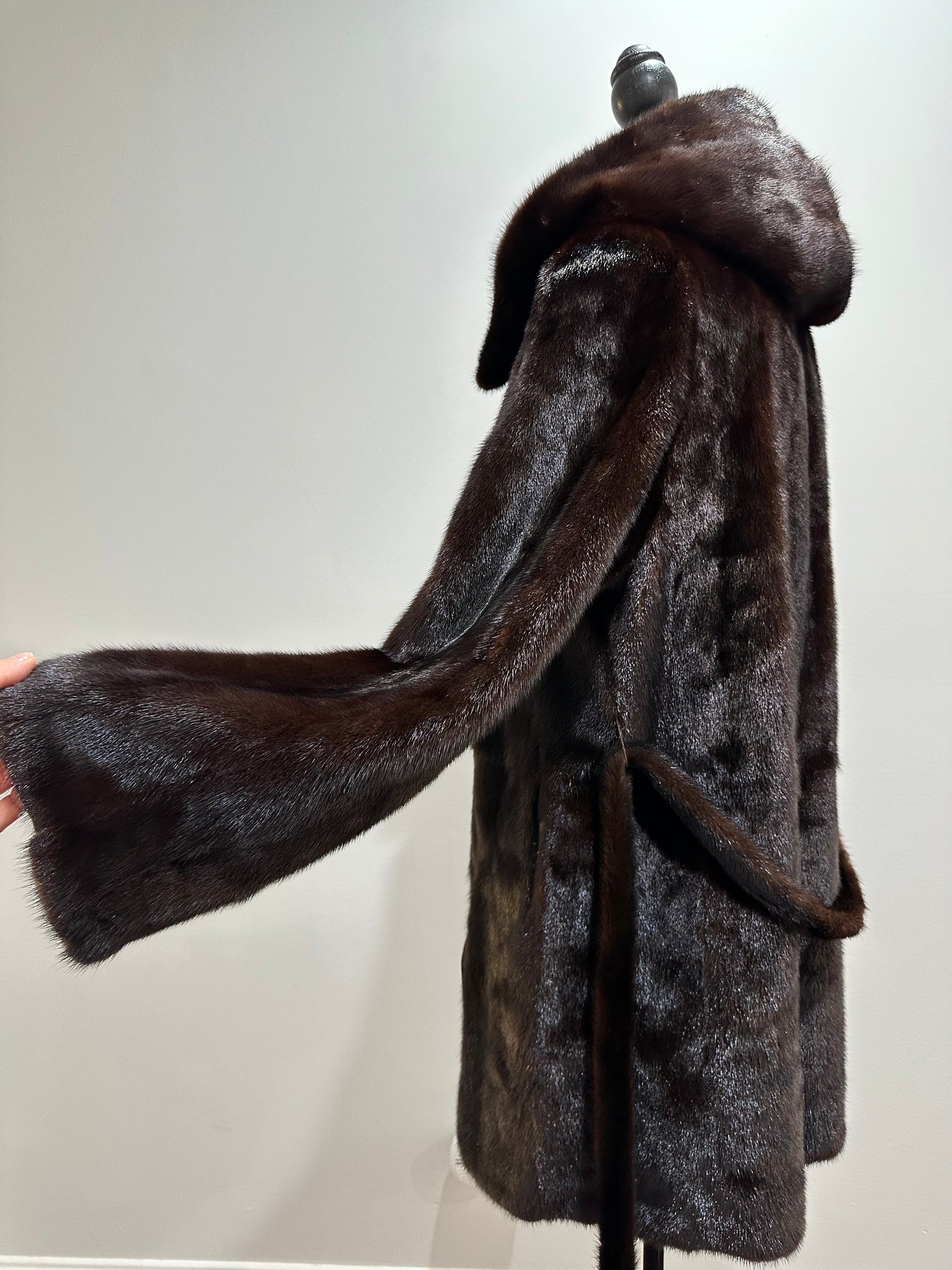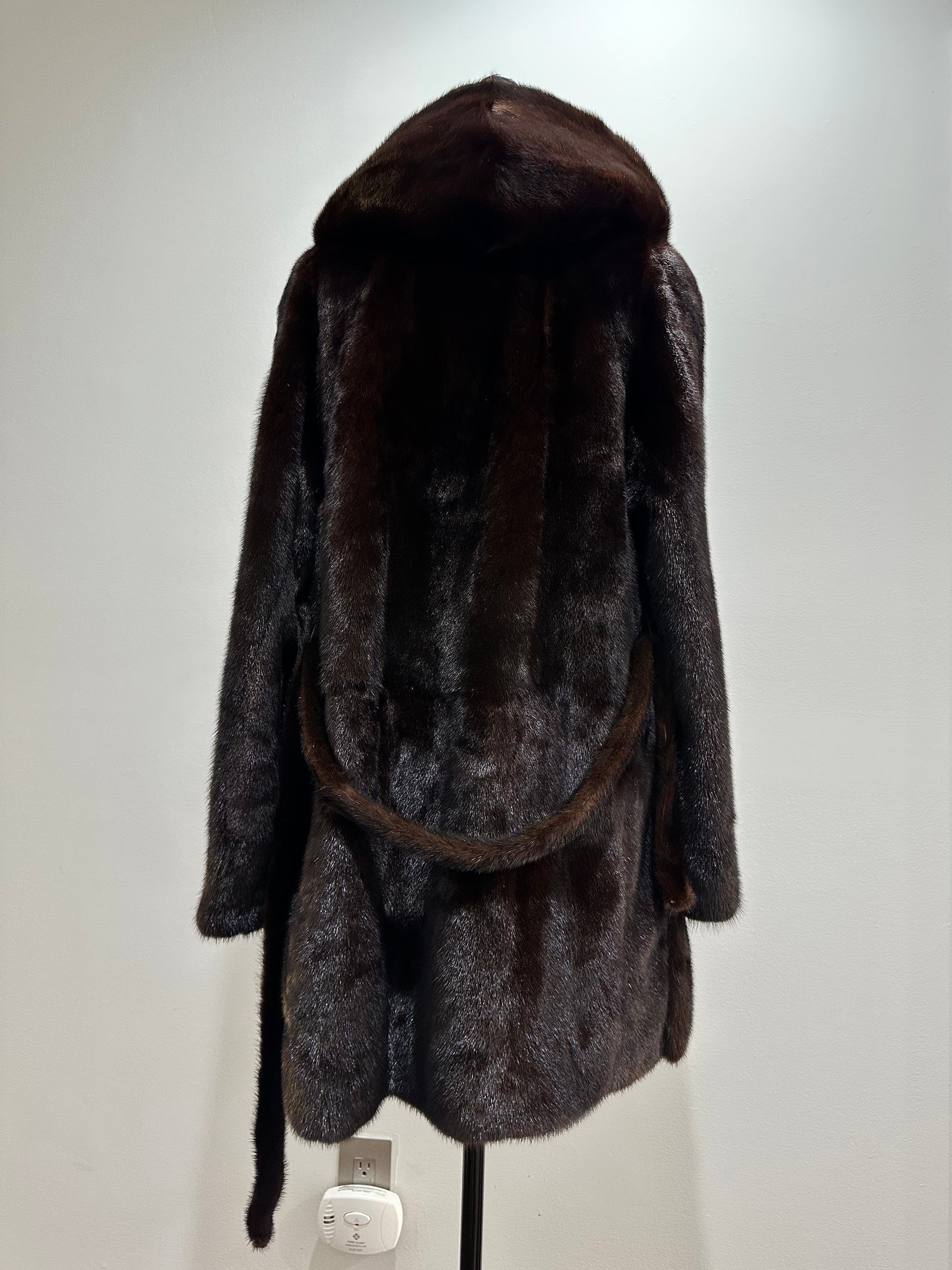 NEW REAL MINK FUR coat size M MEDIUM HOODED 1201063 long sleeve jacket BROWN