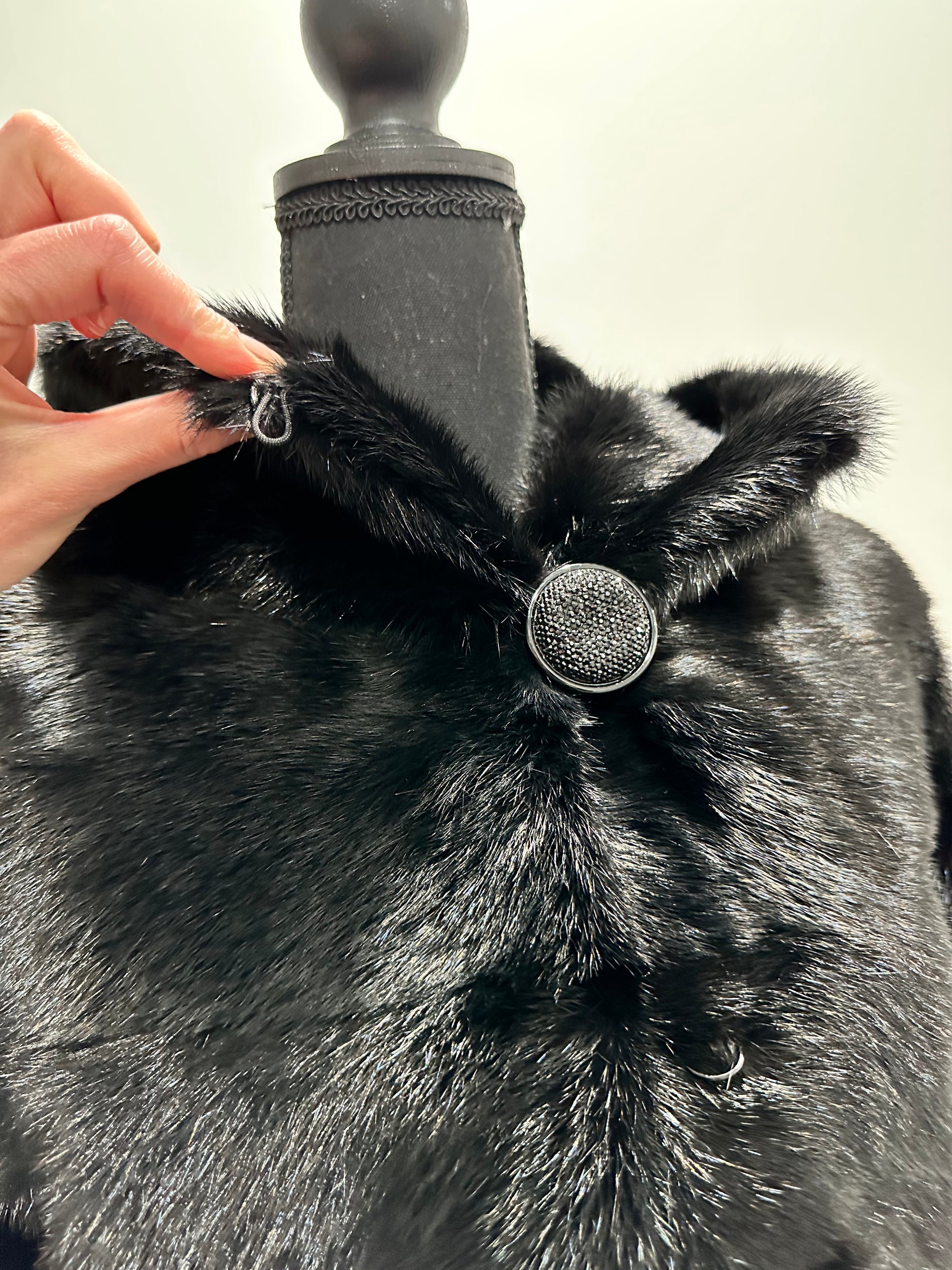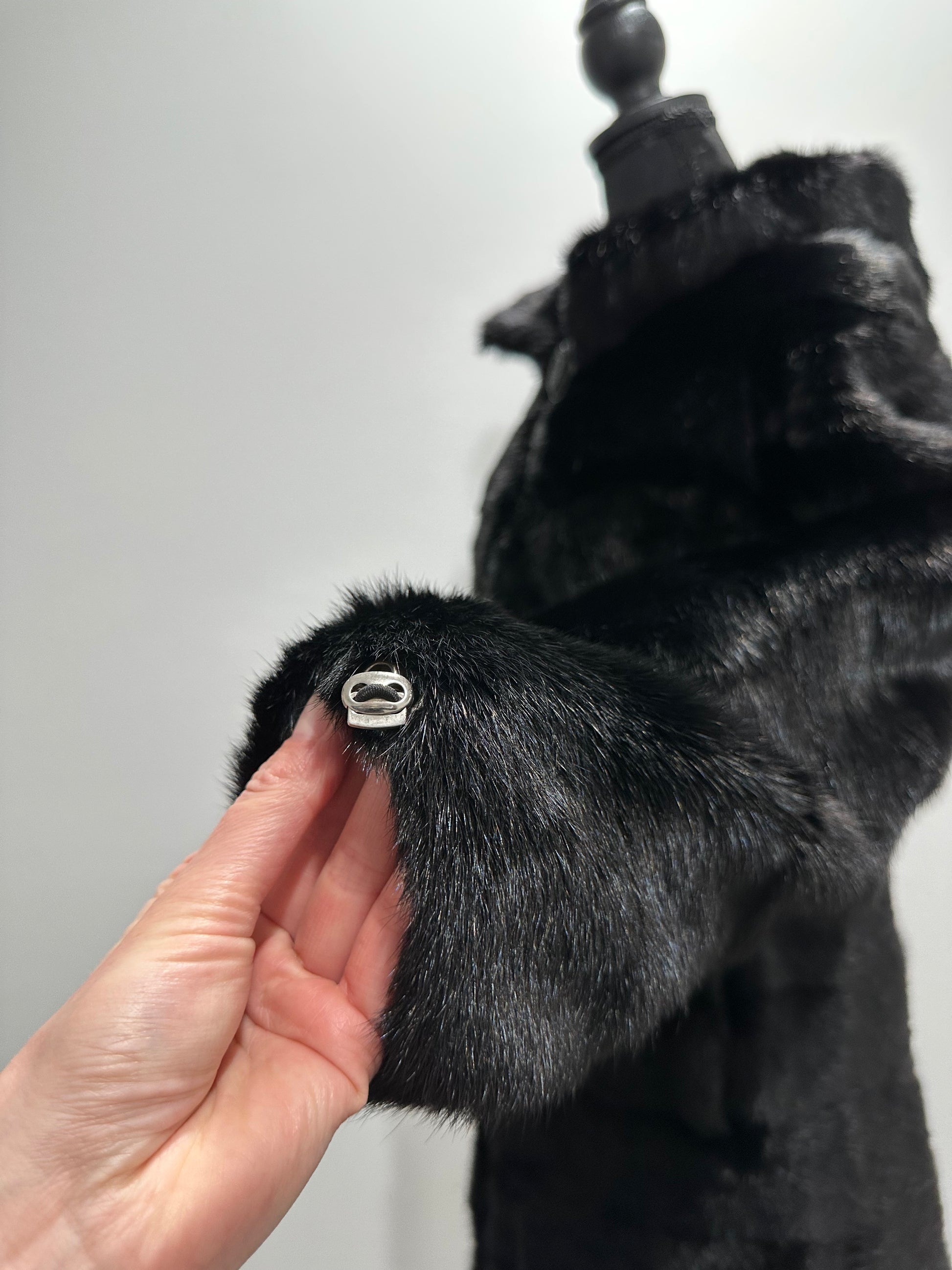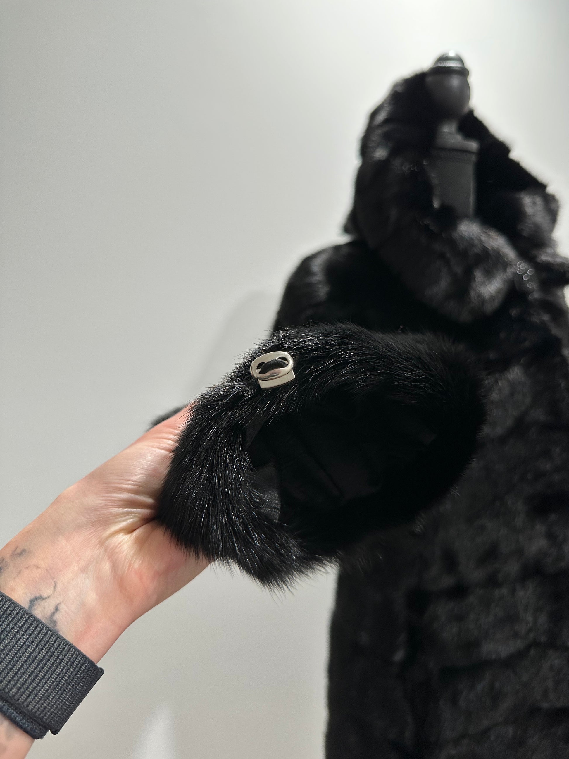 NEW REAL MINK FUR coat size XXS 1201088 HORIZONTAL long sleeve jacket BLACK
