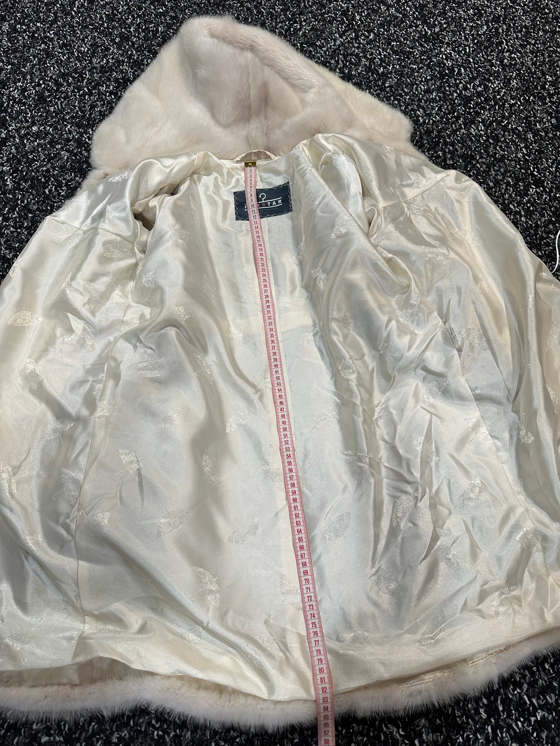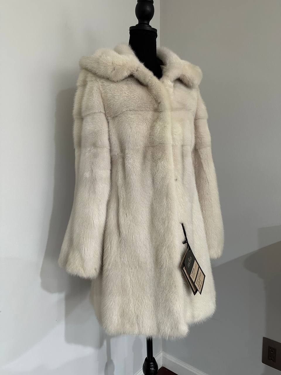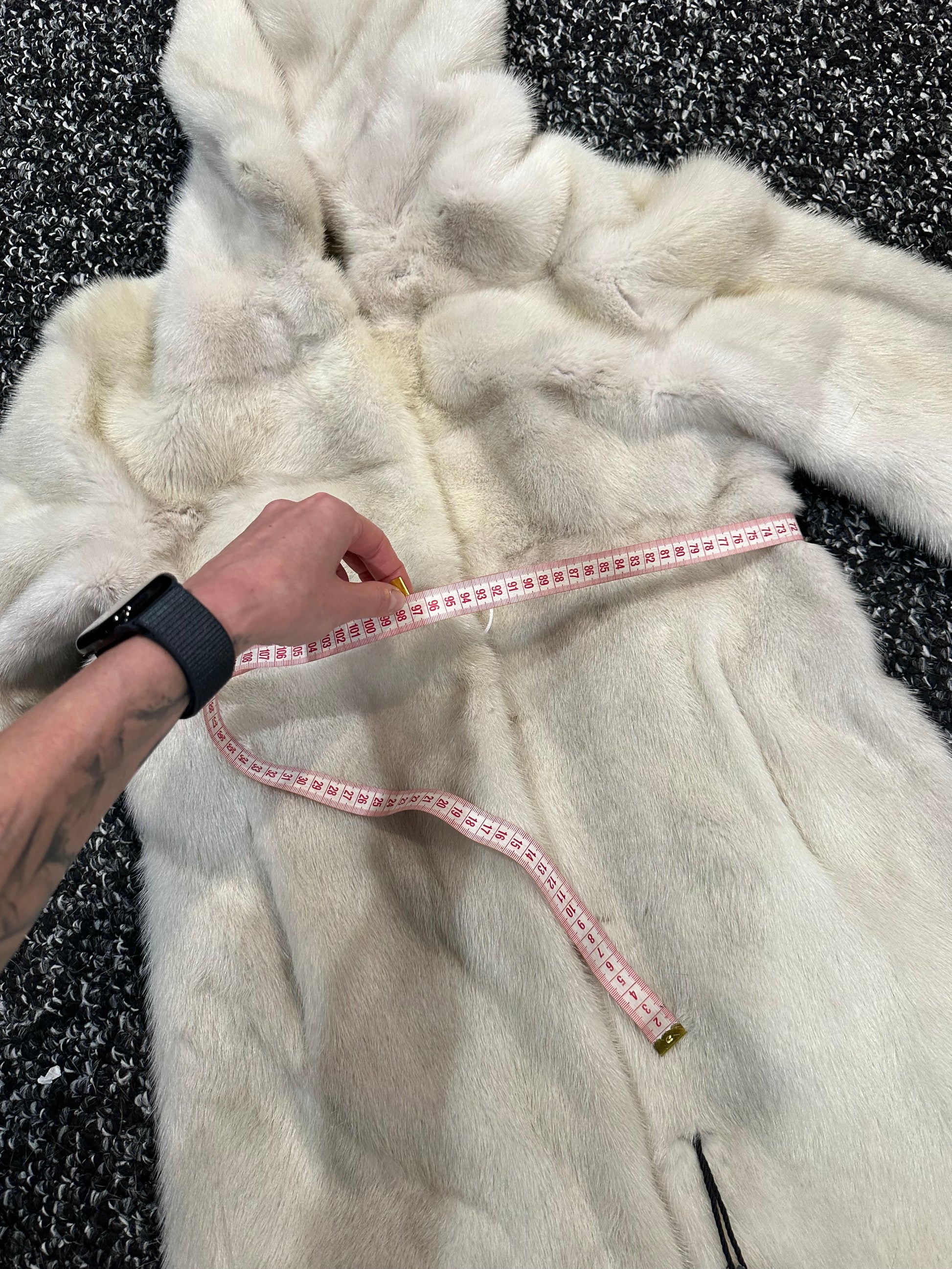 New REAL Natural Mink FUR coat JACKET size S ivory FULL SKIN 1201080 HOODED