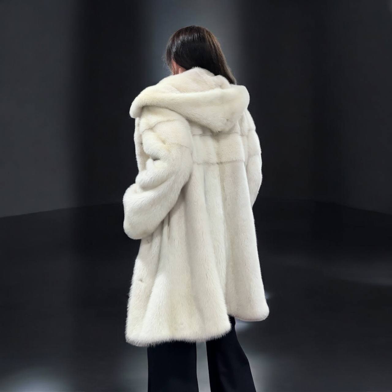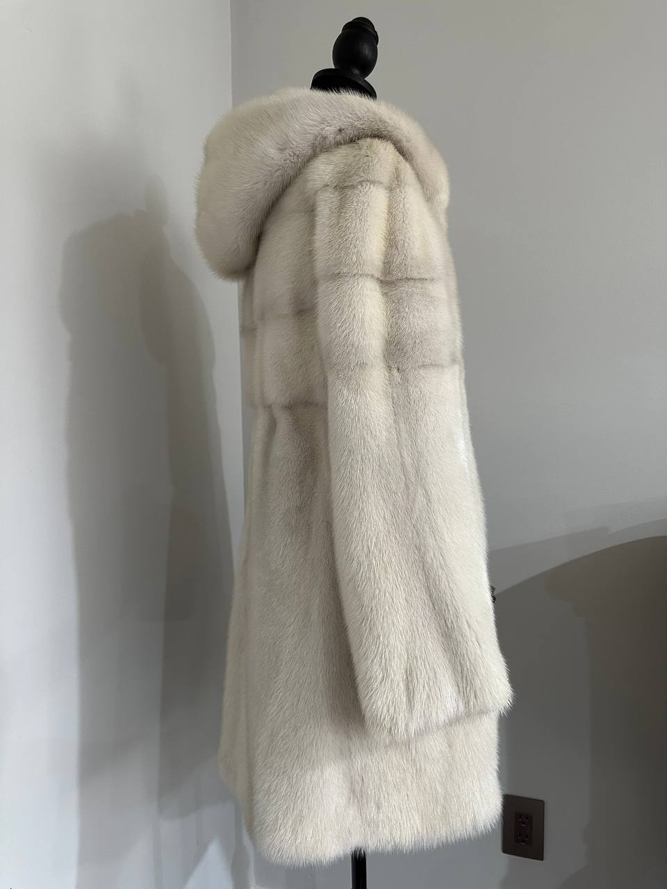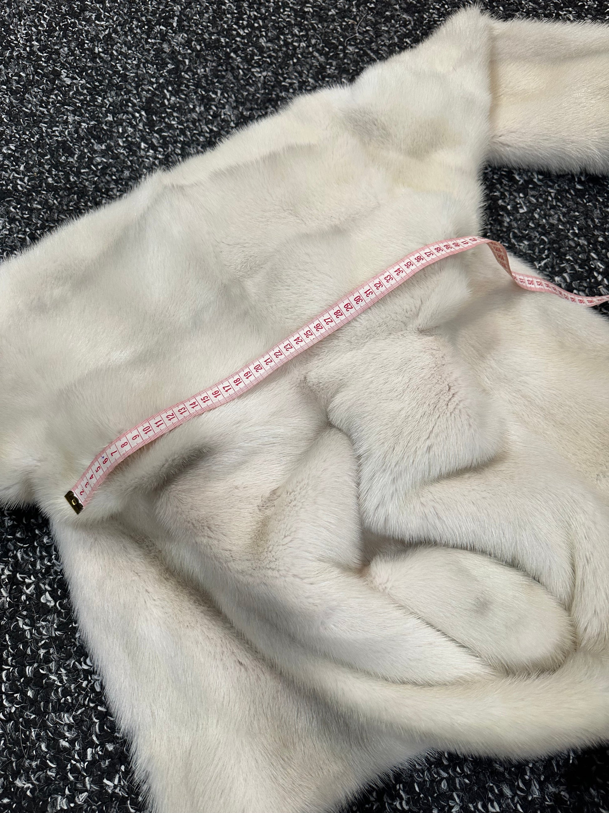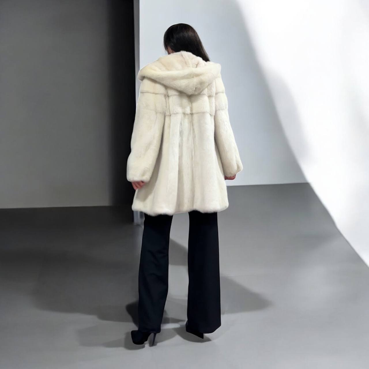 New REAL Natural Mink FUR coat JACKET size S ivory FULL SKIN 1201080 HOODED