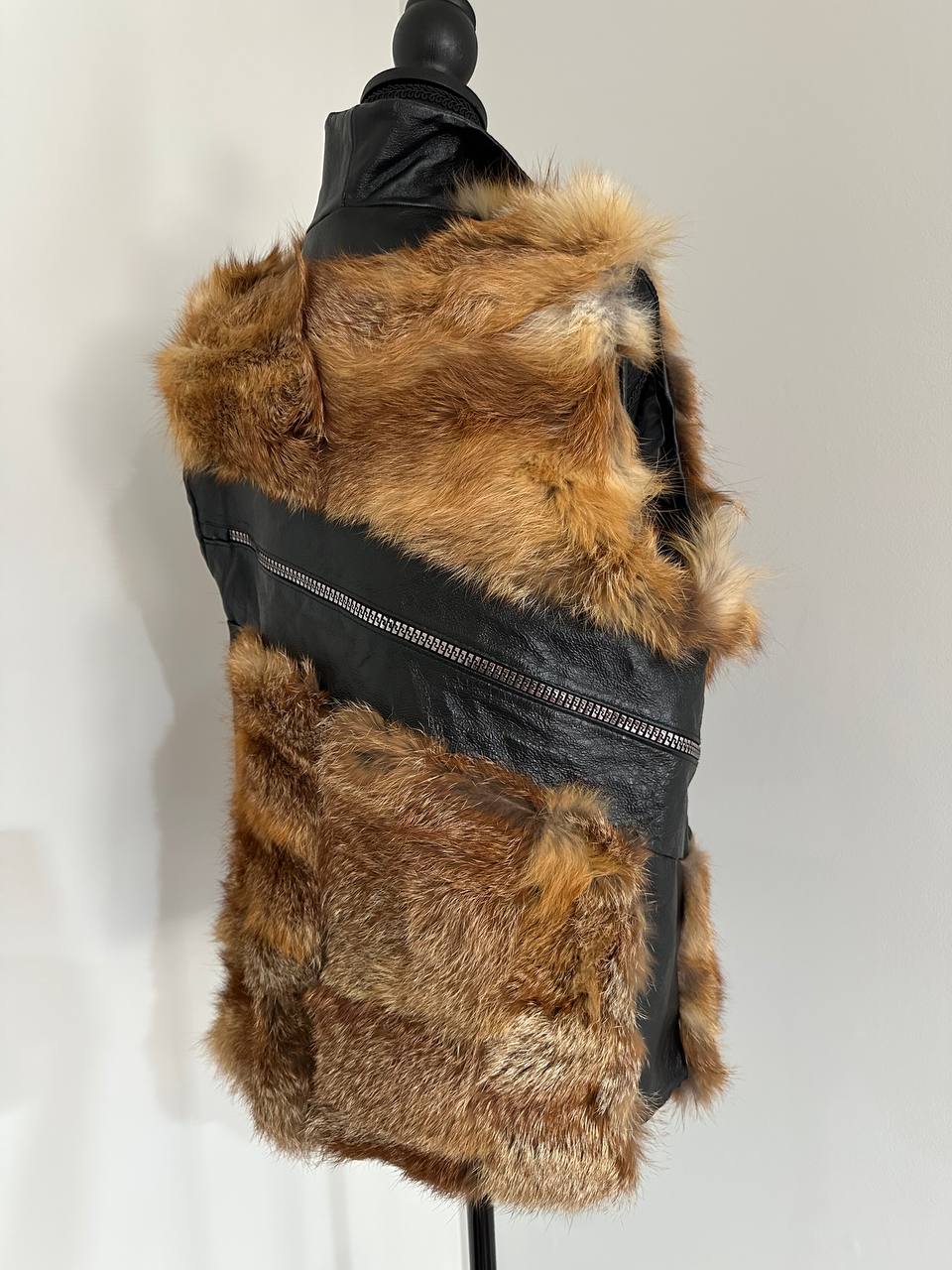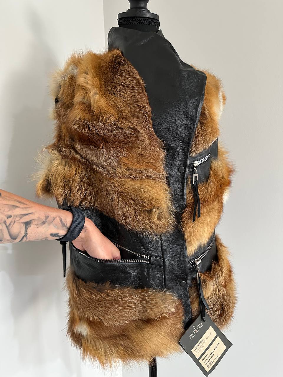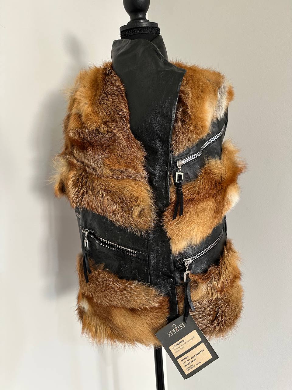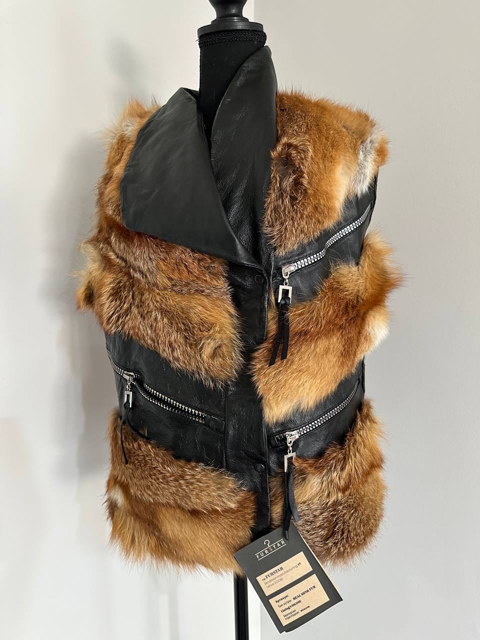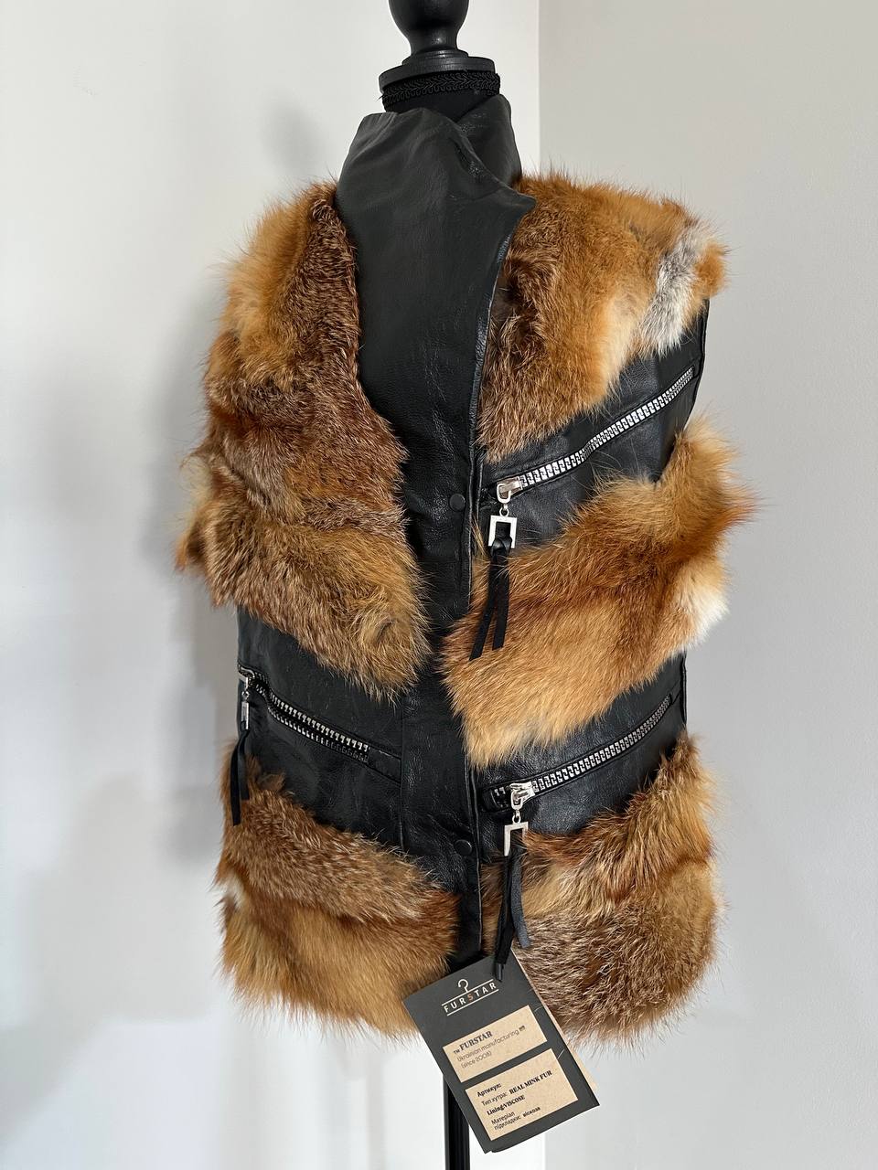 REAL genuine FOX fur women vest S SIZE LEATHER 1109914 WITHOUT SLEEVES