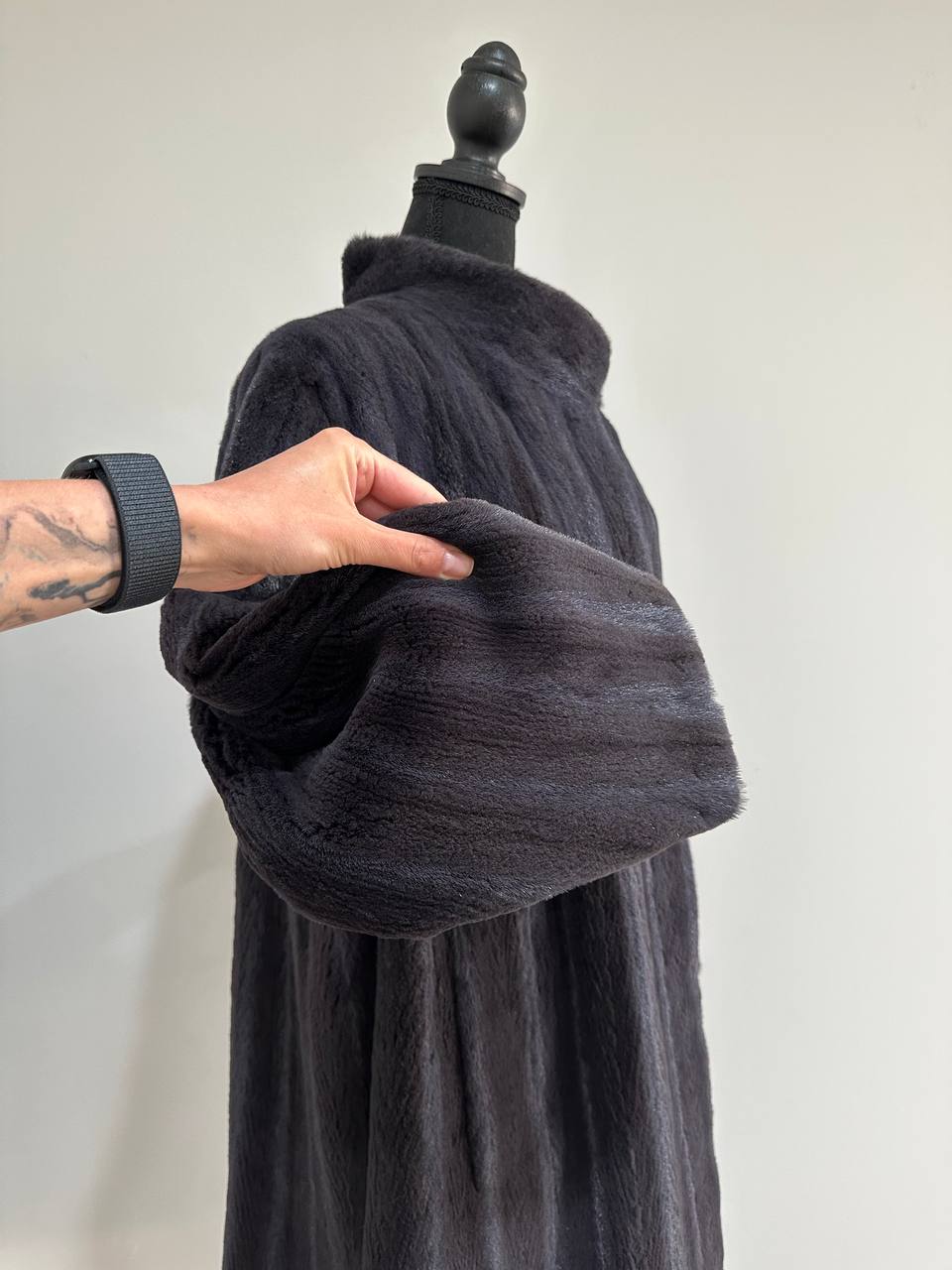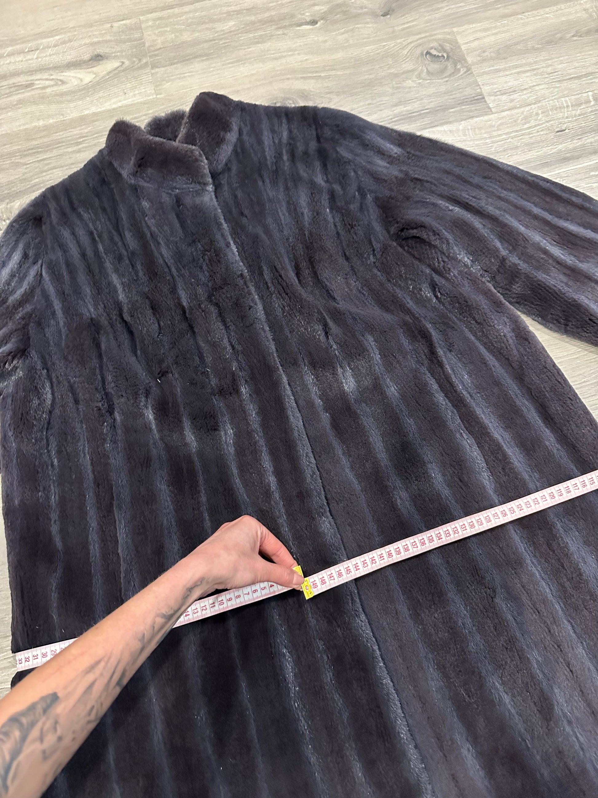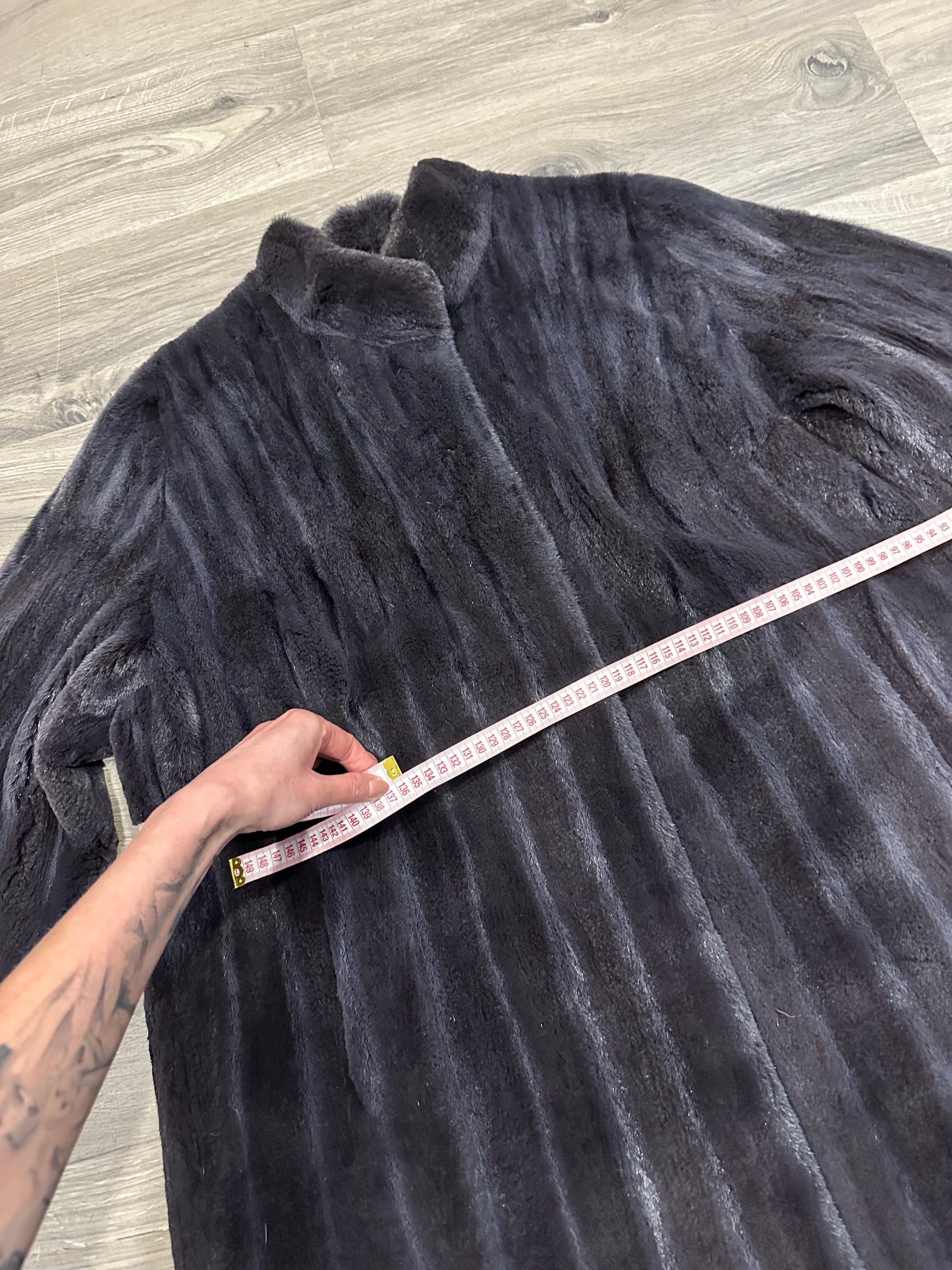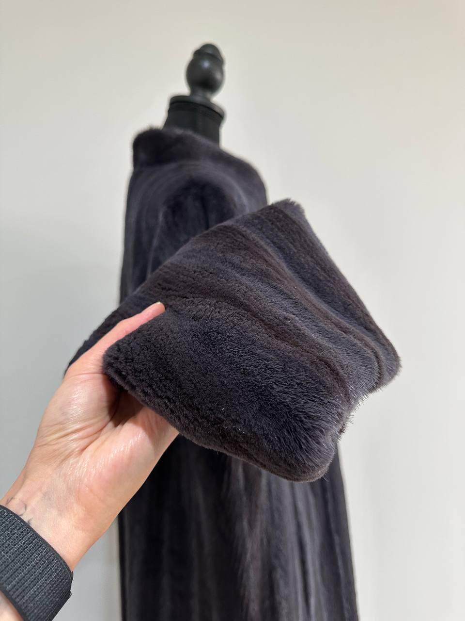 Real Luxury Sheared Mink Fur Coat Dark Graphite Color Full Length XL 1109847