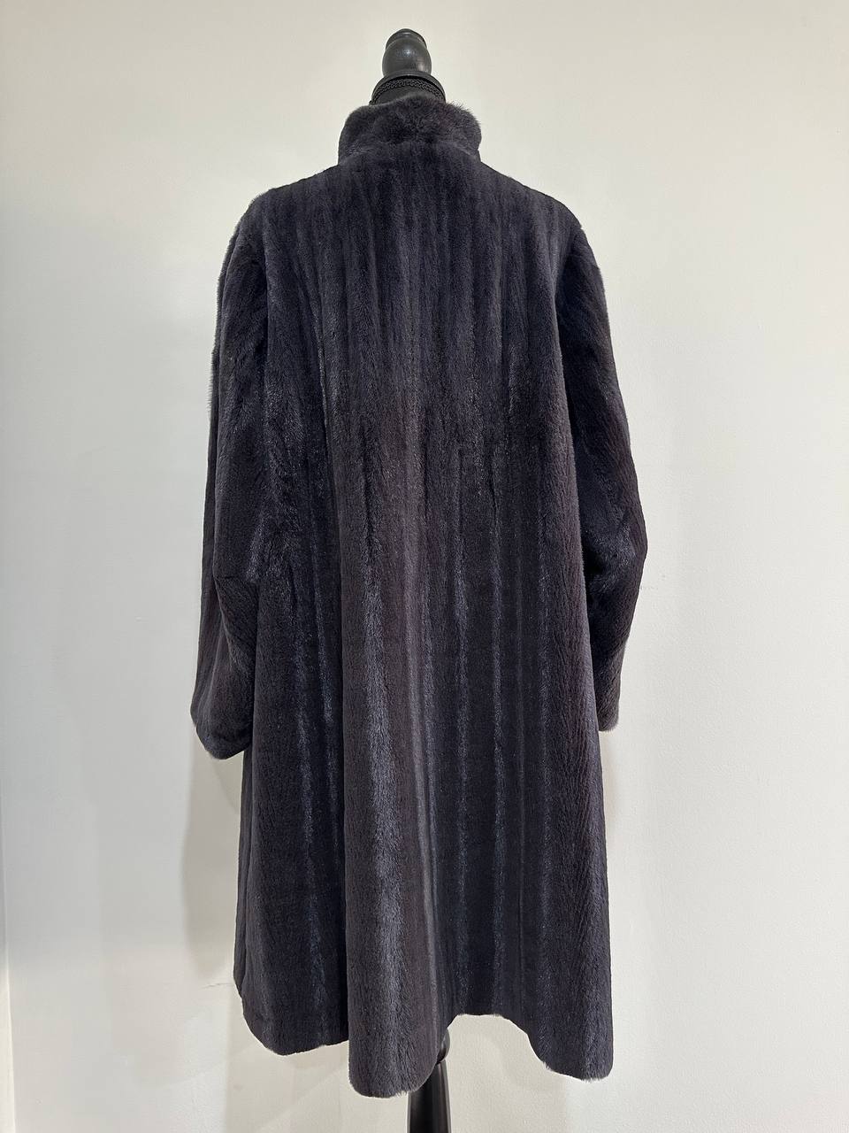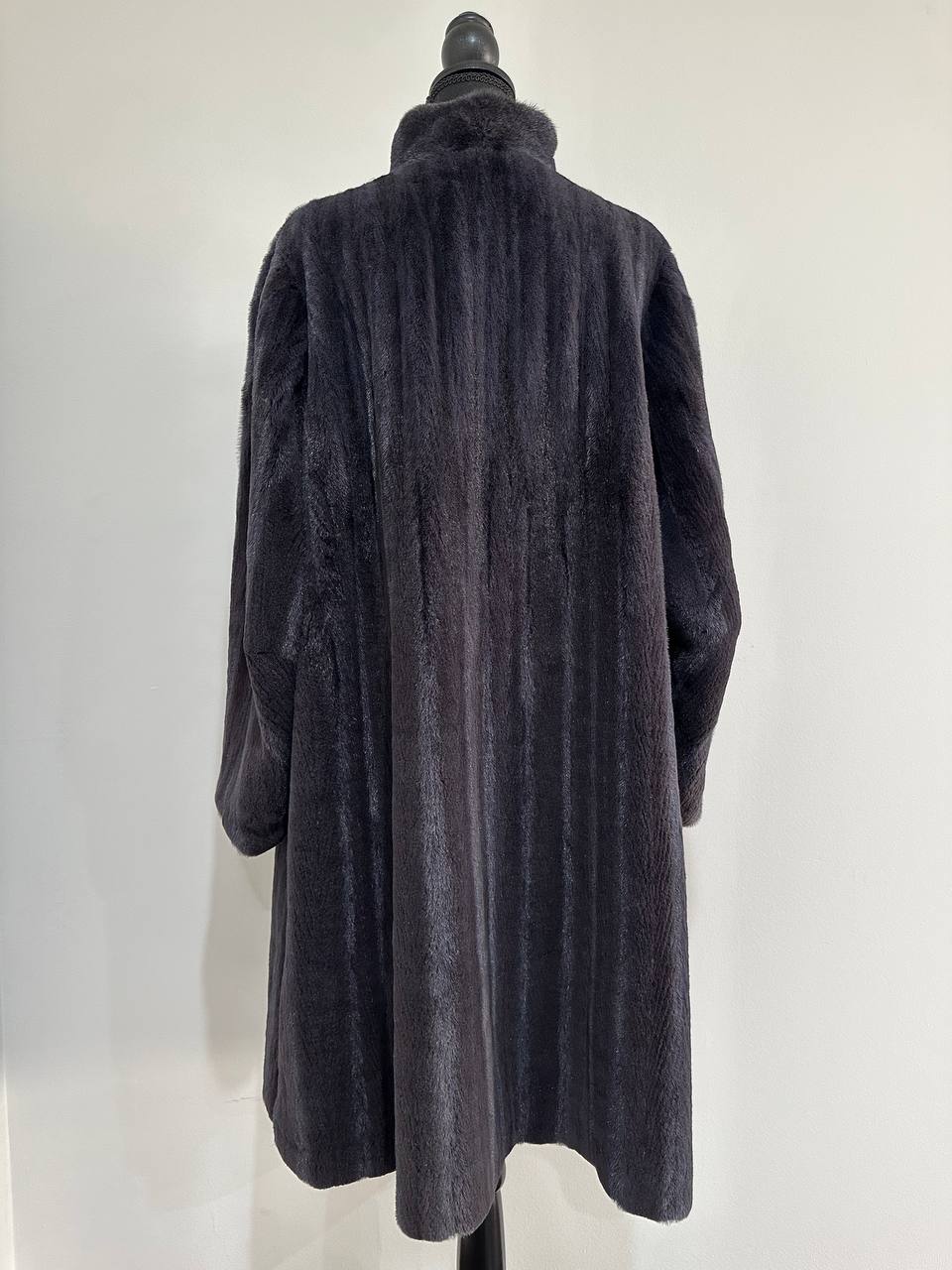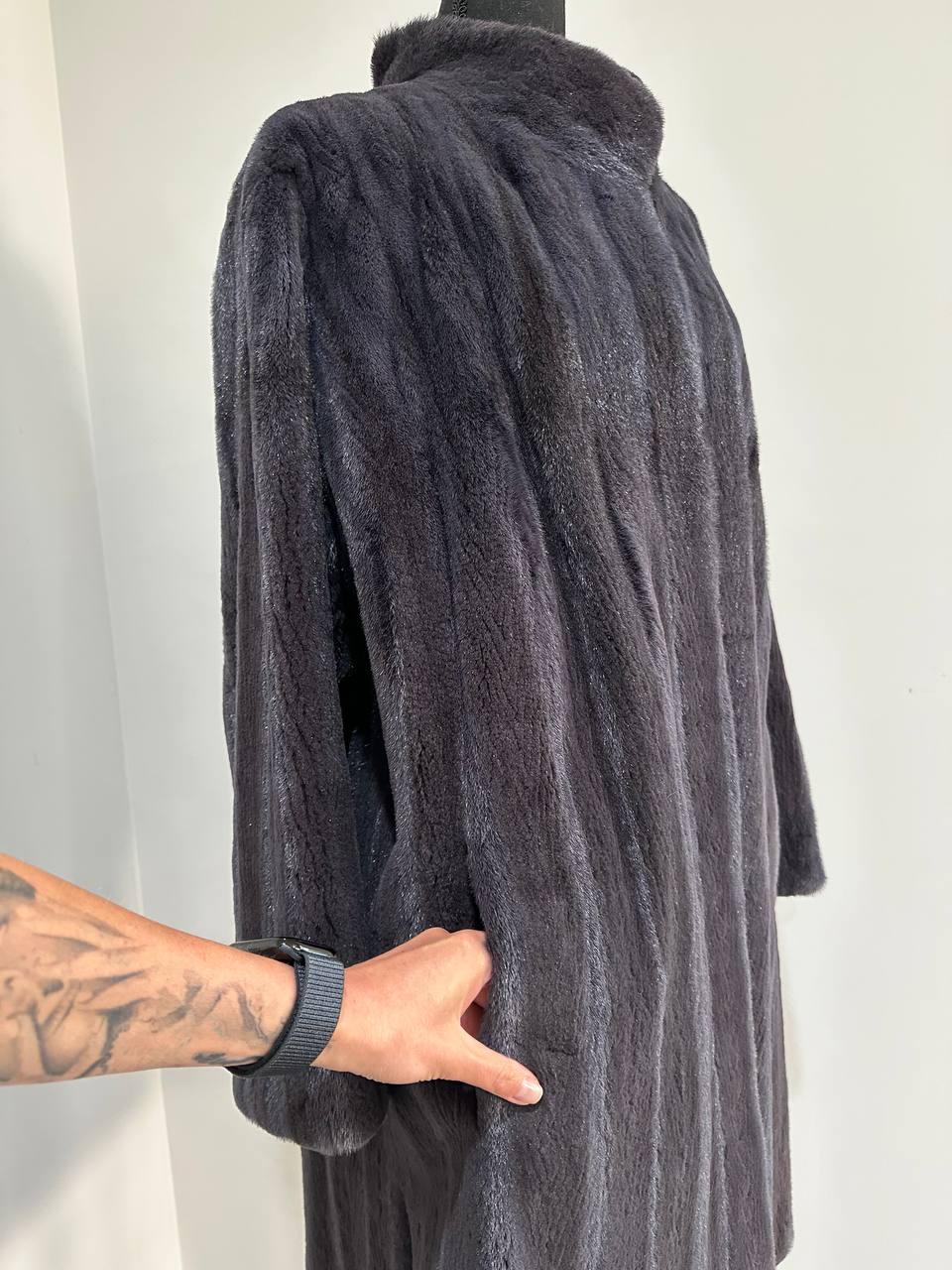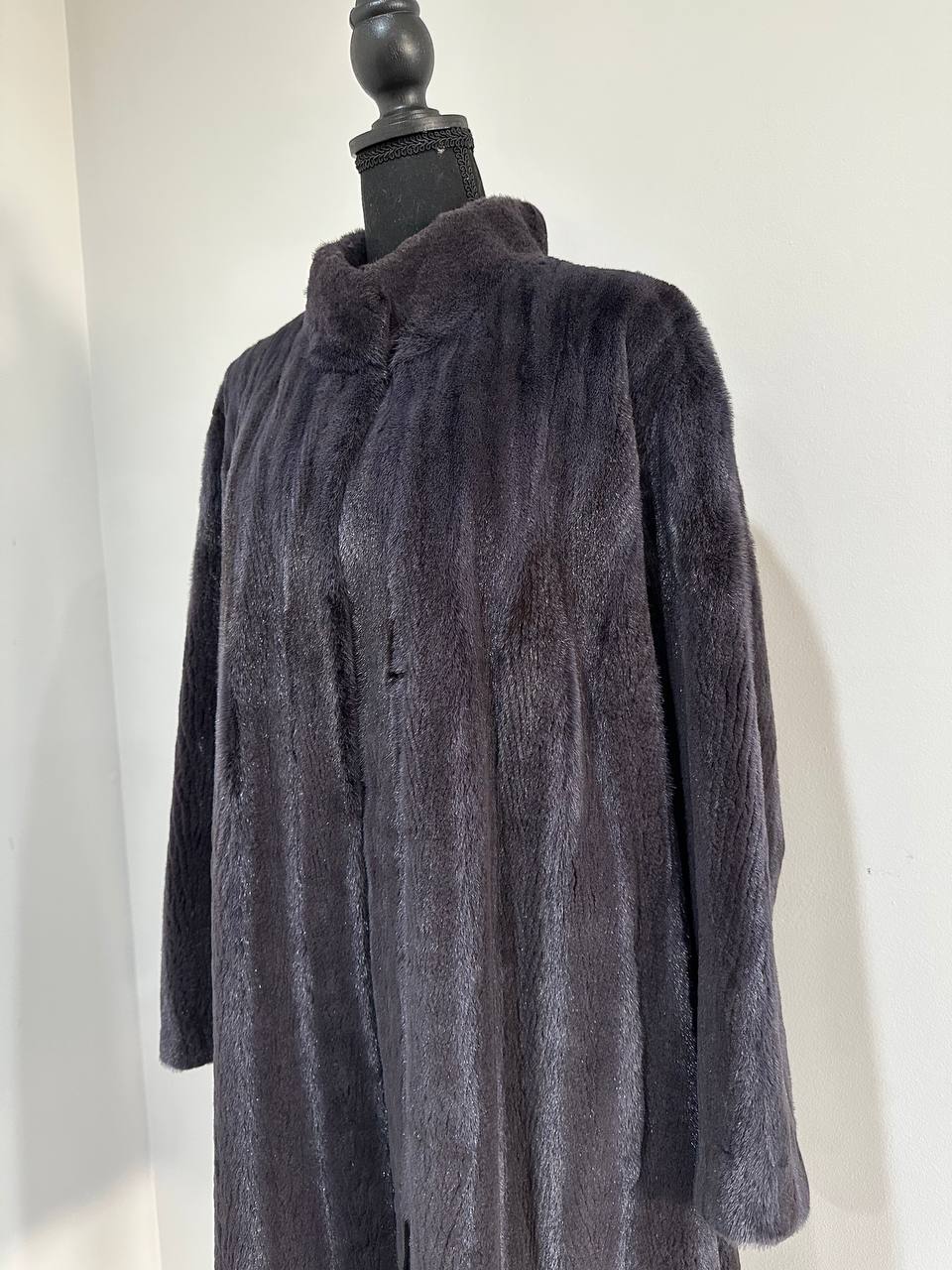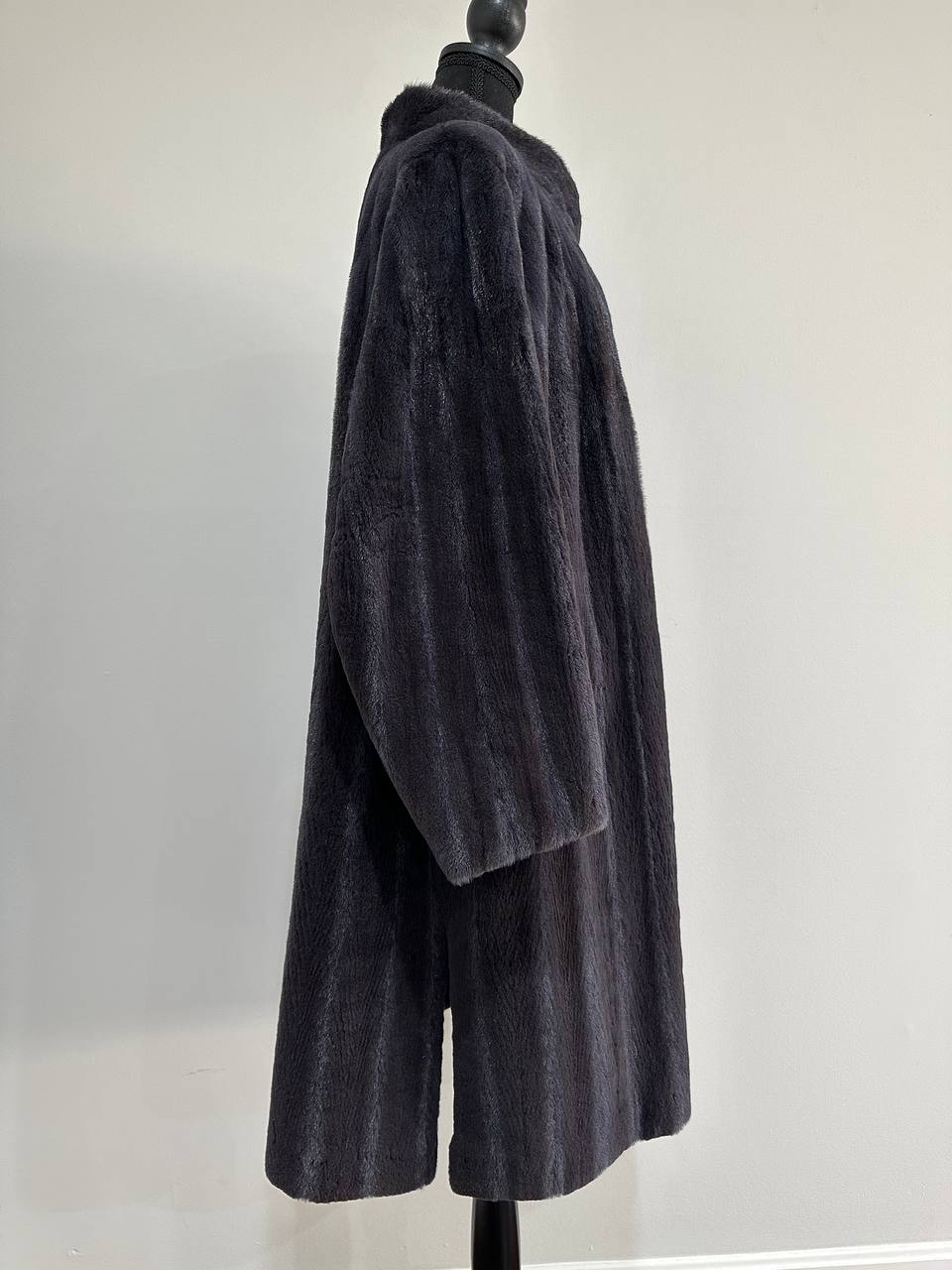 Real Luxury Sheared Mink Fur Coat Dark Graphite Color Full Length XL 1109847