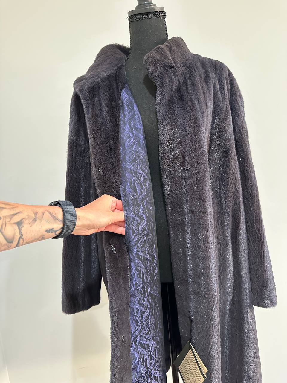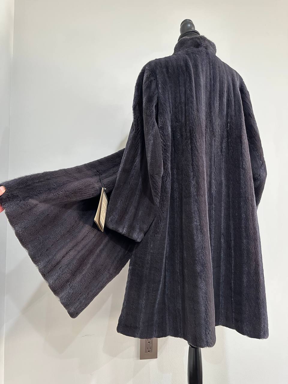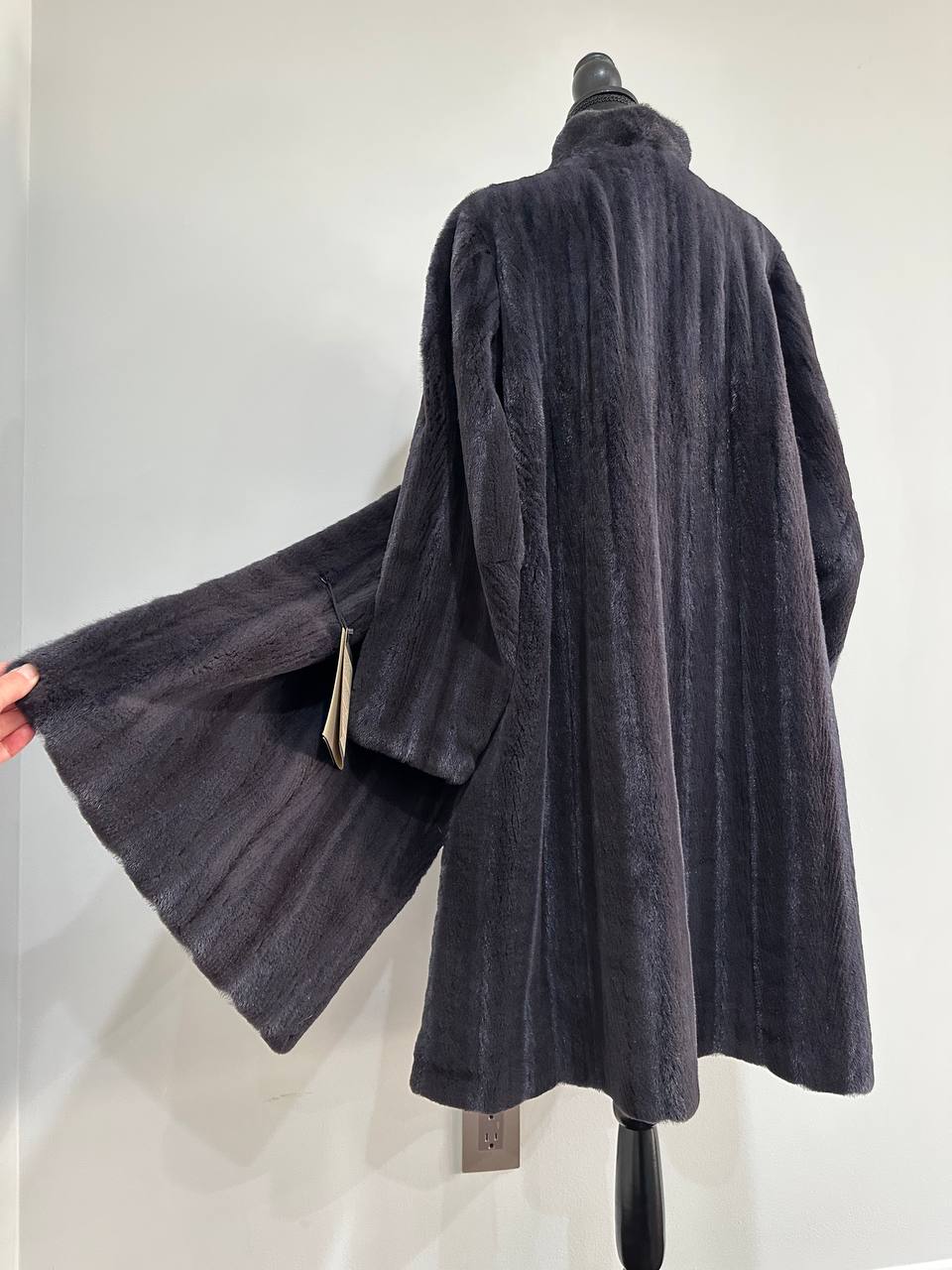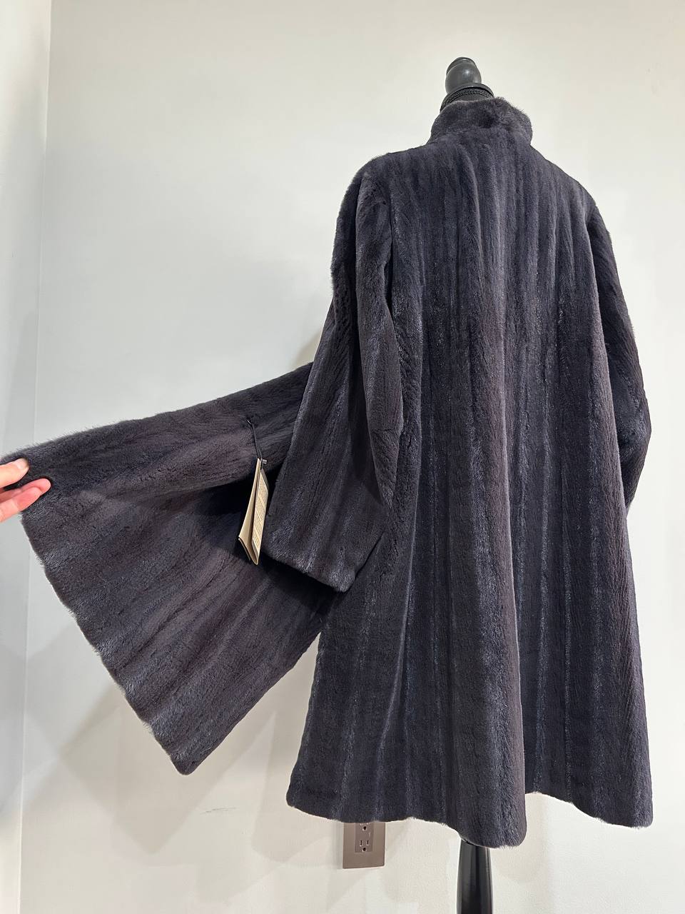 Real Luxury Sheared Mink Fur Coat Dark Graphite Color Full Length XL 1109847