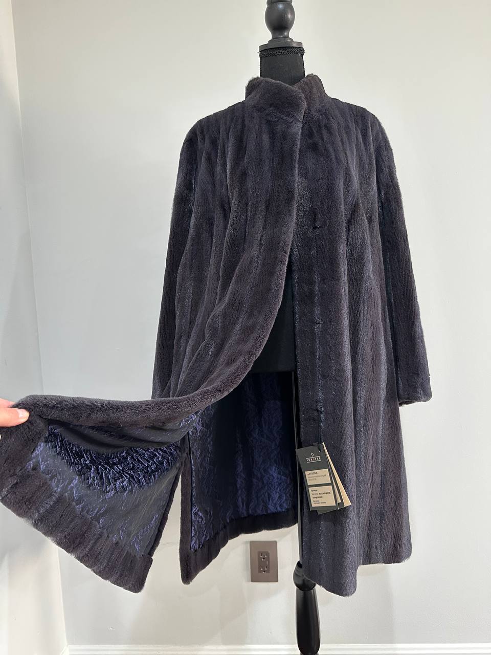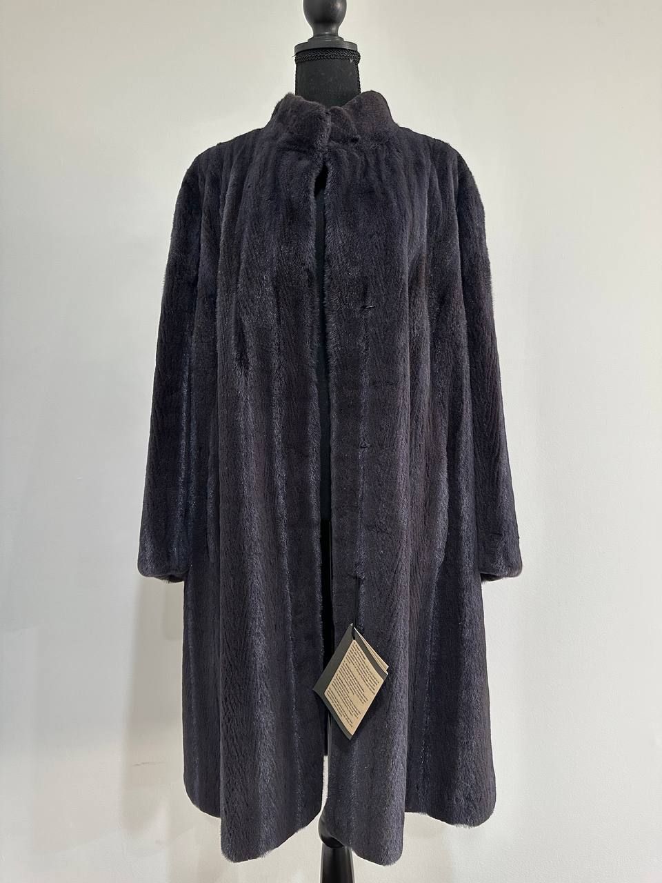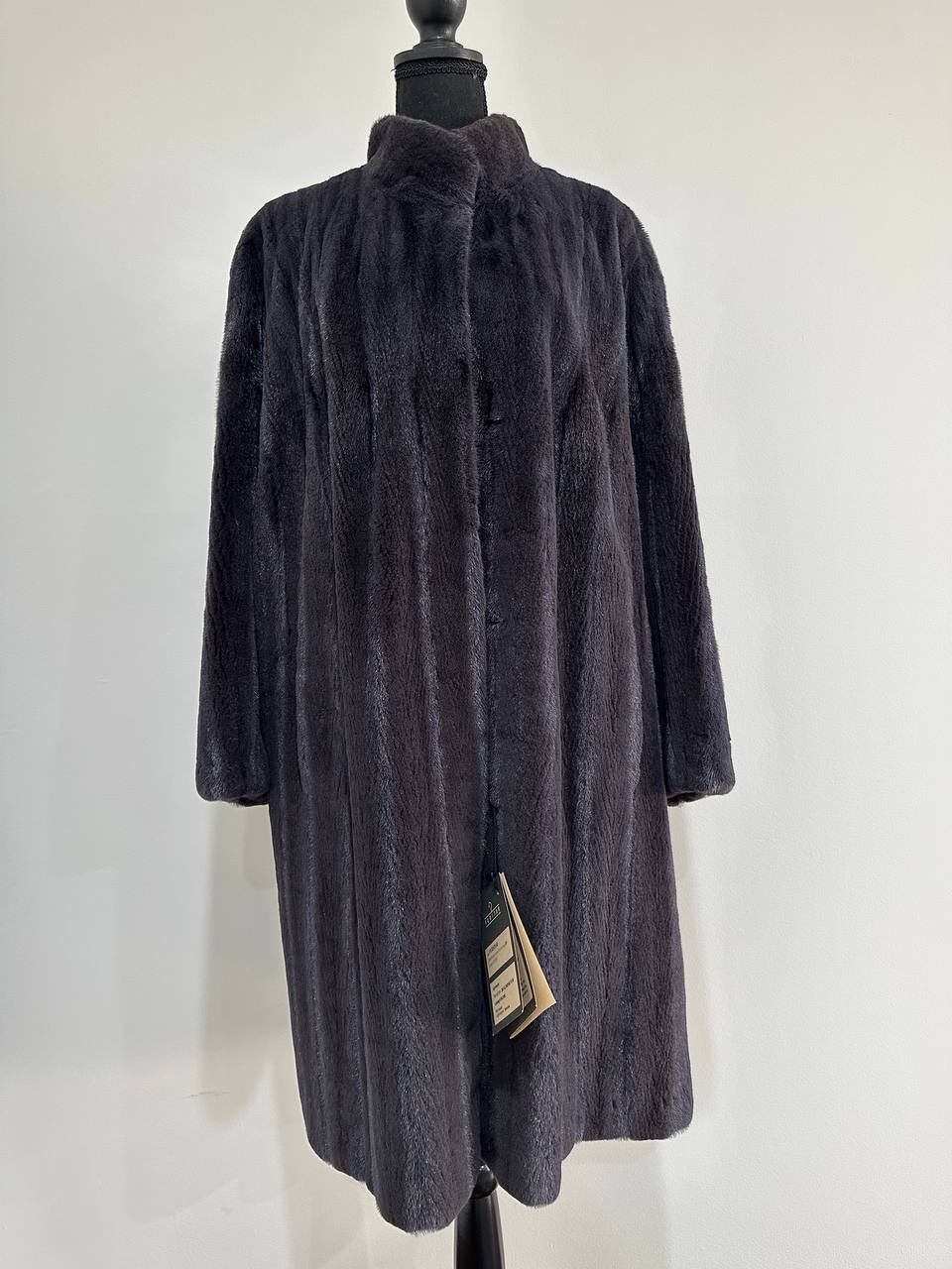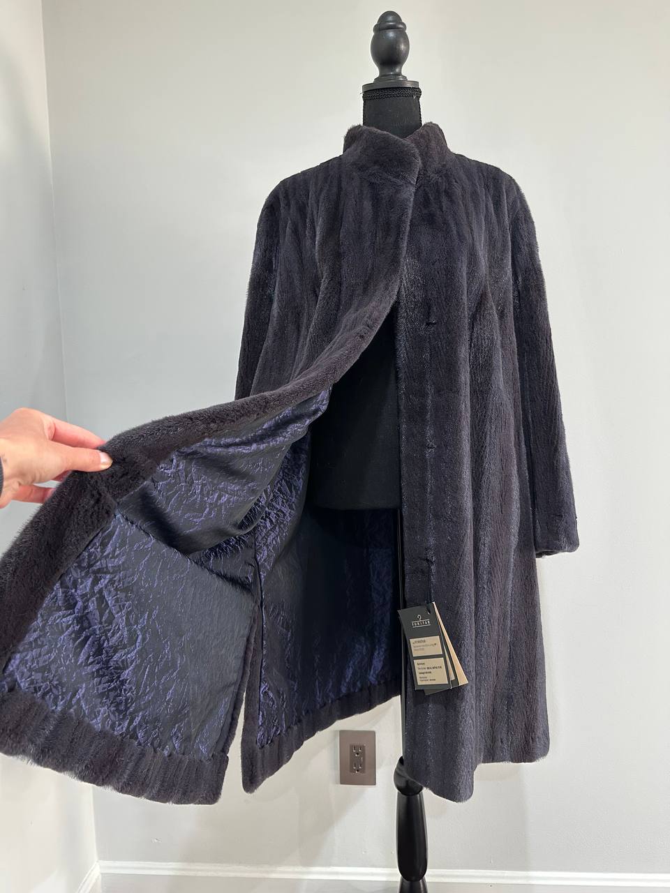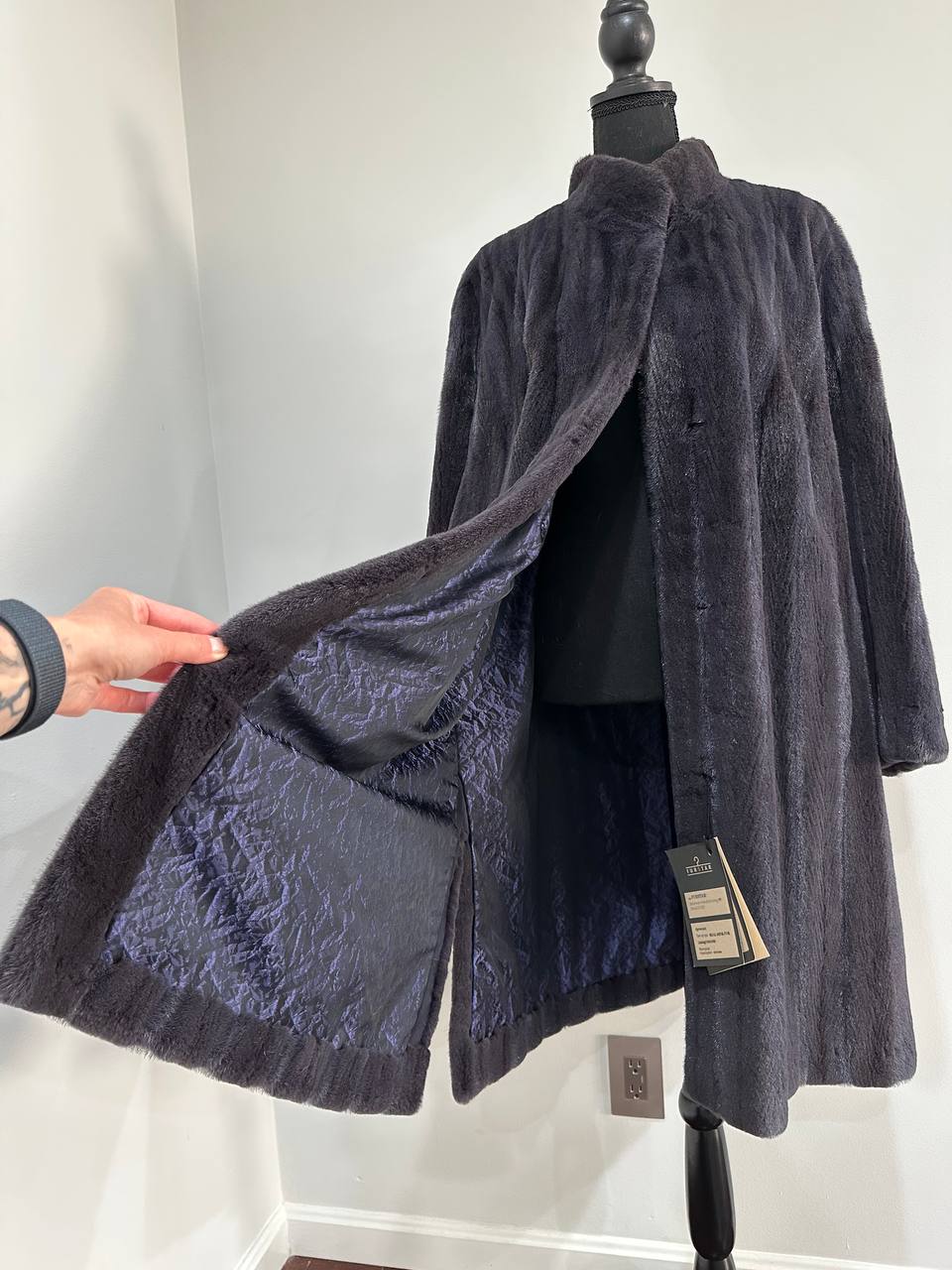 Real Luxury Sheared Mink Fur Coat Dark Graphite Color Full Length XL 1109847