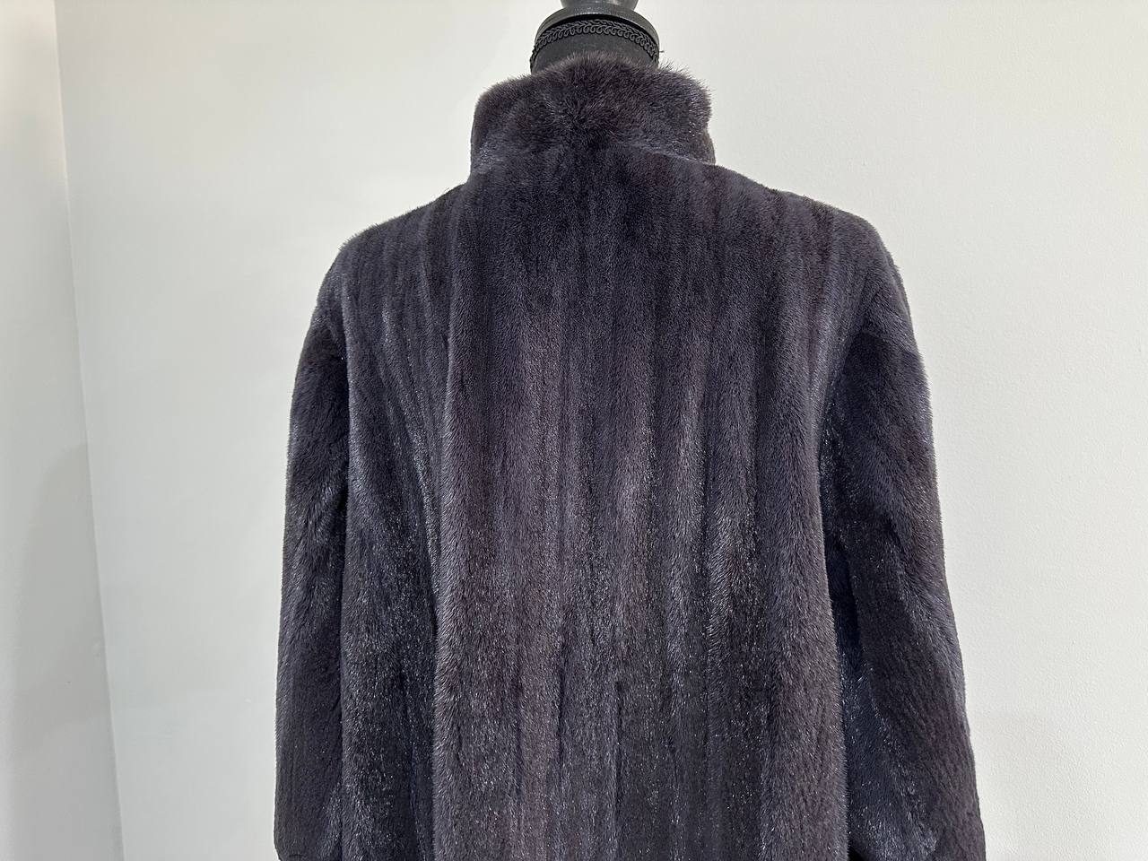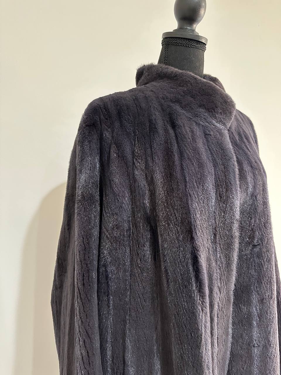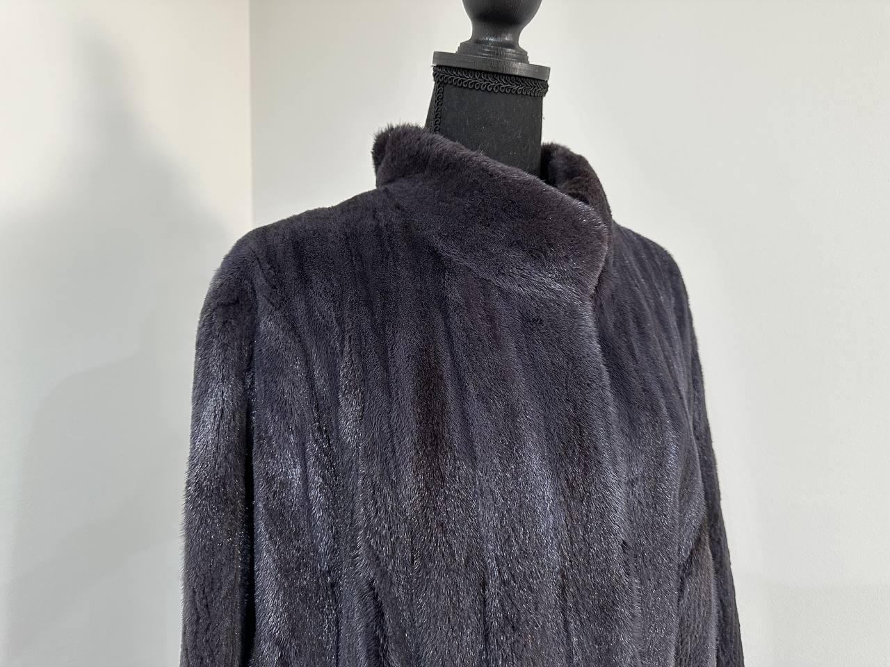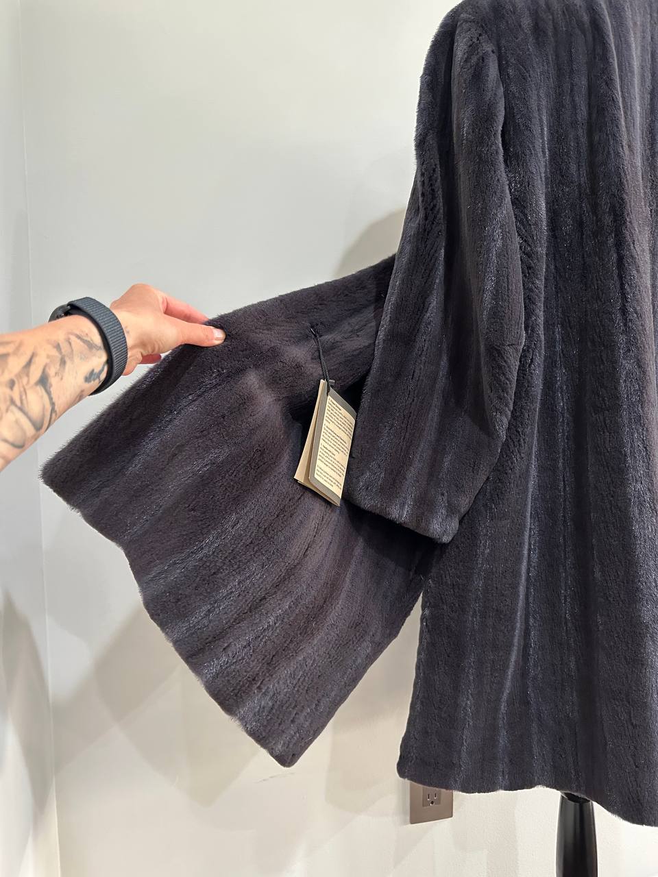 Experience timeless elegance with this exquisite sheared mink fur coat in a deep graphite hue — a refined alternative to classic black.