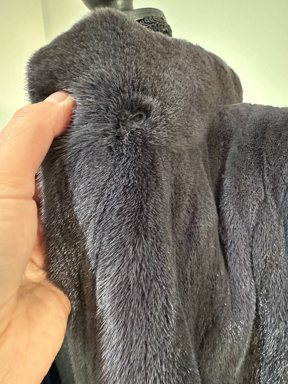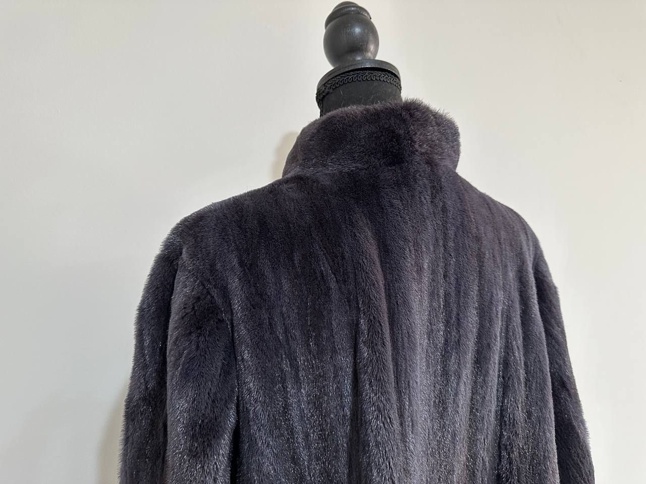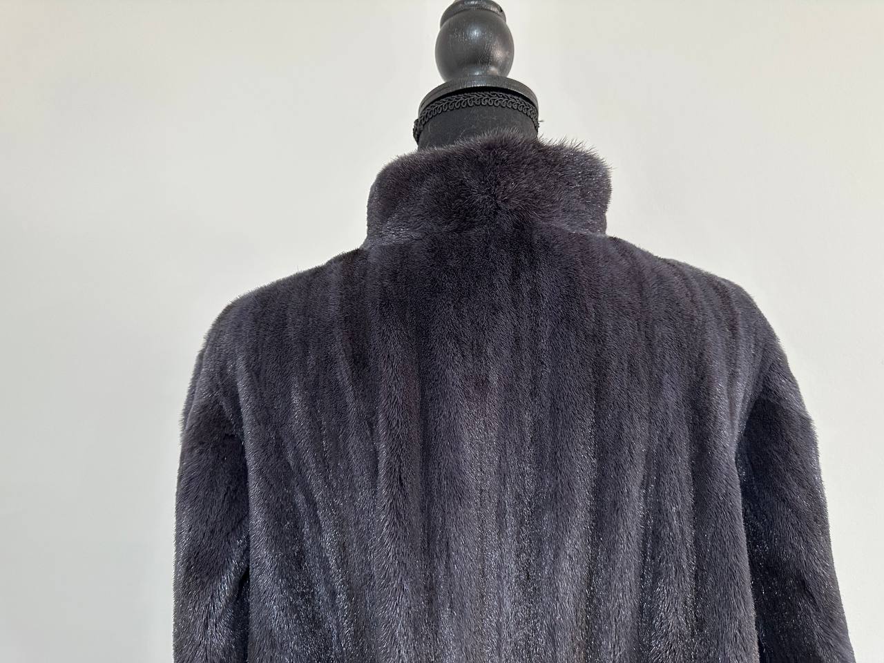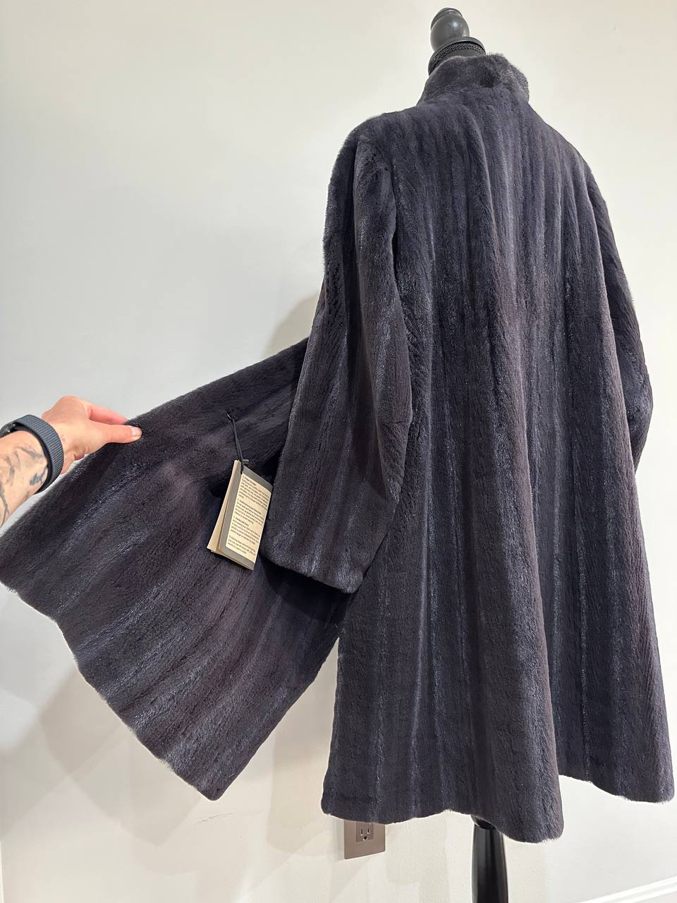 Experience timeless elegance with this exquisite sheared mink fur coat in a deep graphite hue — a refined alternative to classic black.