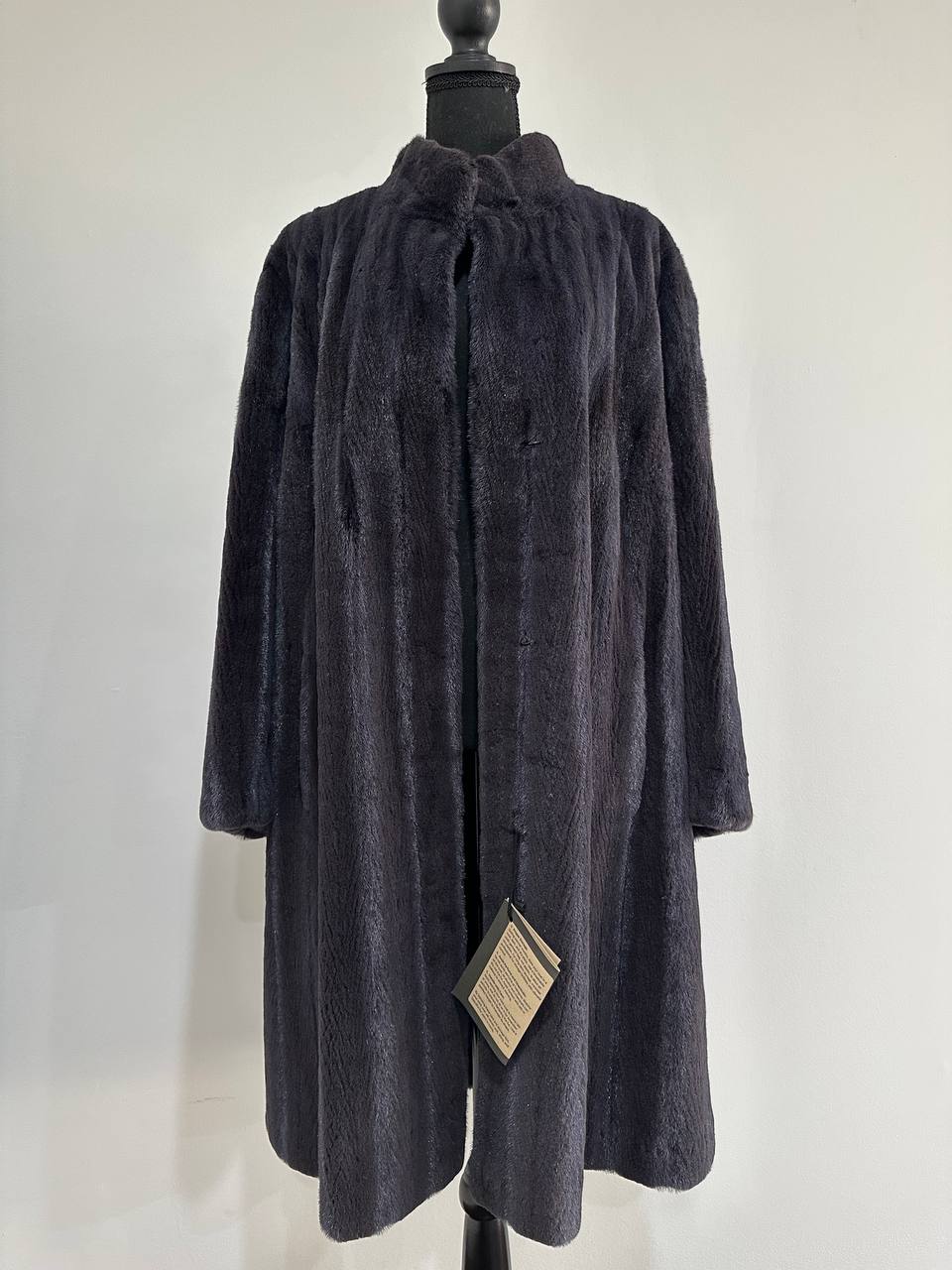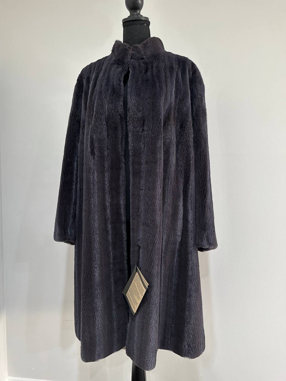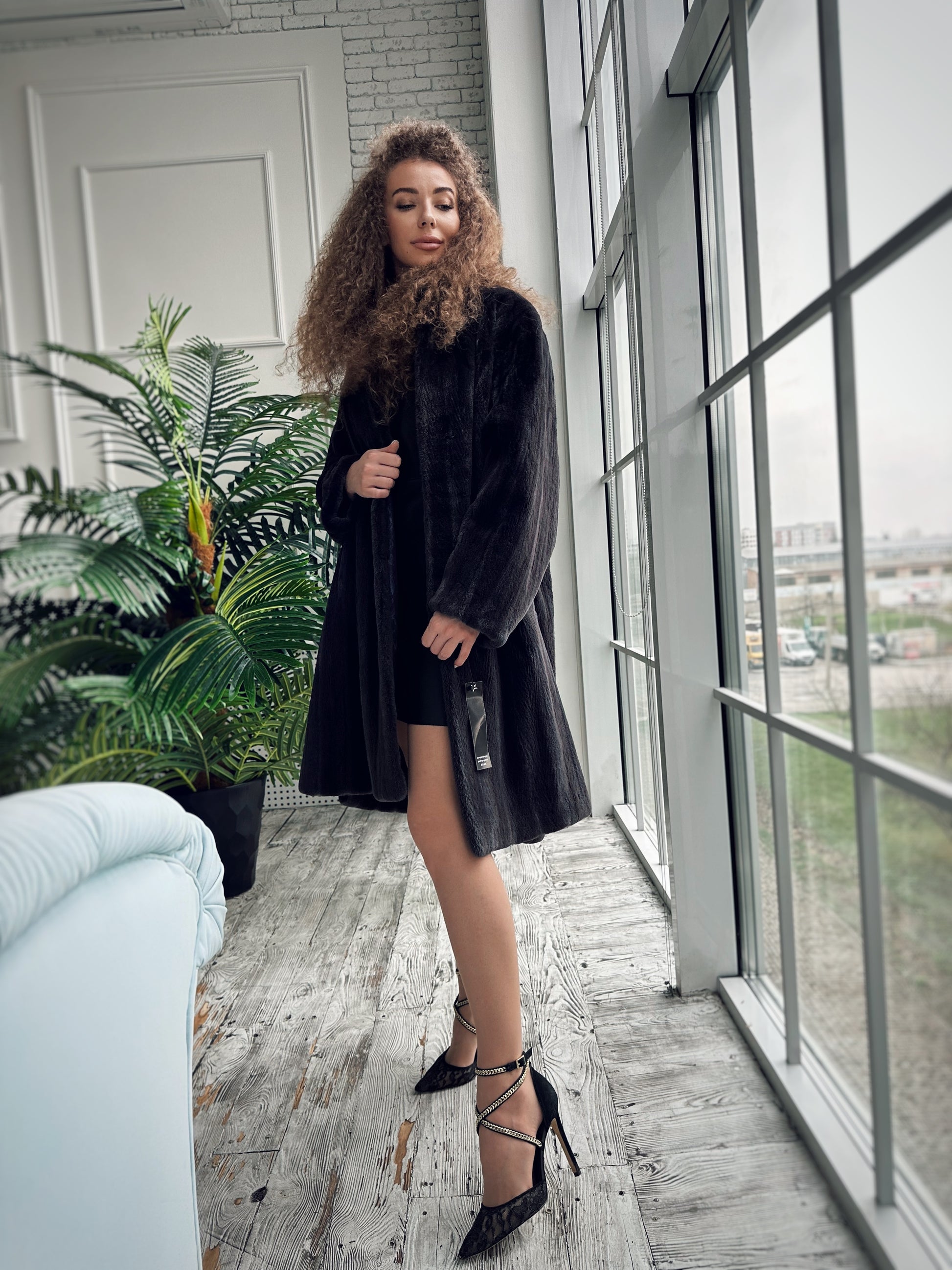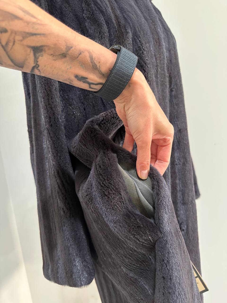 Experience timeless elegance with this exquisite sheared mink fur coat in a deep graphite hue — a refined alternative to classic black.