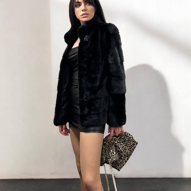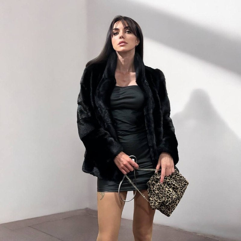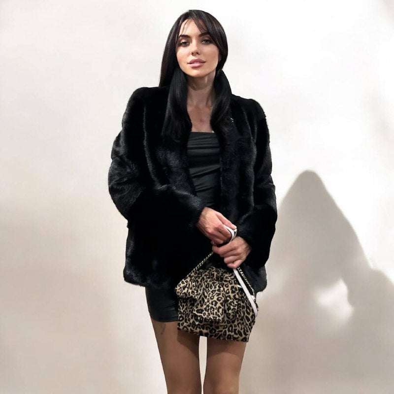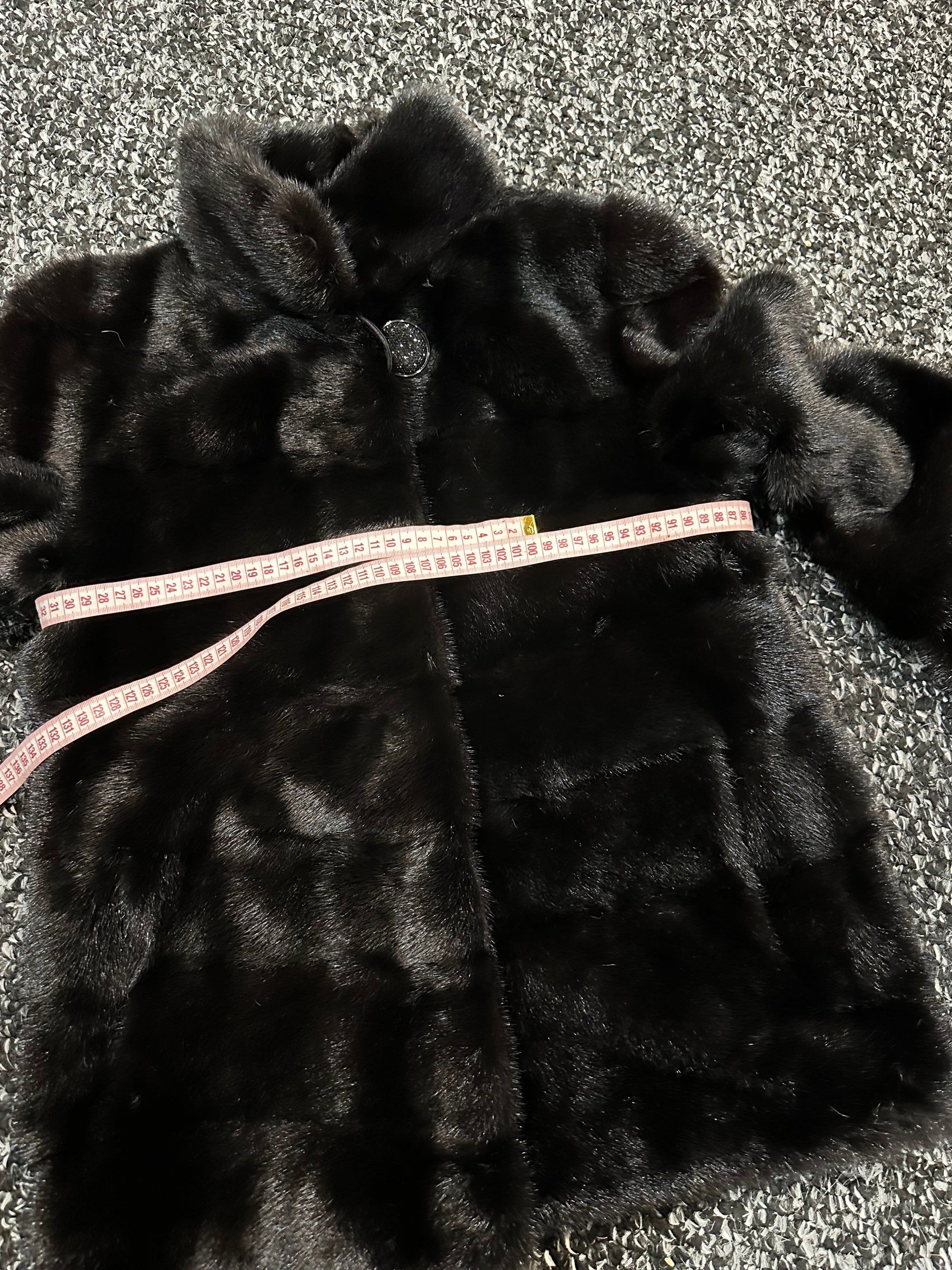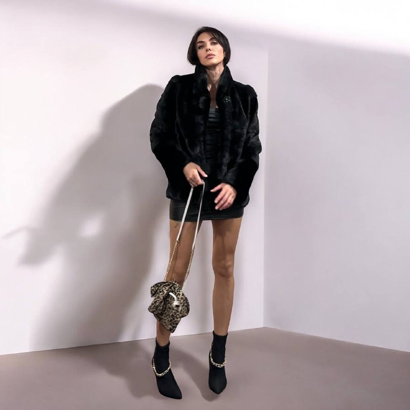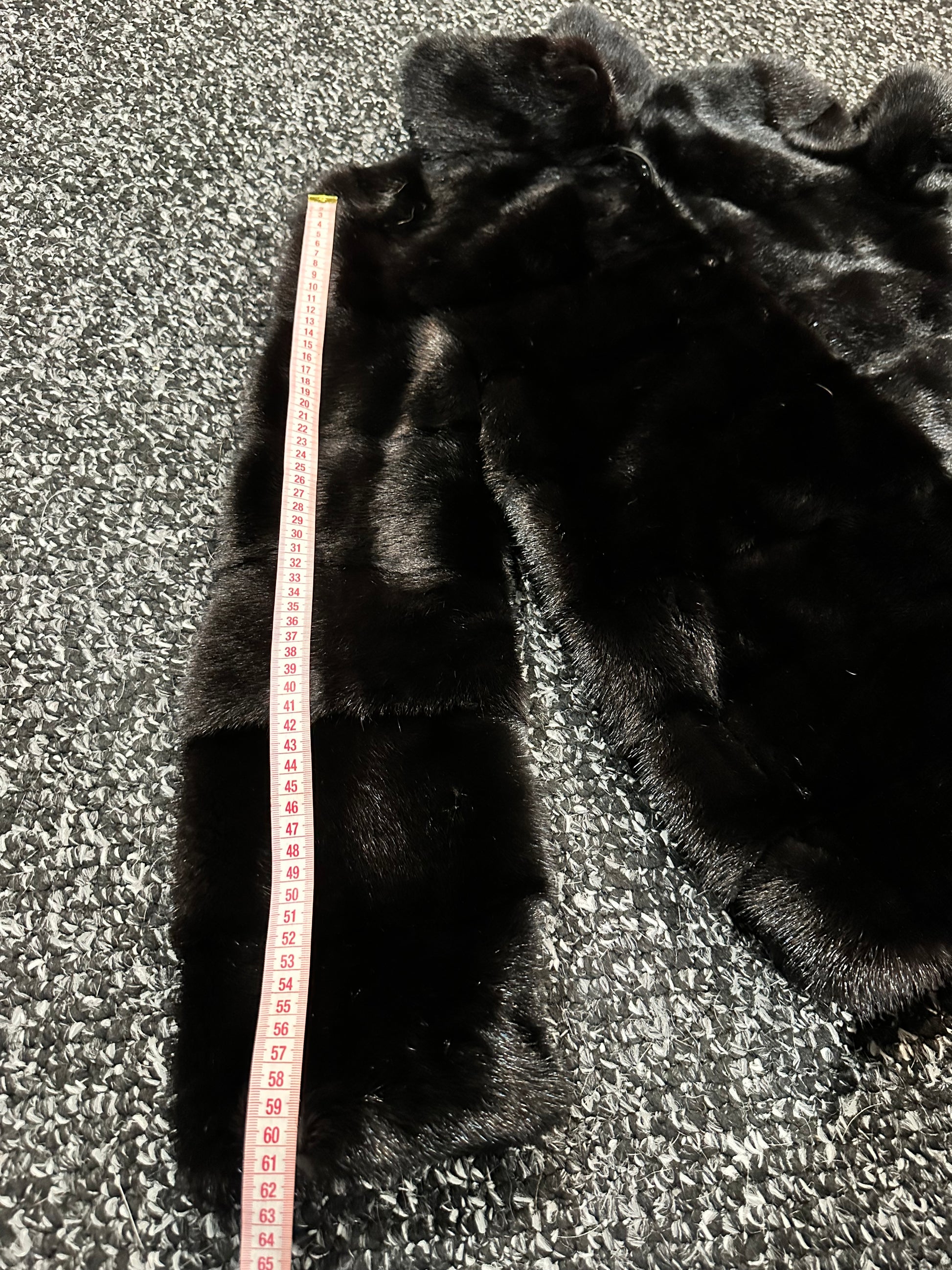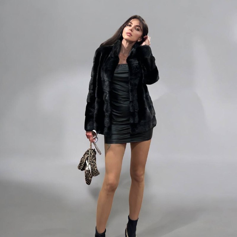 Branded mink coat trade mark FURSTAR, short fur black coat size S mink natural color rich dark black color. Stand up collar with button - see photoes. Close with hooks. Drawstring on the buttom. Fur - soft, fluffy, shiny, natural color. There are 2 pockets. Ukrainian manufacturer. Viscose lining, hand-sewn. Great coat for everyday life.
