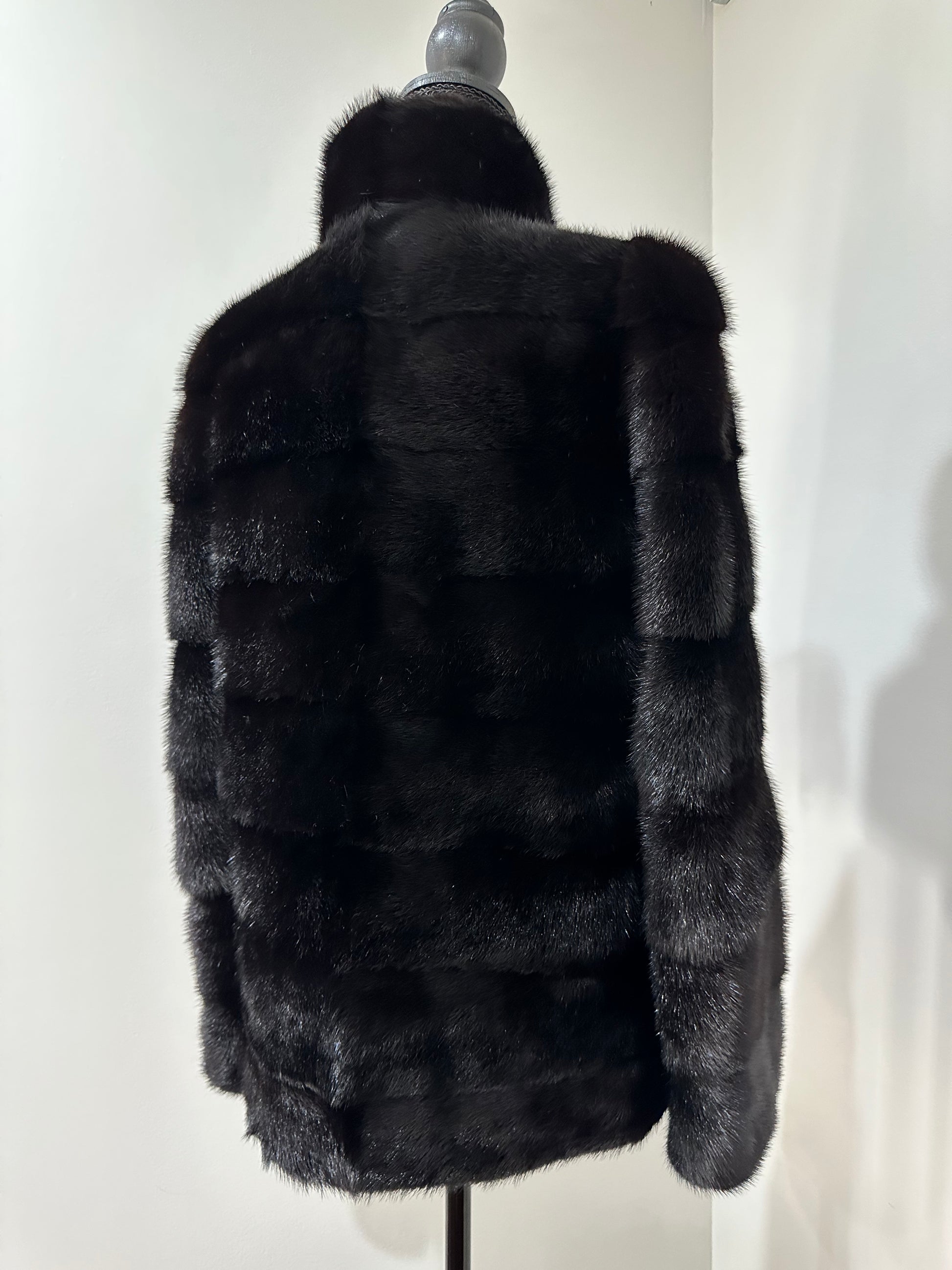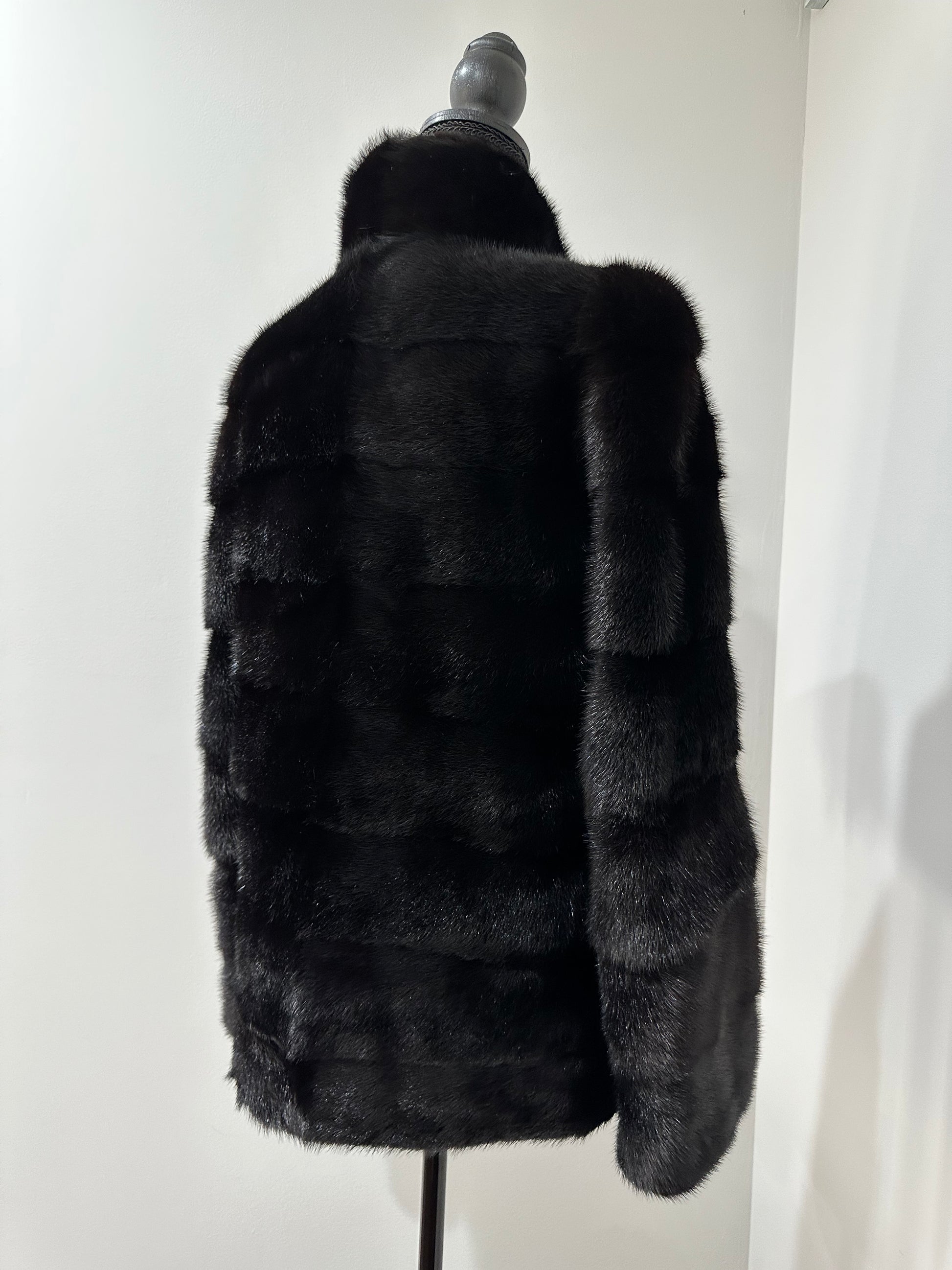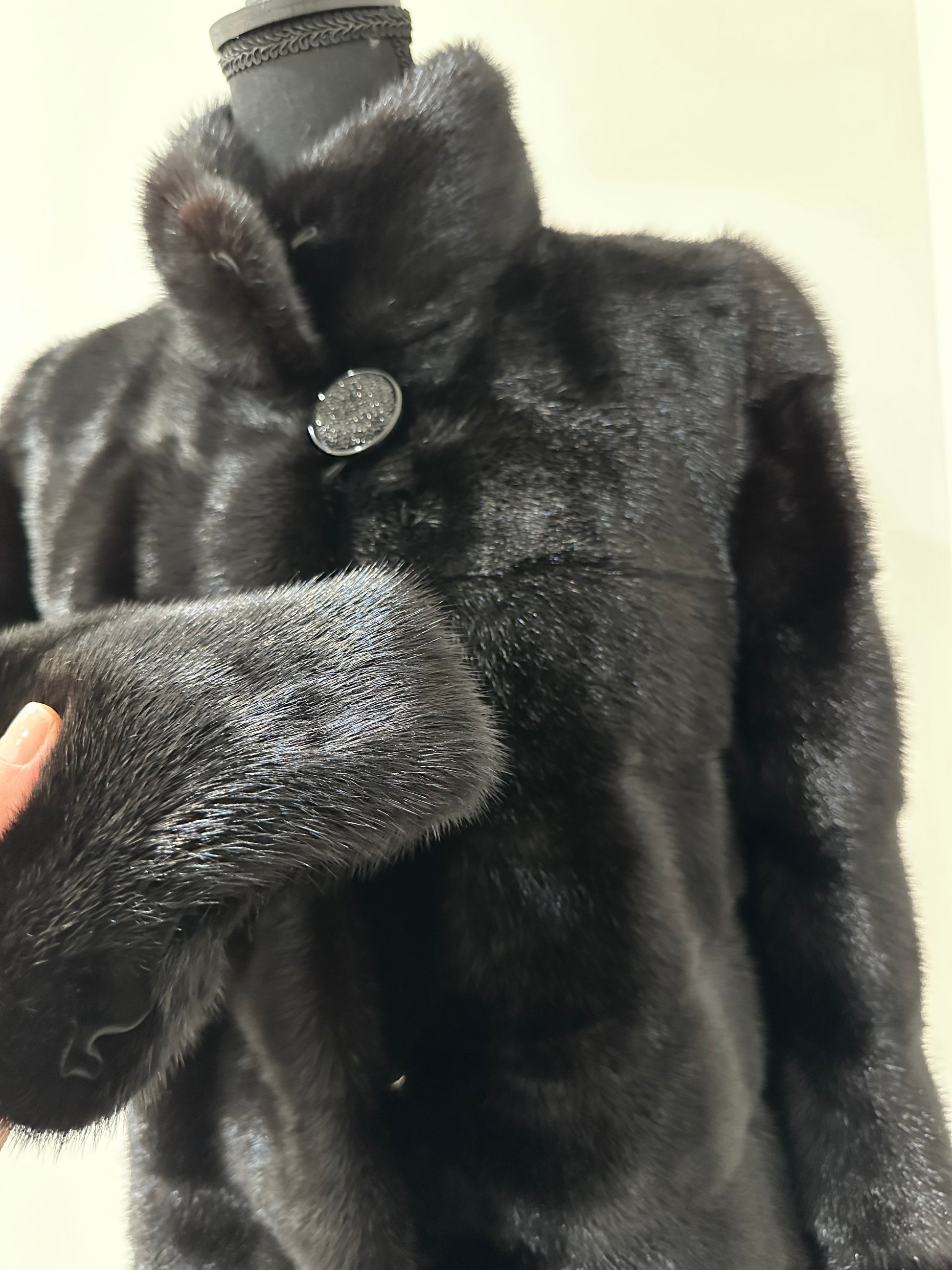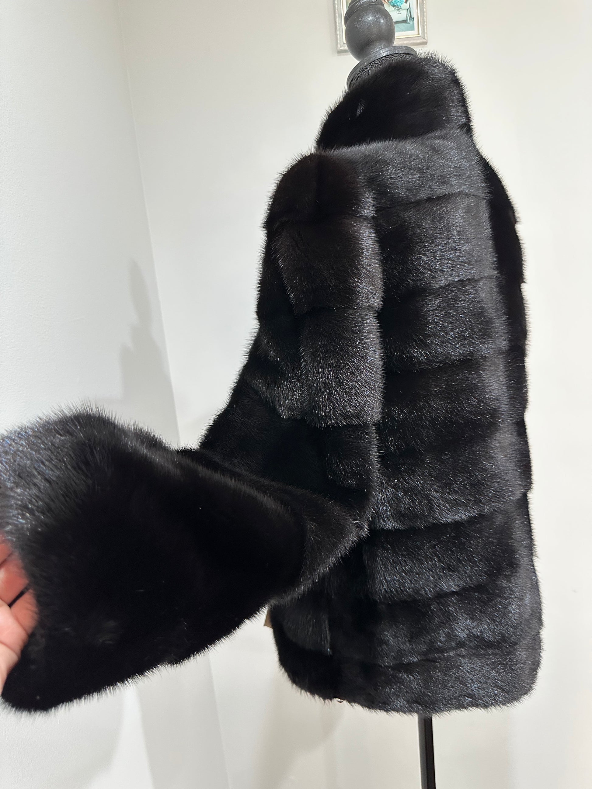 REAL Mink FUR jacket coat GENUINE 1201075 BLACK size S NEW Luxury SLEEVE detachabl
