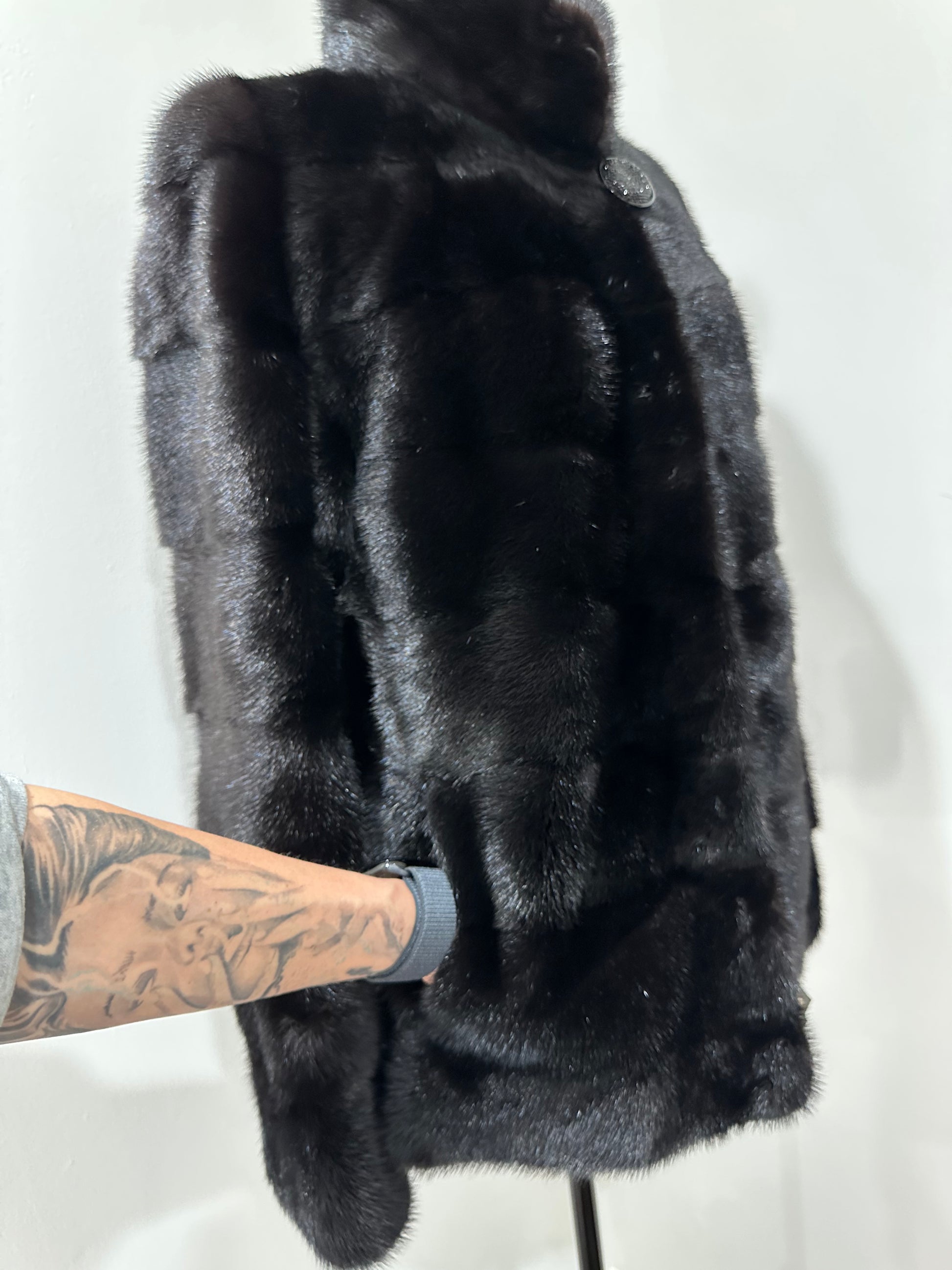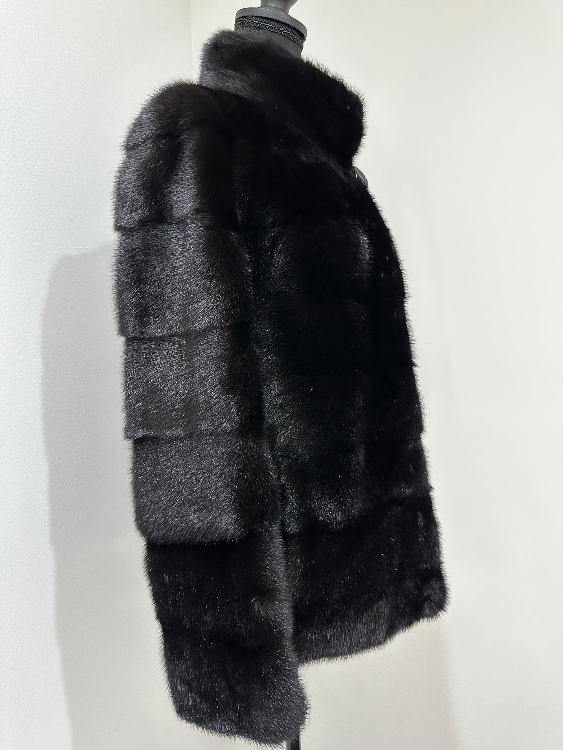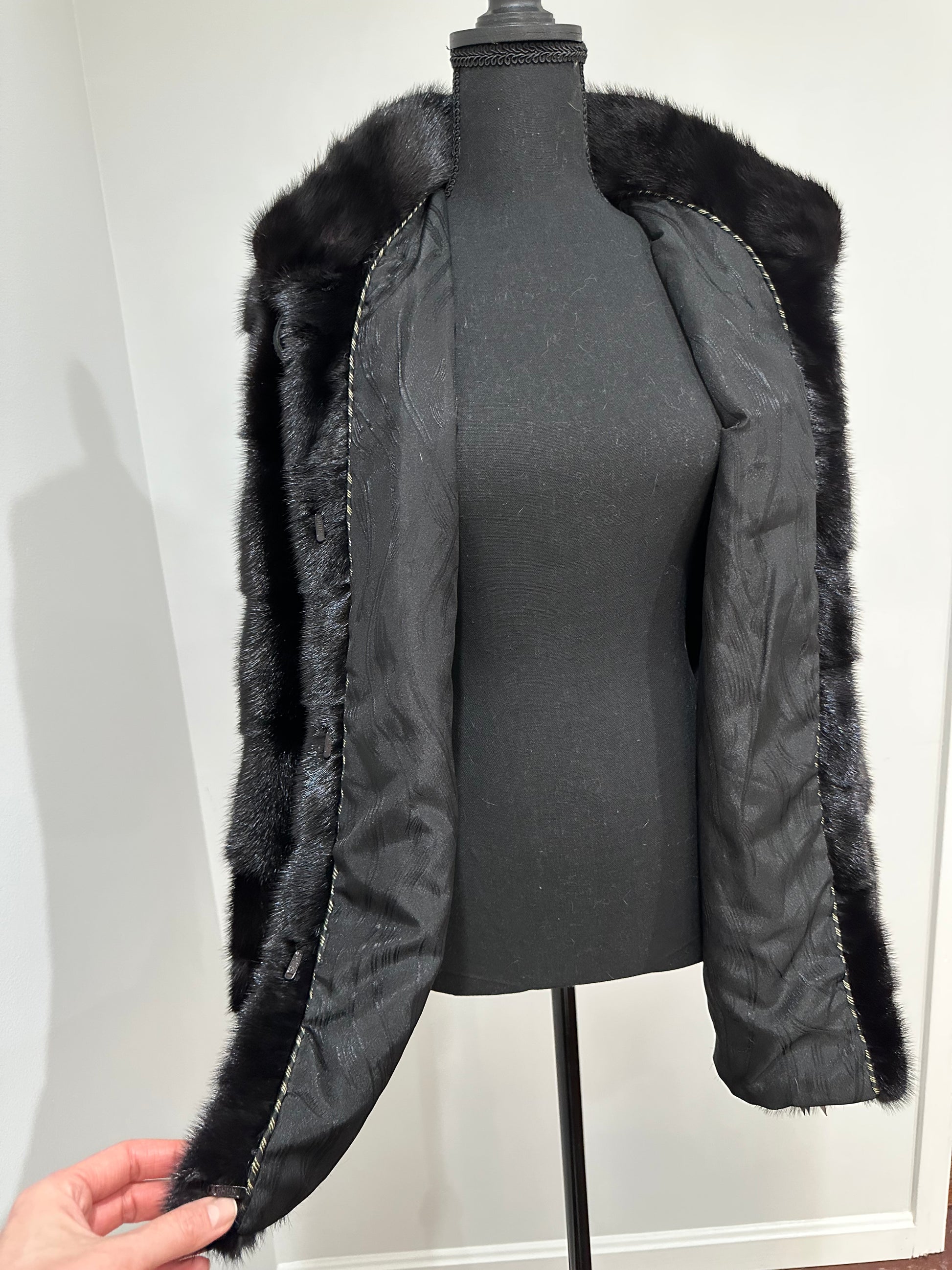 REAL Mink FUR jacket coat GENUINE 1201075 BLACK size S NEW Luxury SLEEVE detachabl