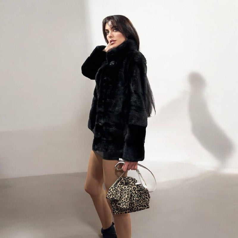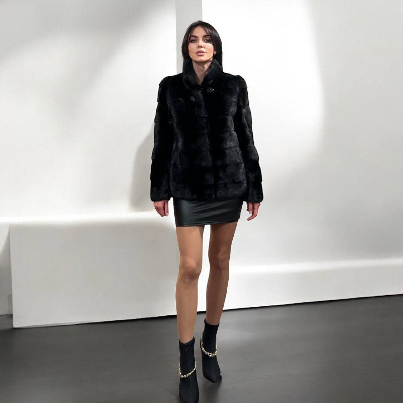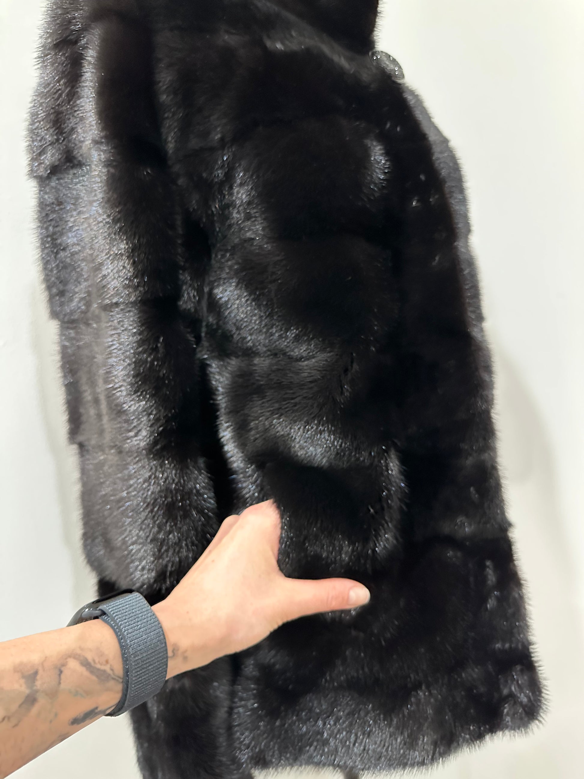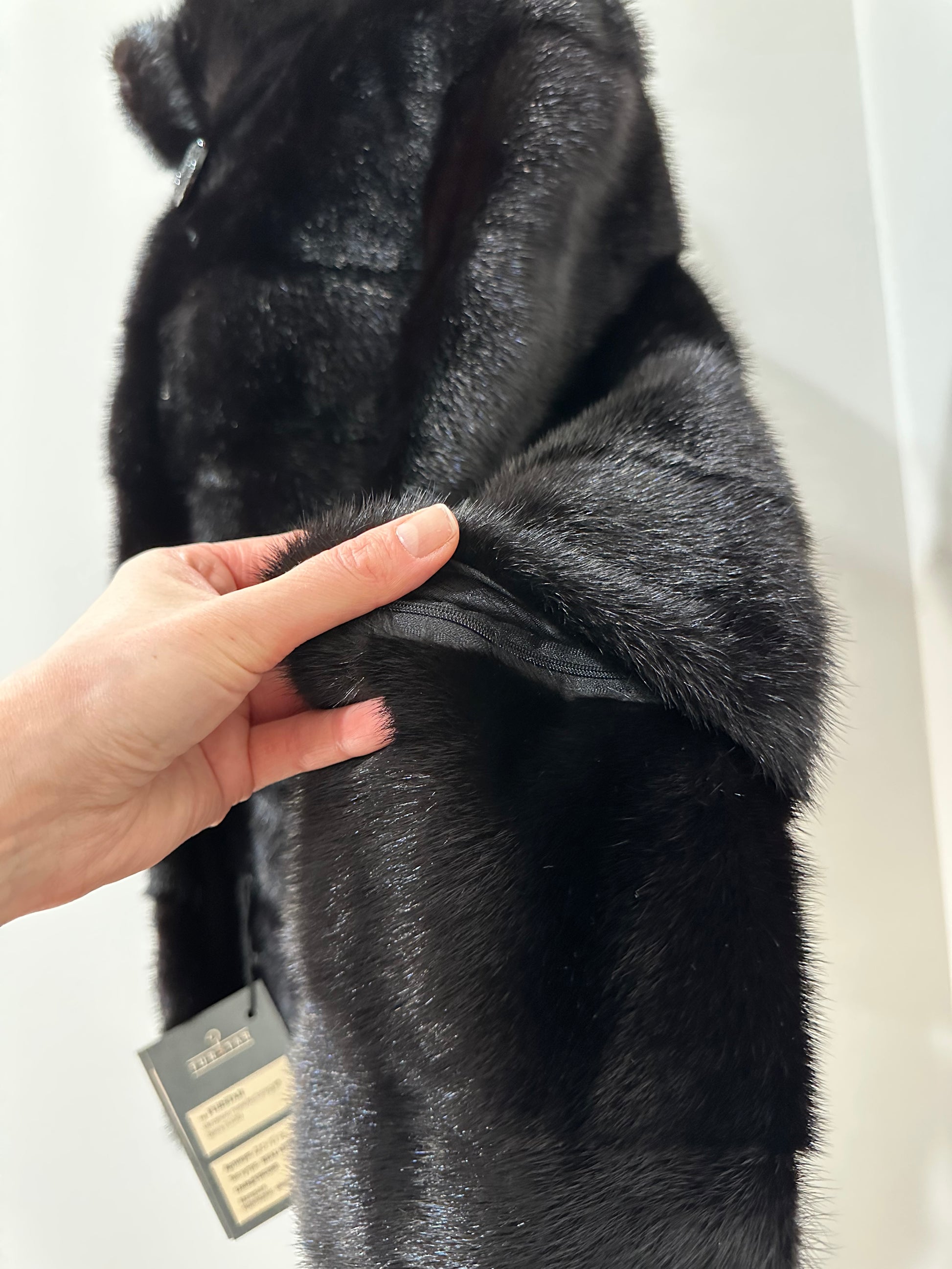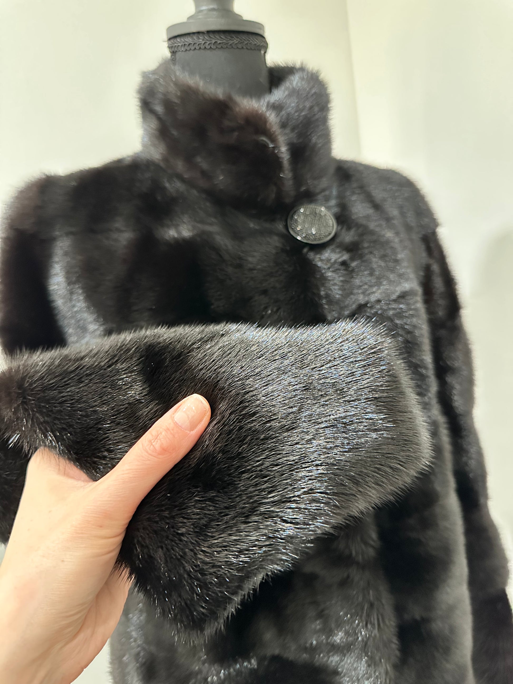 REAL Mink FUR jacket coat GENUINE 1201075 BLACK size S NEW Luxury SLEEVE detachabl