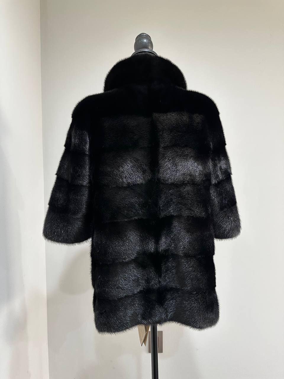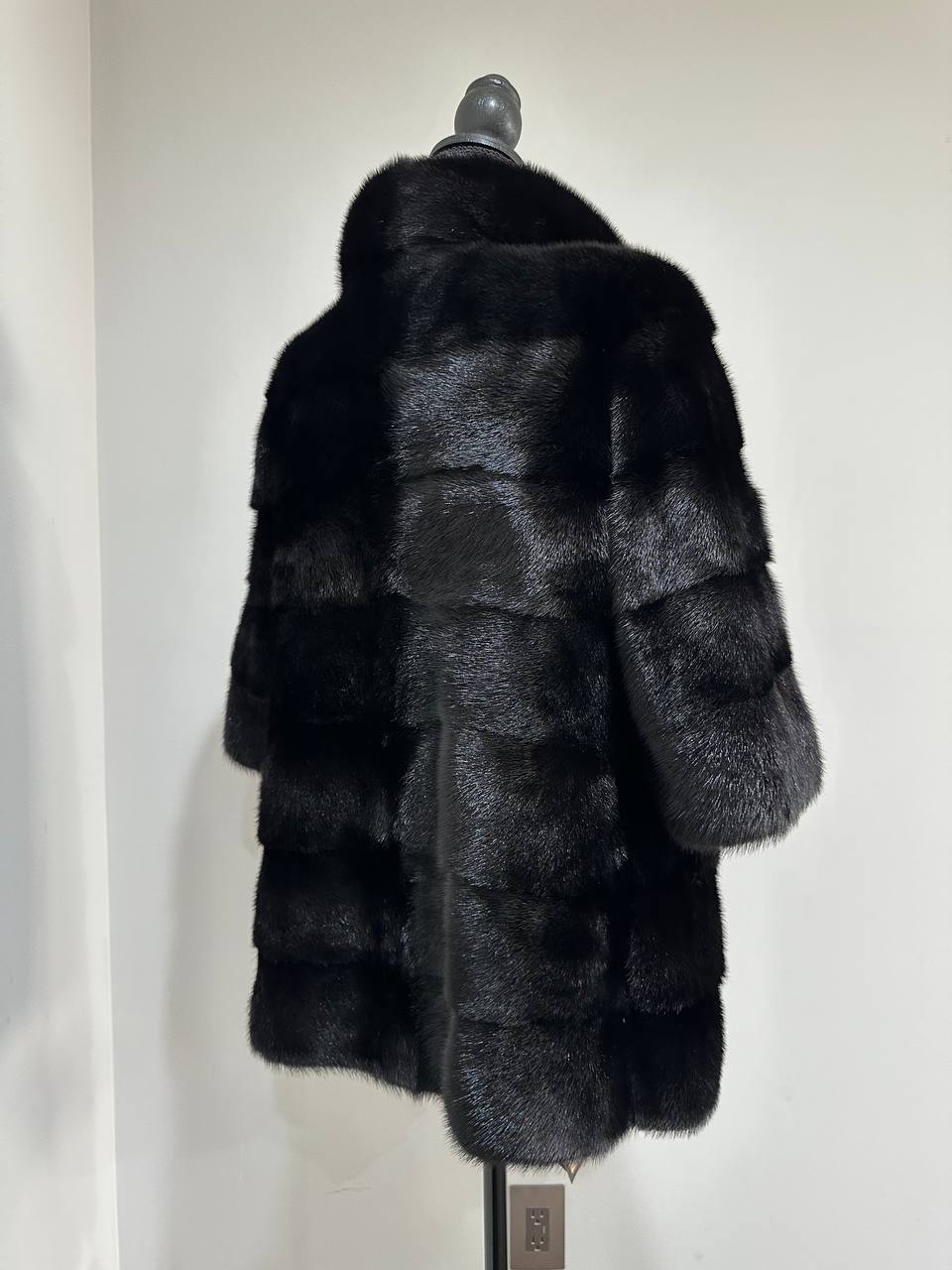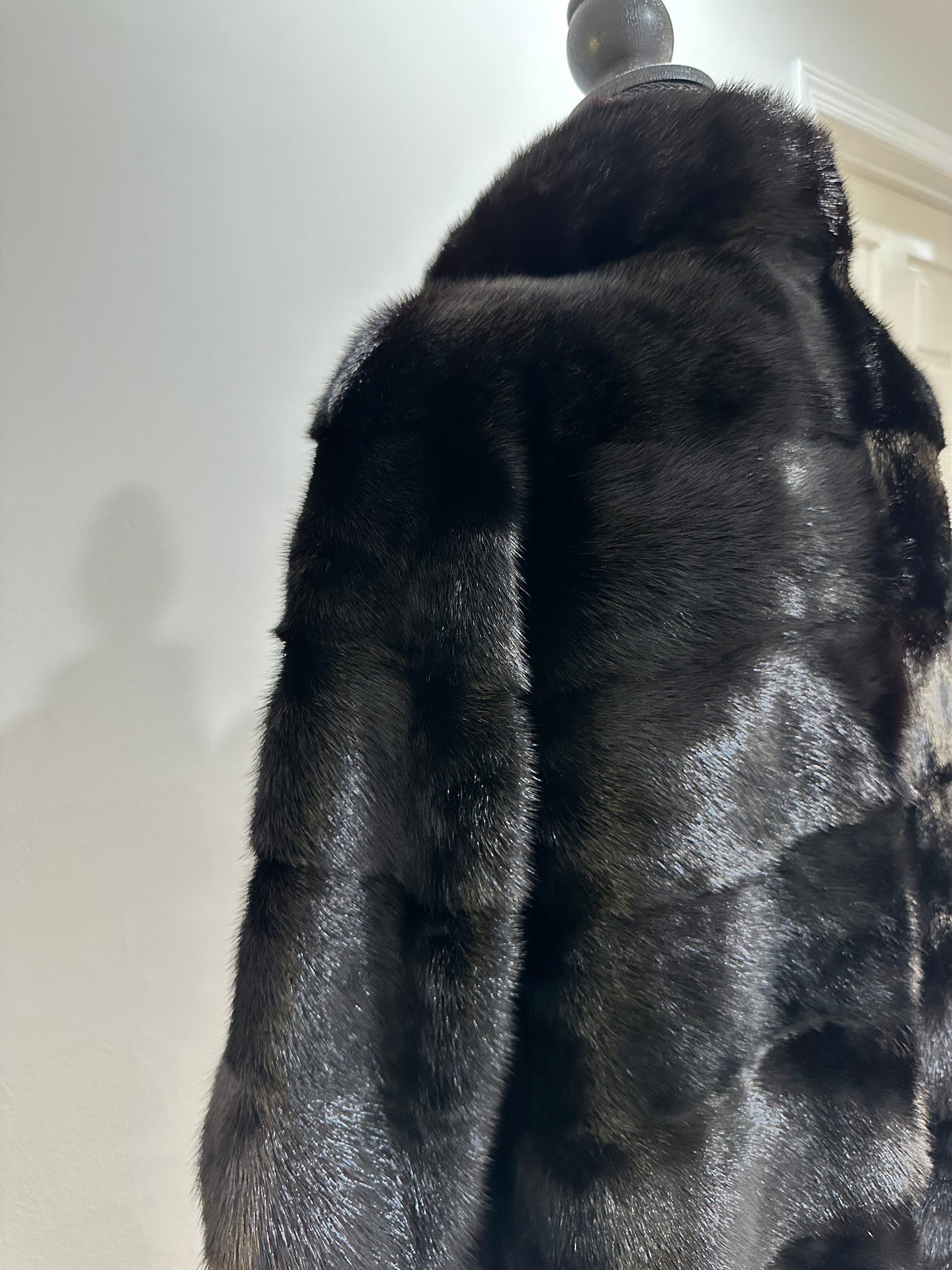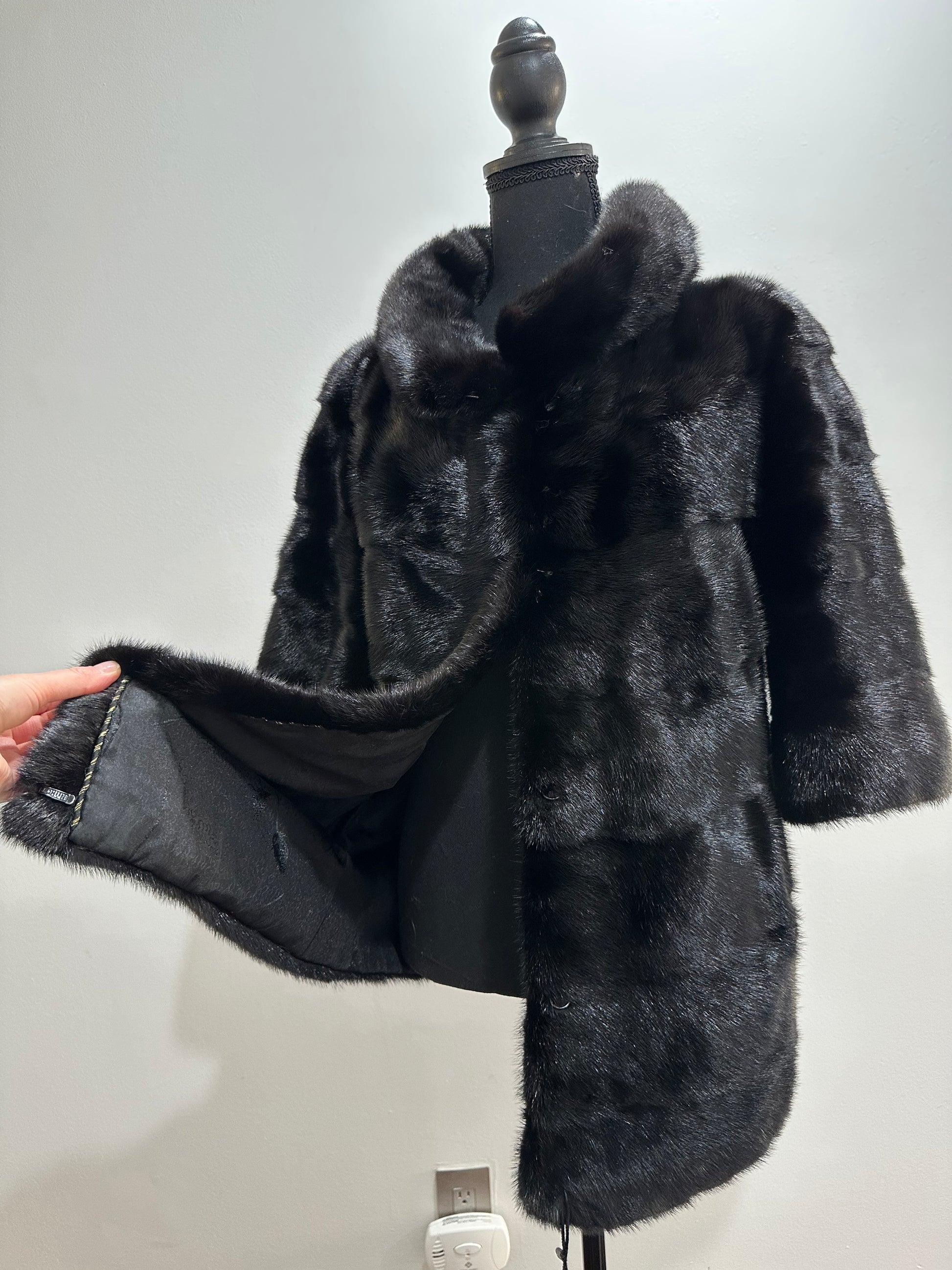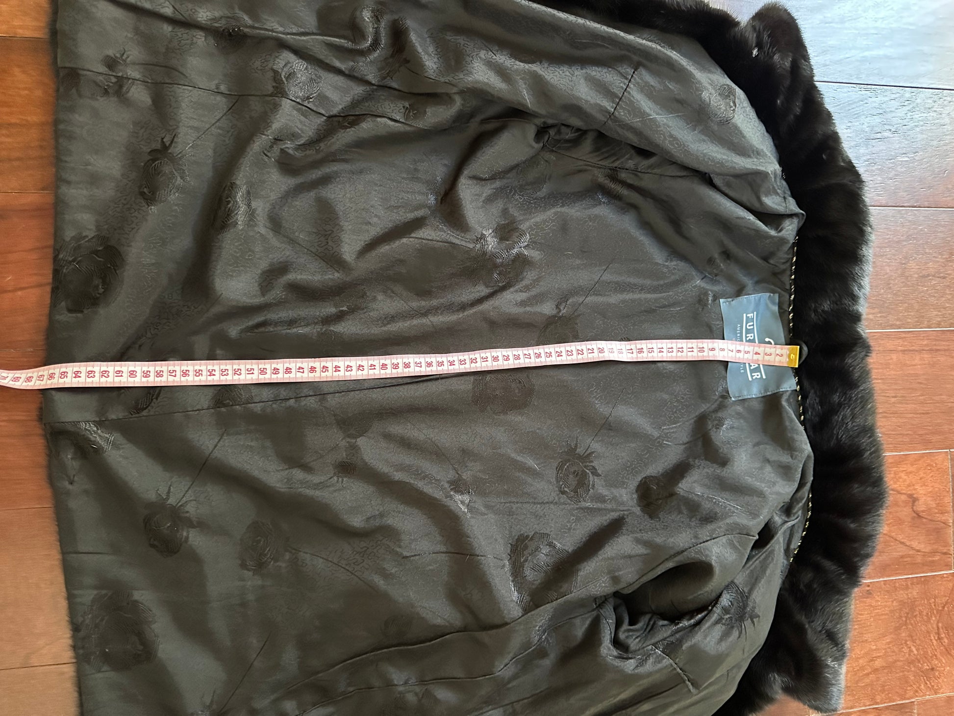 Branded mink coat trade mark FURSTAR, short fur black coat size S mink natural color rich dark black color. Stand up collar. Fur - soft, fluffy, shiny, natural color. There are 2 pockets. Ukrainian manufacturer. Viscose lining, hand-sewn. Great coat for everyday life.
