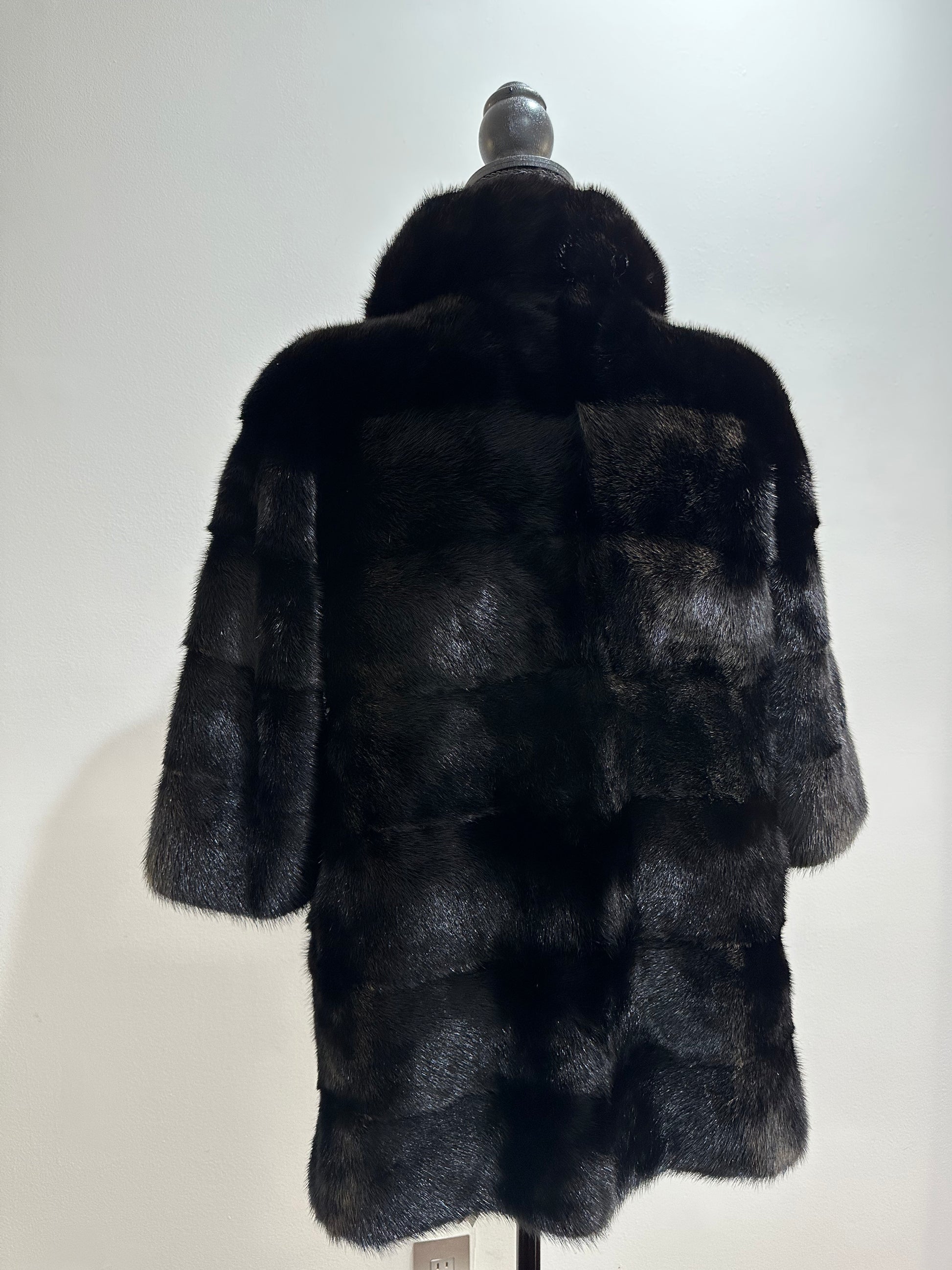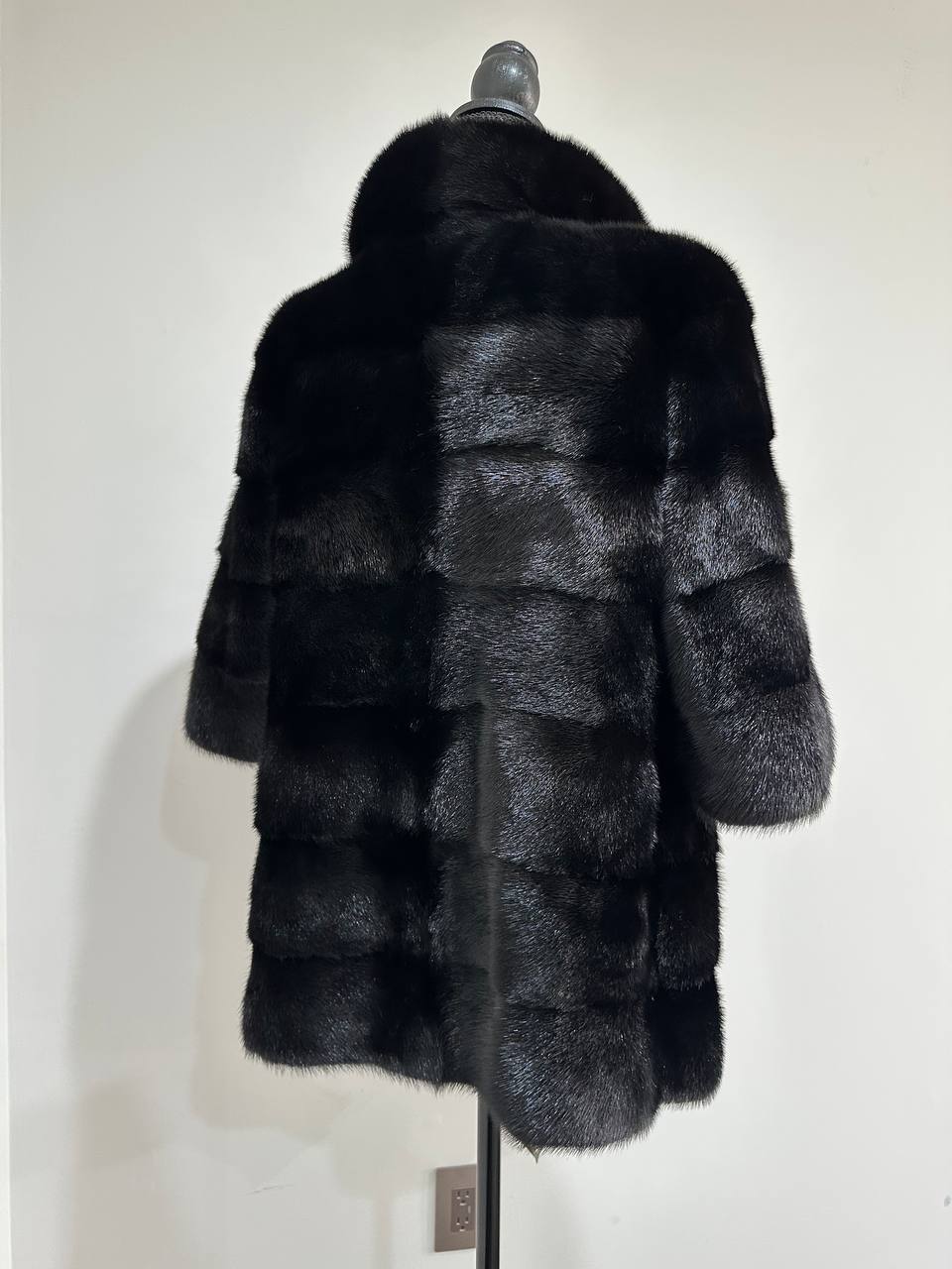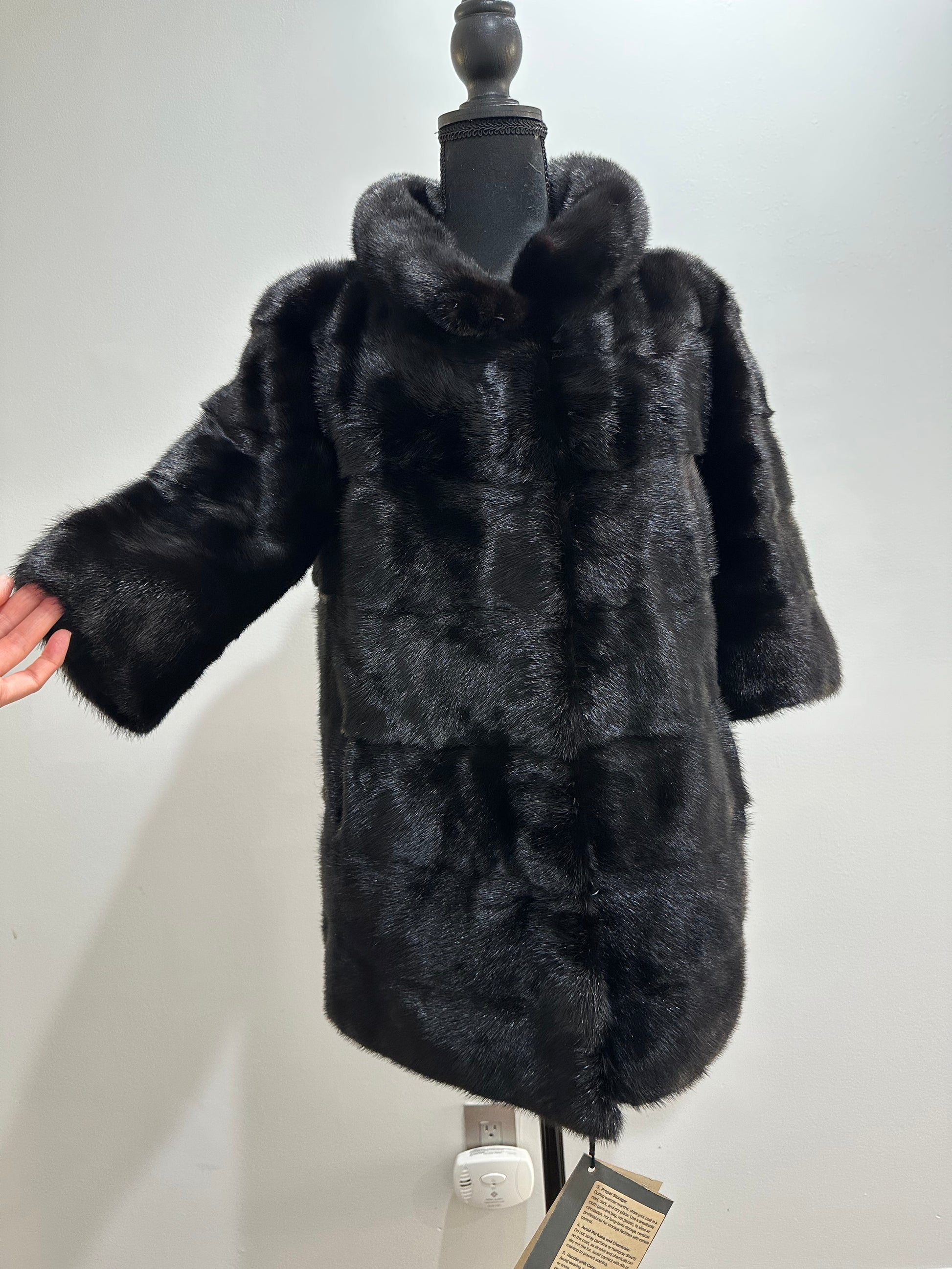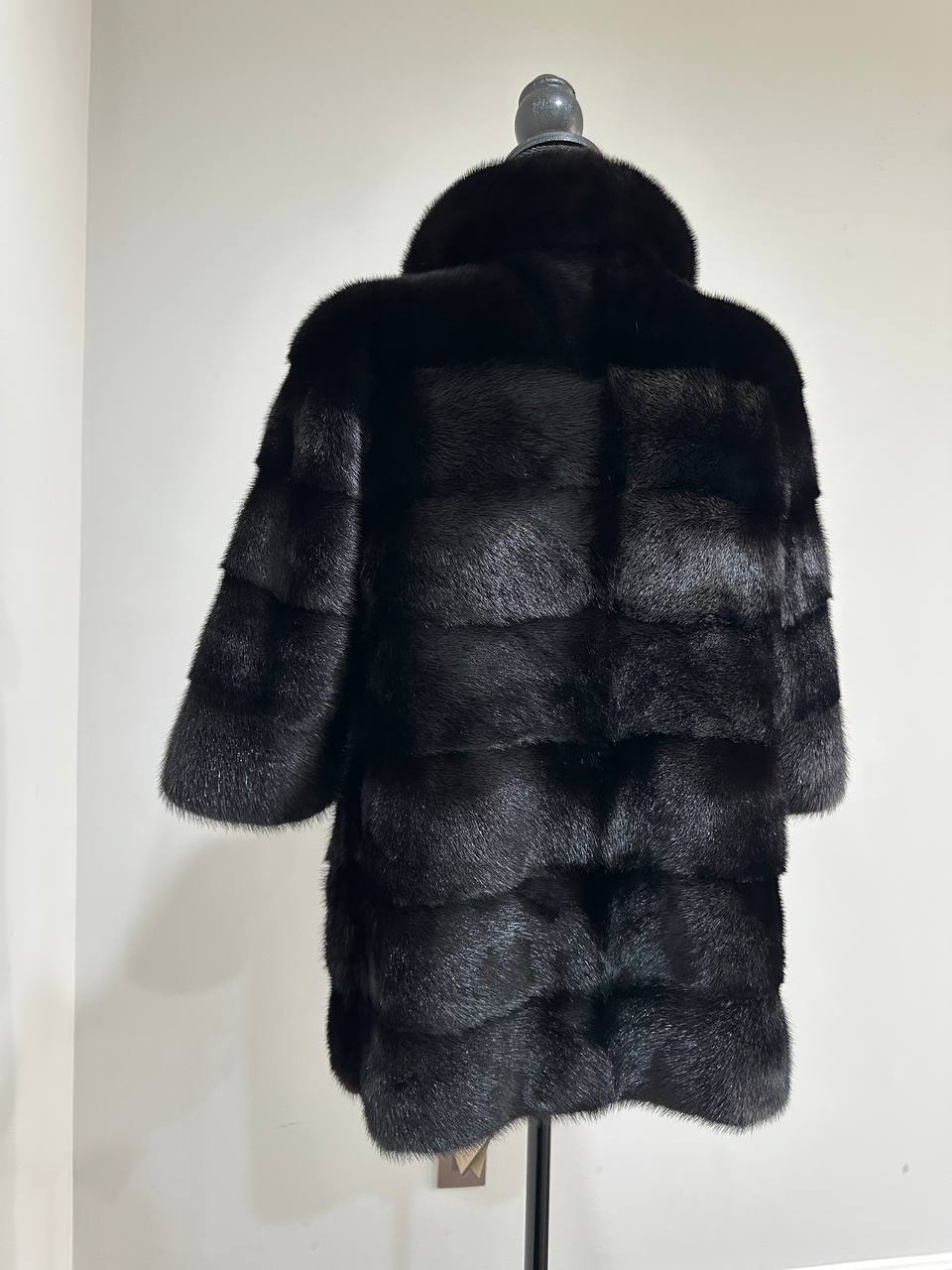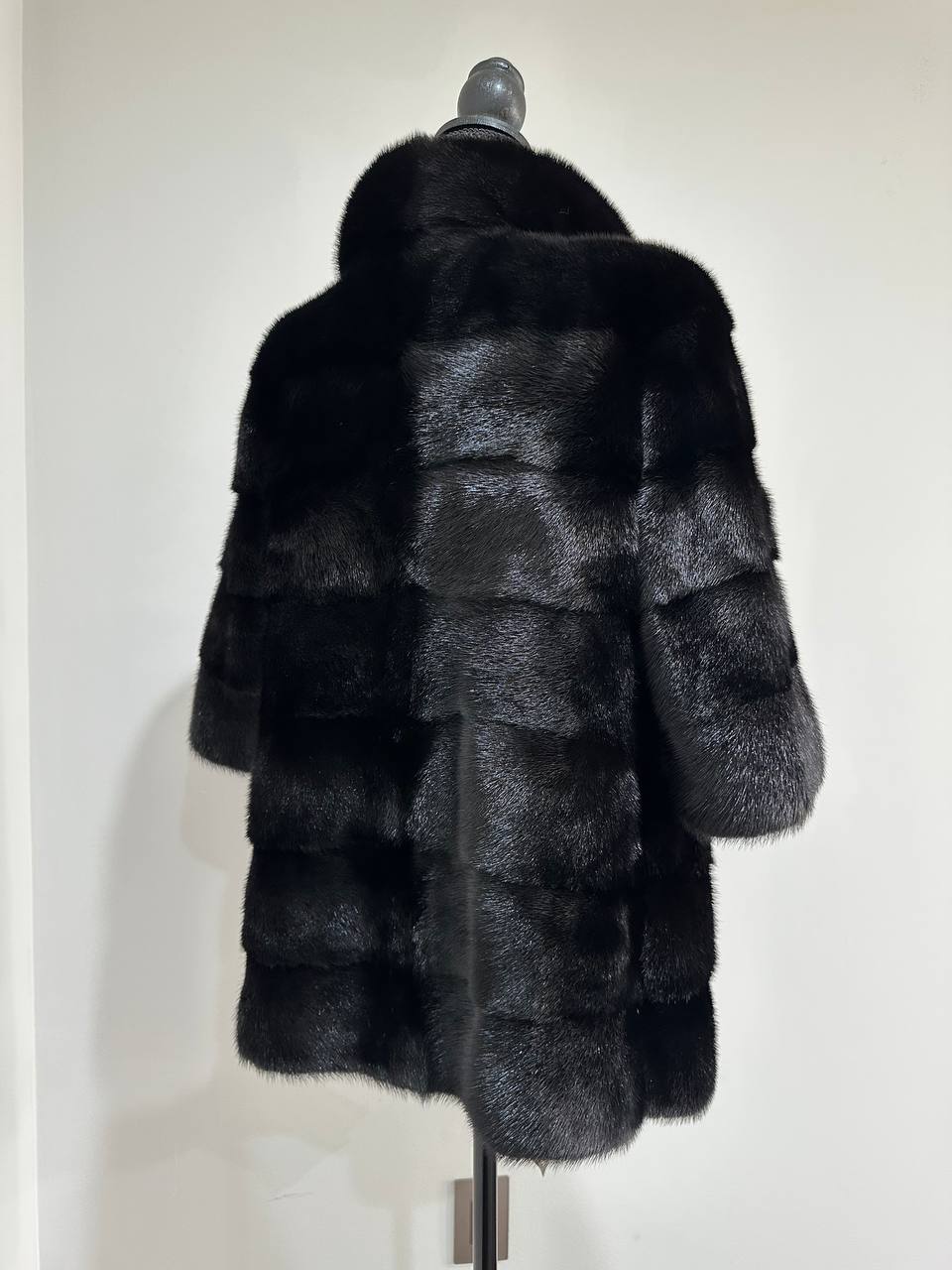 Branded mink coat trade mark FURSTAR, short fur black coat size S mink natural color rich dark black color. Stand up collar. Fur - soft, fluffy, shiny, natural color. There are 2 pockets. Ukrainian manufacturer. Viscose lining, hand-sewn. Great coat for everyday life.