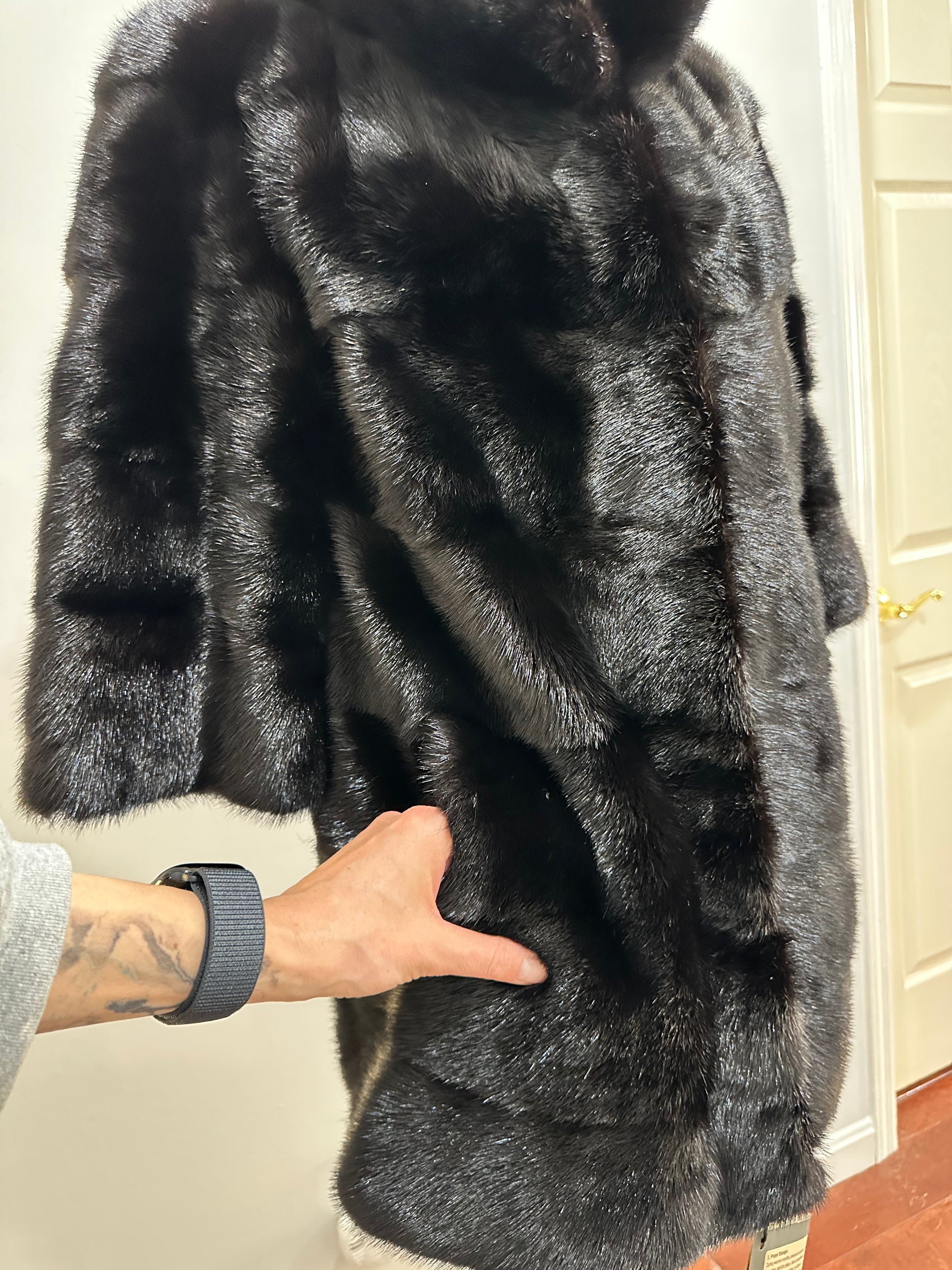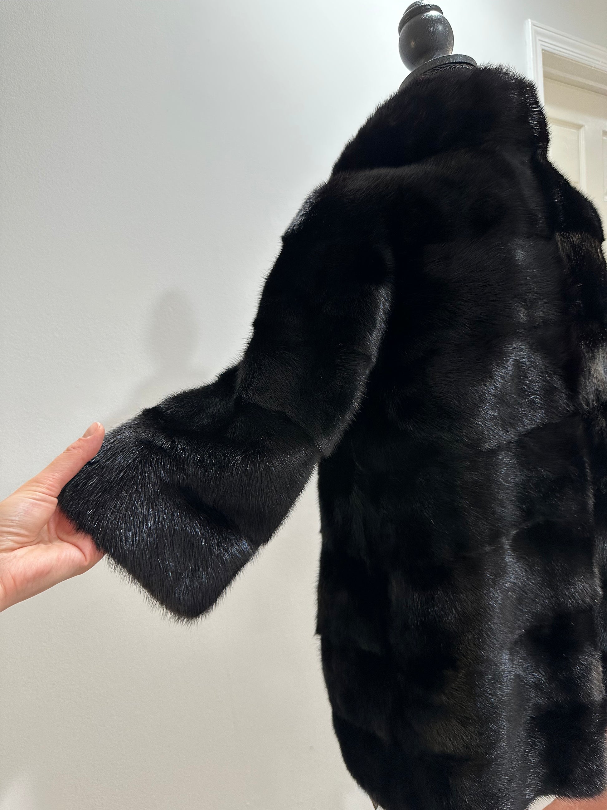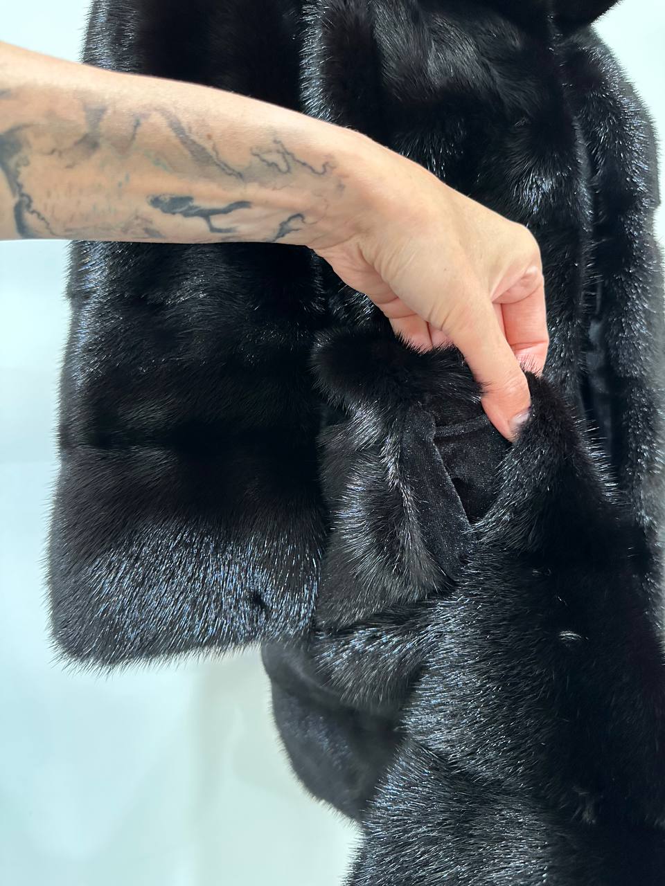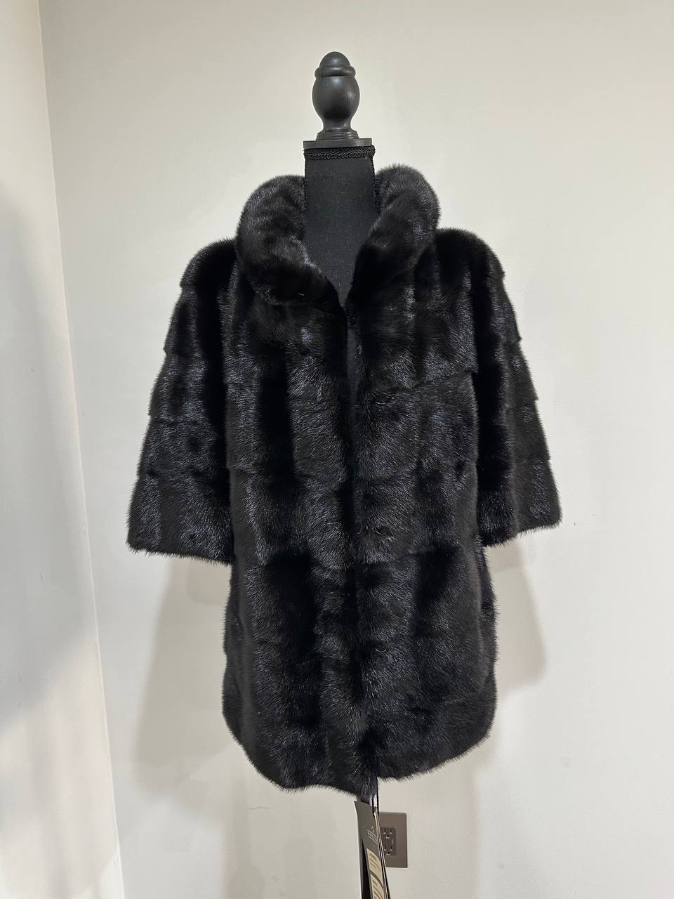 REAL Mink FUR jacket SHORT SLEEVE coat GENUINE 1201068 BLACK size S NEW Luxury