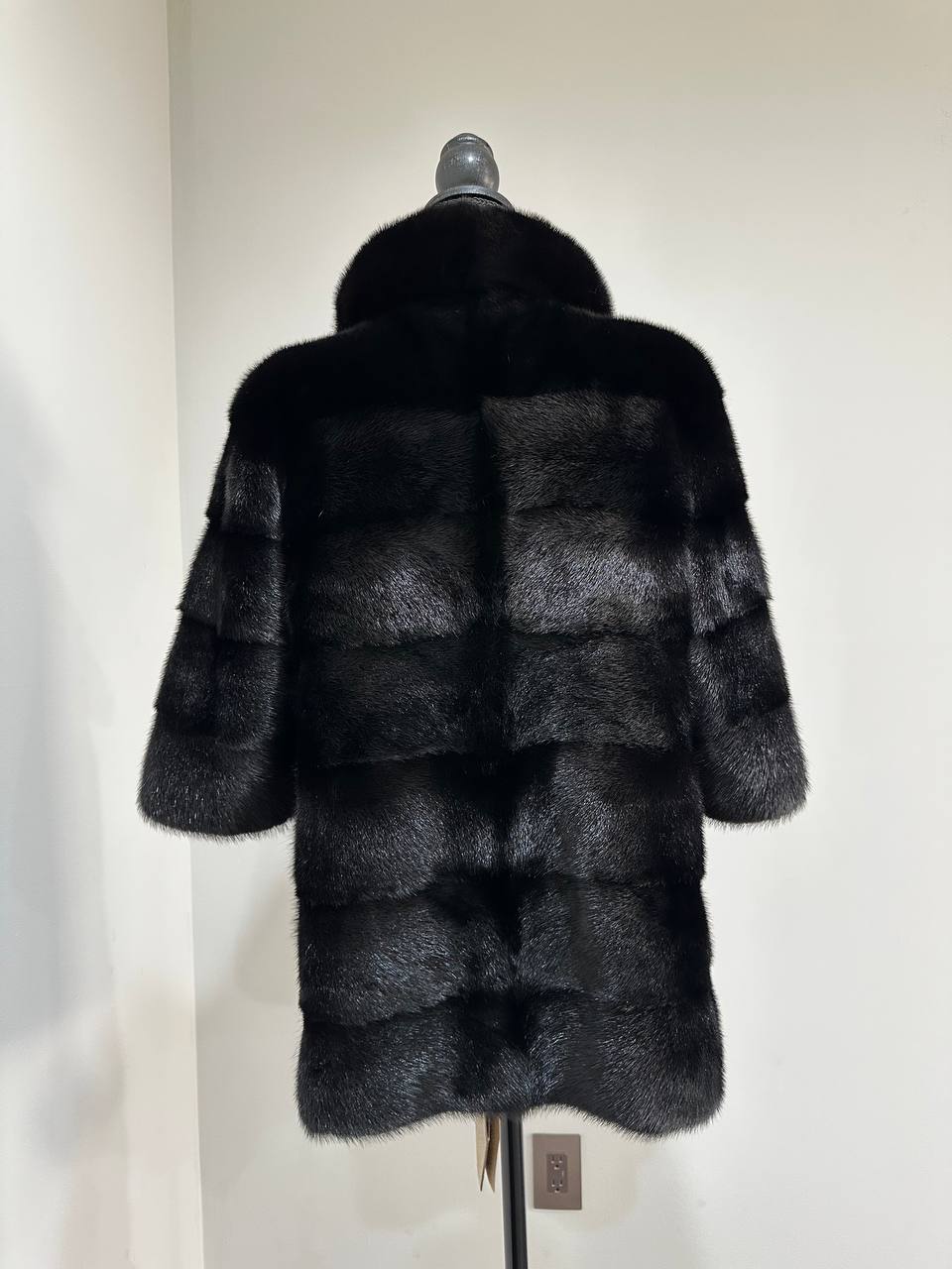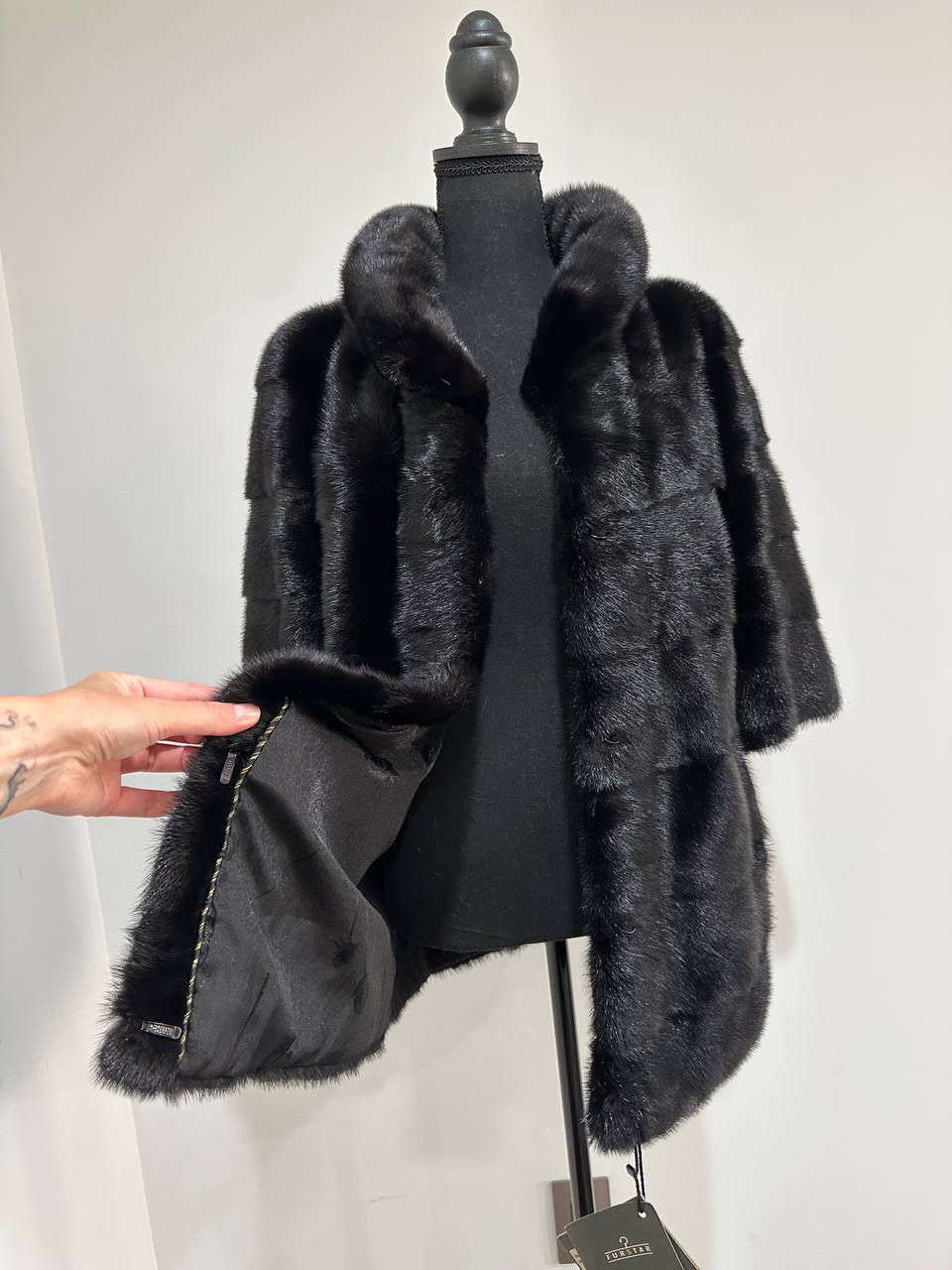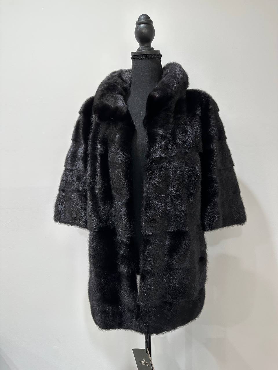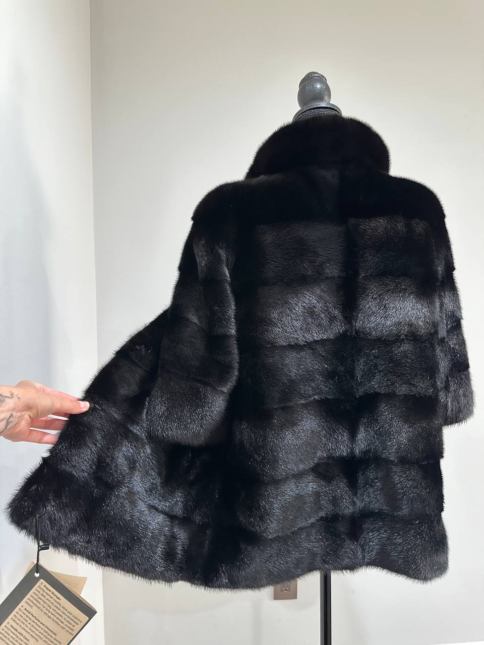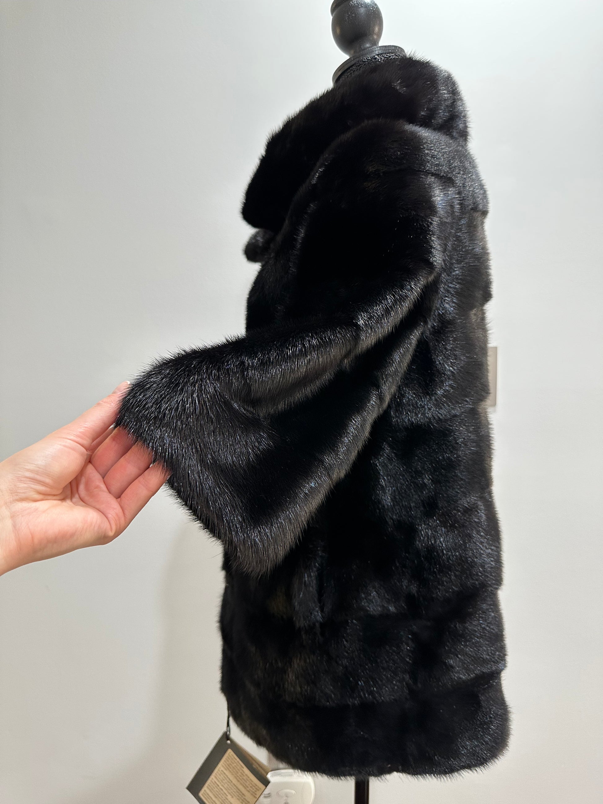 REAL Mink FUR jacket SHORT SLEEVE coat GENUINE 1201068 BLACK size S NEW Luxury