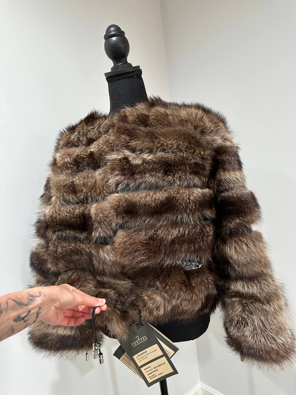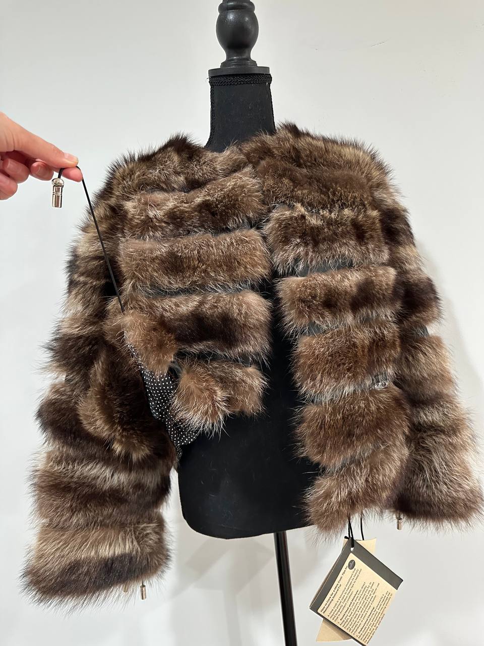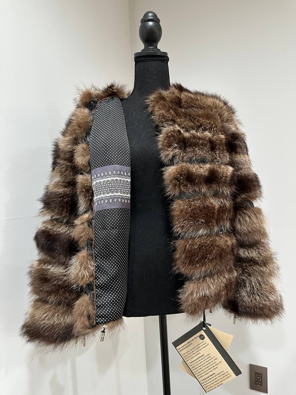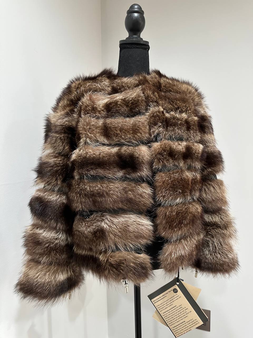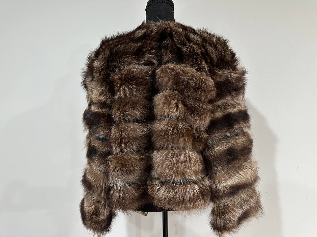 Real raccoon 100% Fur SHORT BOMBER Coat Size L 1109838 HORIZONTAL STYLE