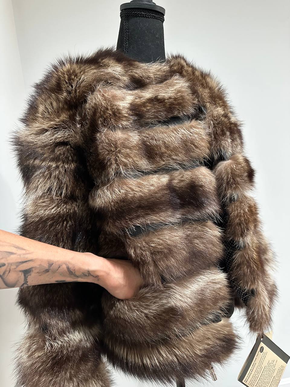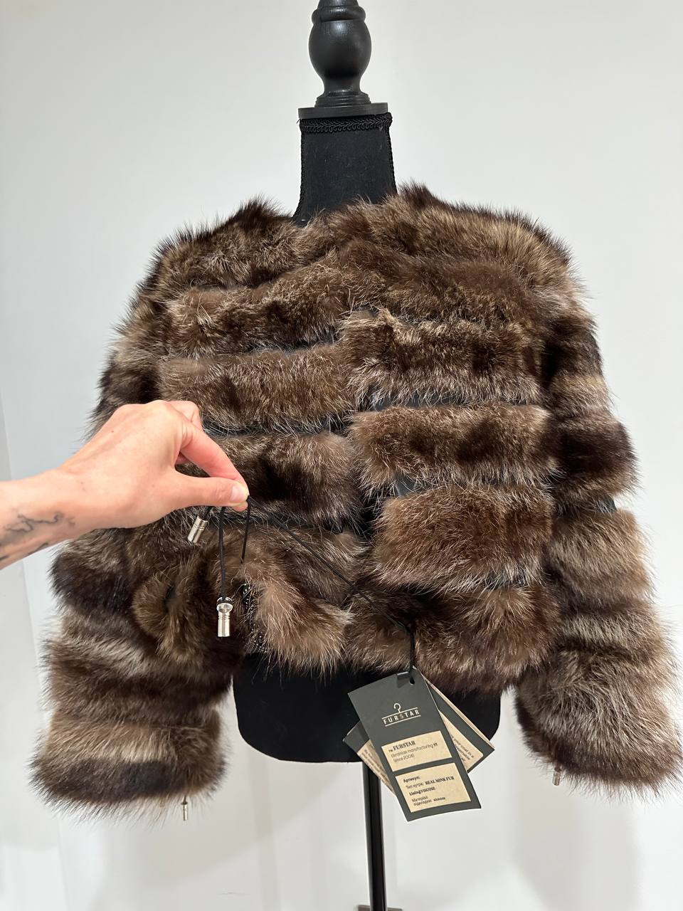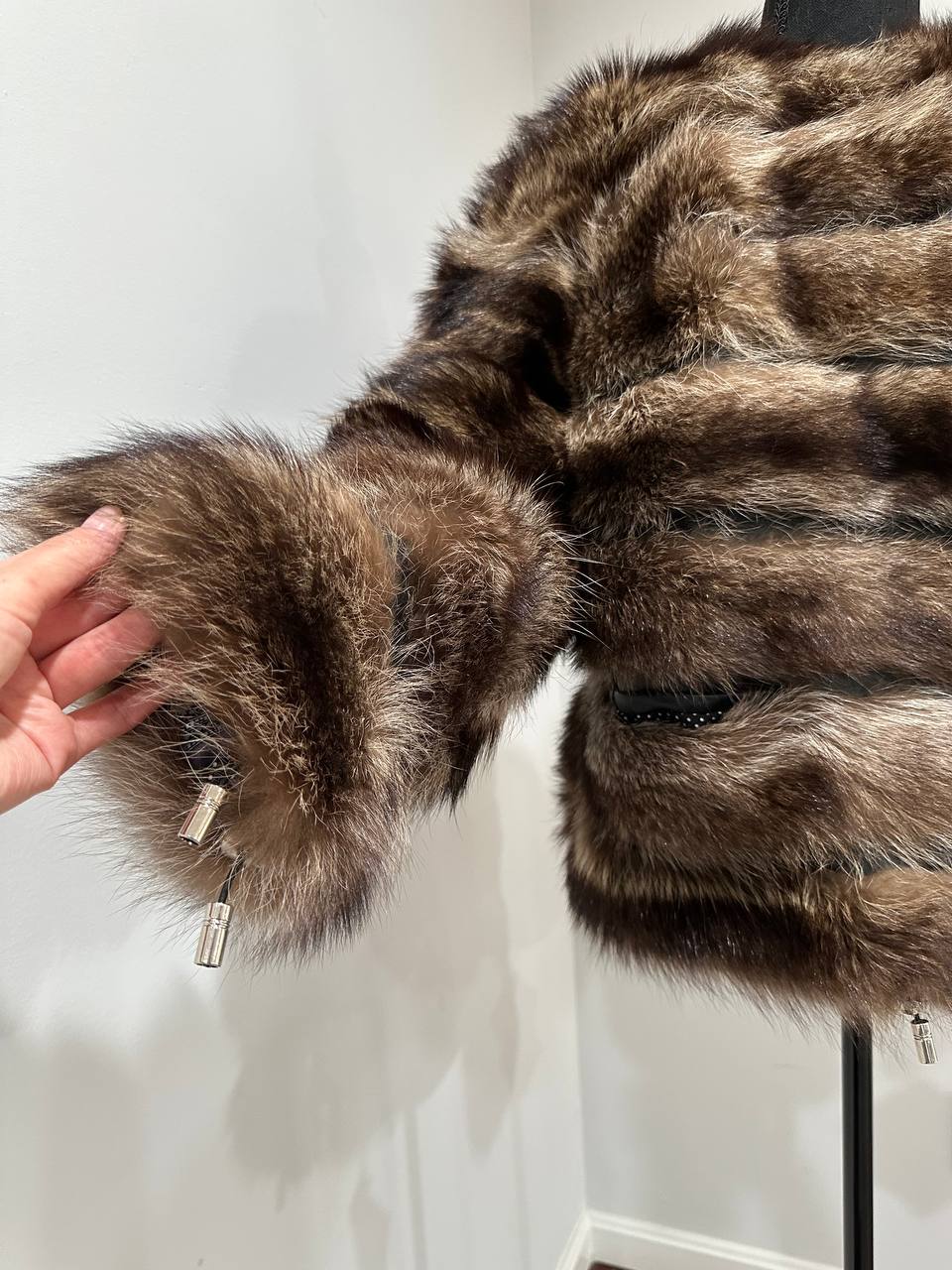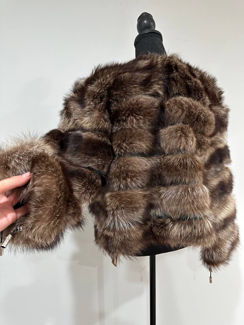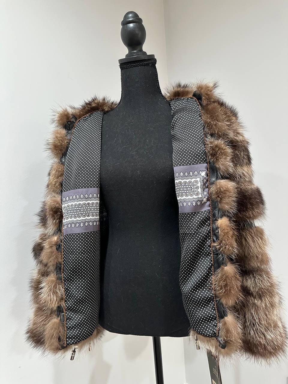 Real raccoon 100% Fur SHORT BOMBER Coat Size L 1109838 HORIZONTAL STYLE