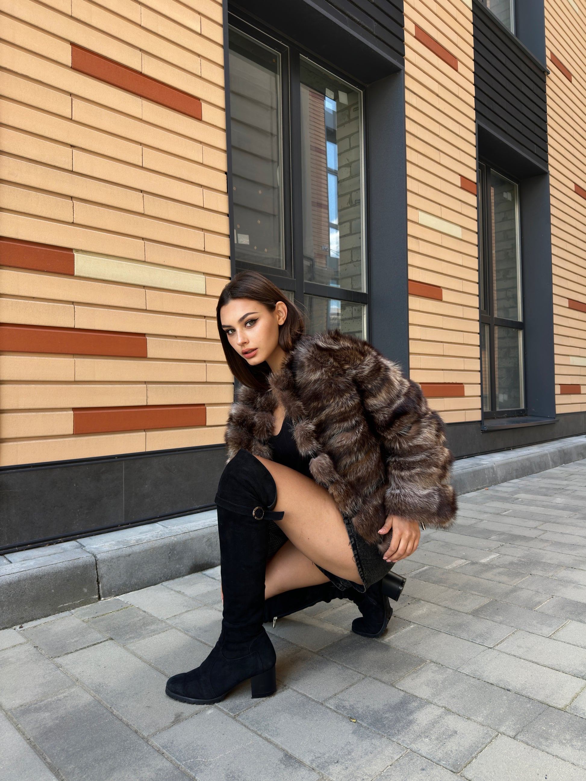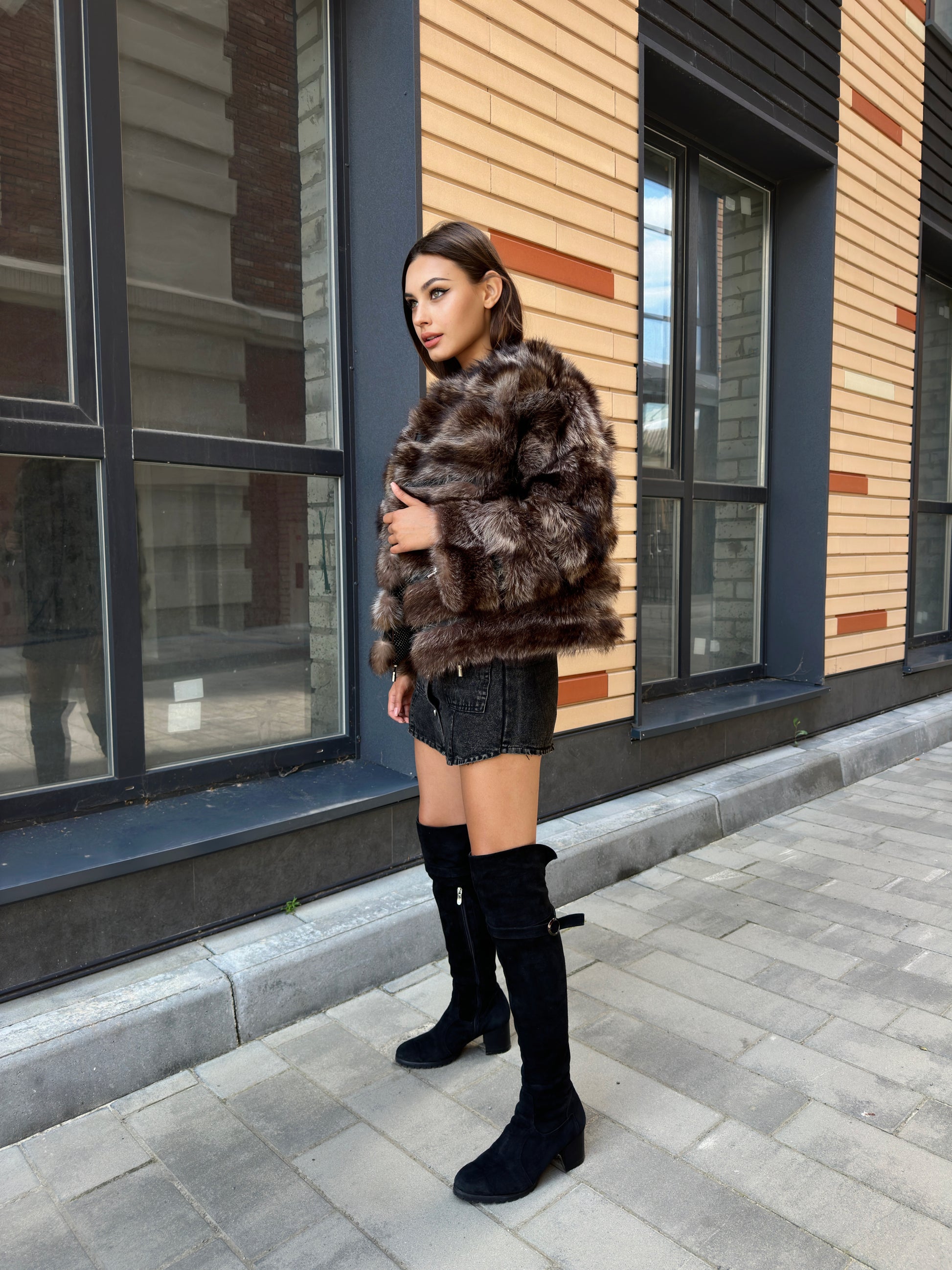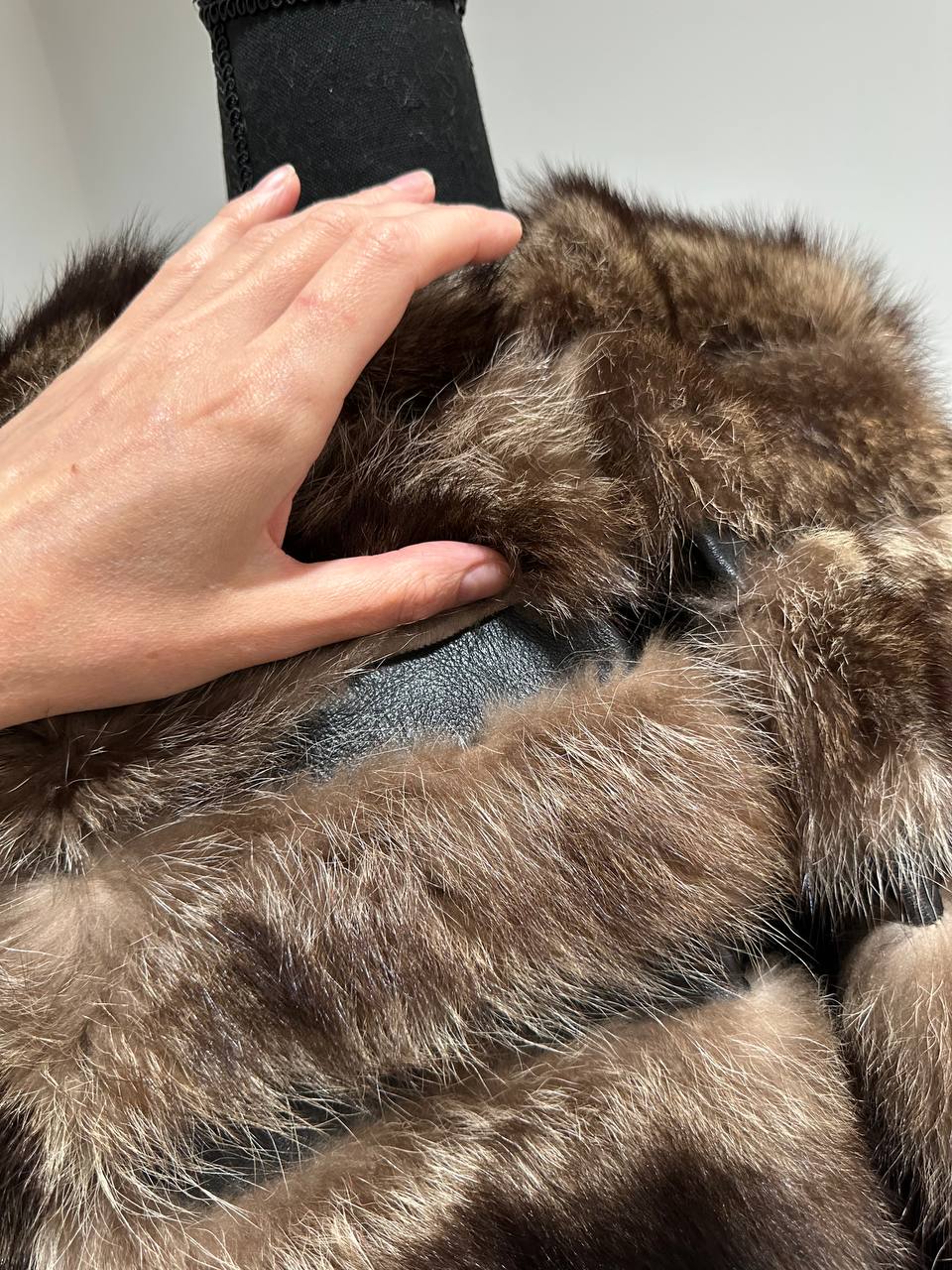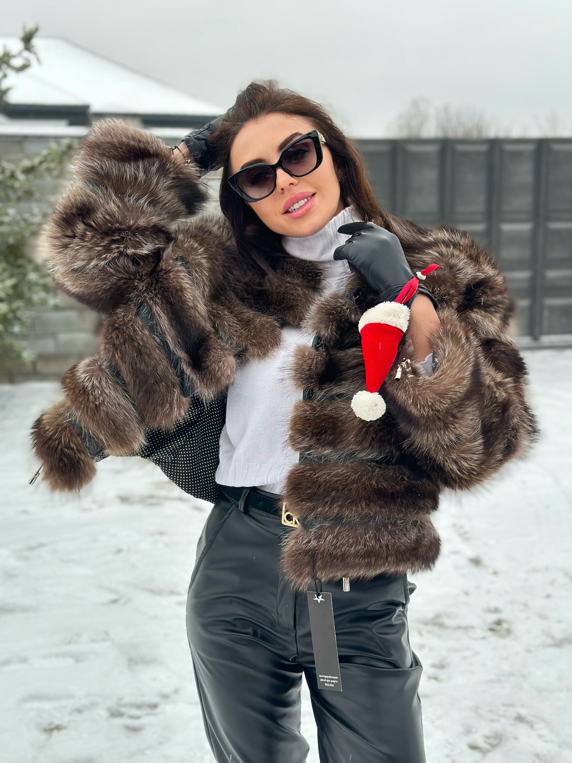 Women's fur coat made of natural raccoon fur natural color L size. Fur - fluffy, thick, warm, soft, shiny pile. The laying of the fur is horizontal, between the fur is genuine black leather. The model is a bomber jacket, on the bottom there is a drawstring. Also, the sleeves have a drawstring, you can adjust the width of the sleeve. There are 2 pockets. Fastens with hooks. Viscose lining, soft to the touch. Ukrainian manufacturer.