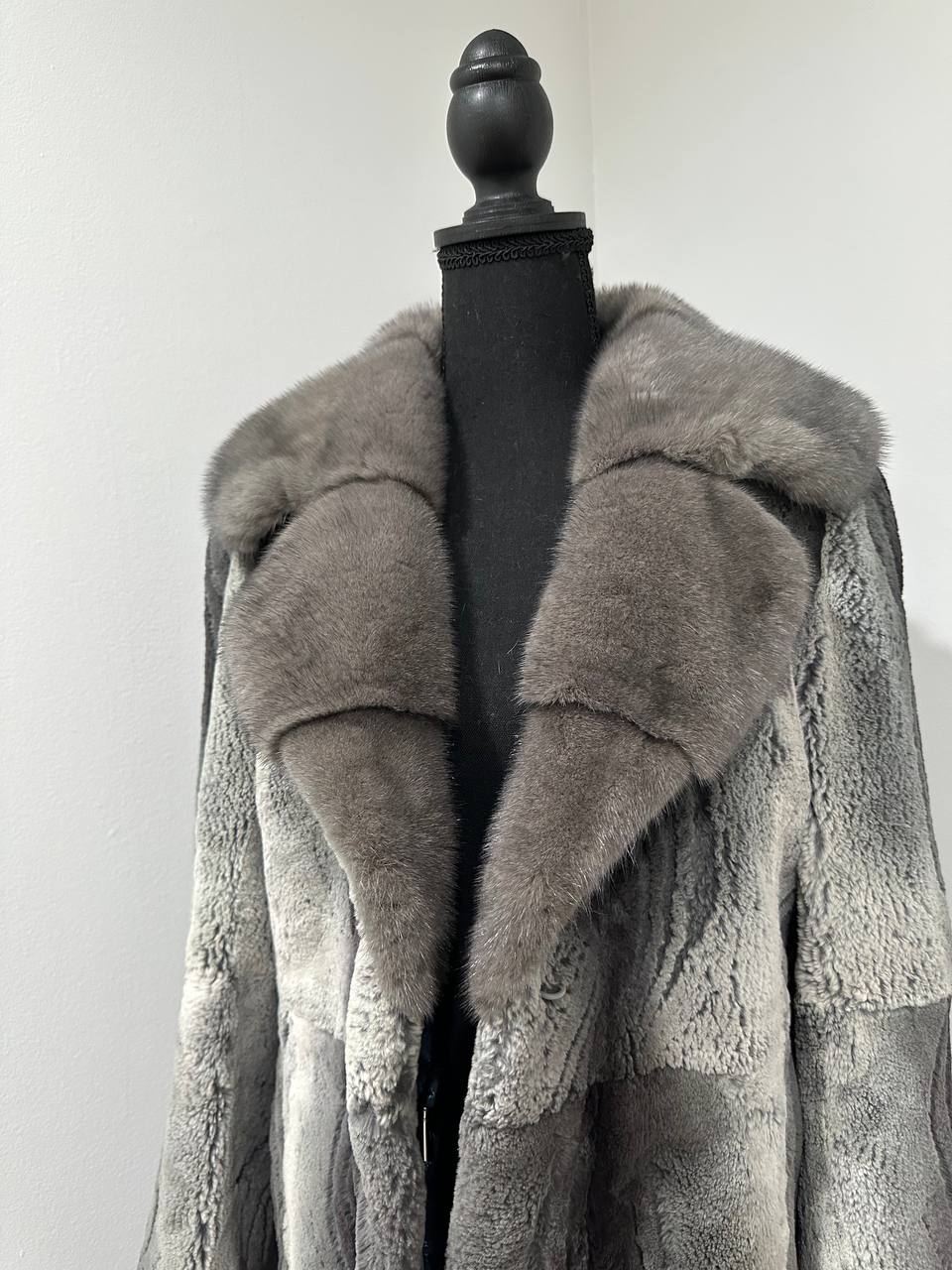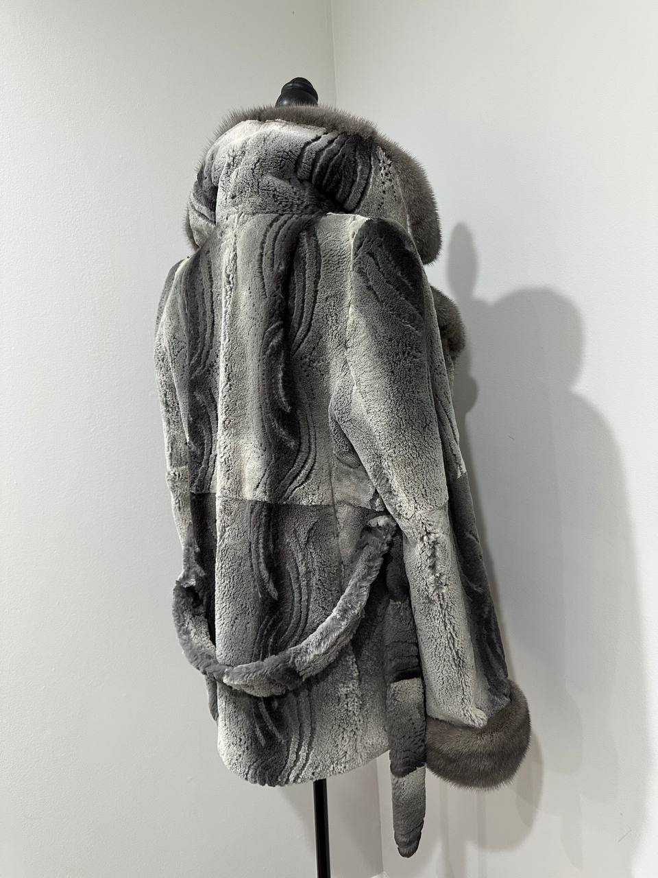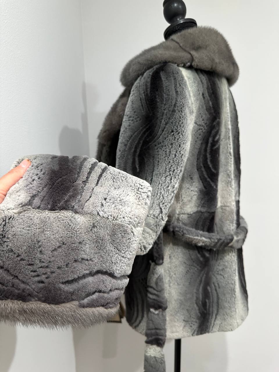 Stunning Karakul Astrakhan Fur Jacket M size with Mink Fur Details 1201134 GREY