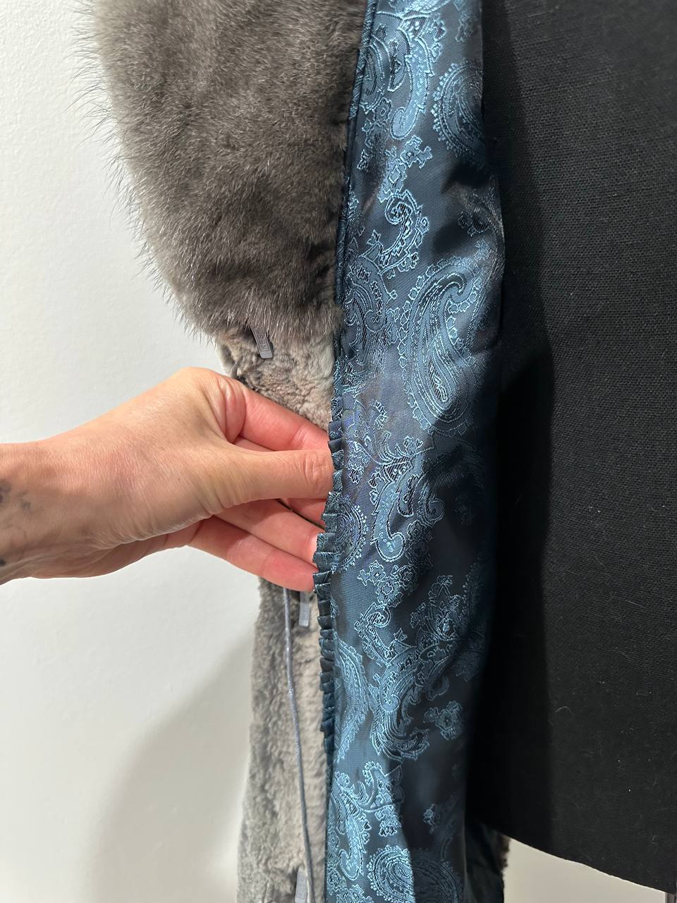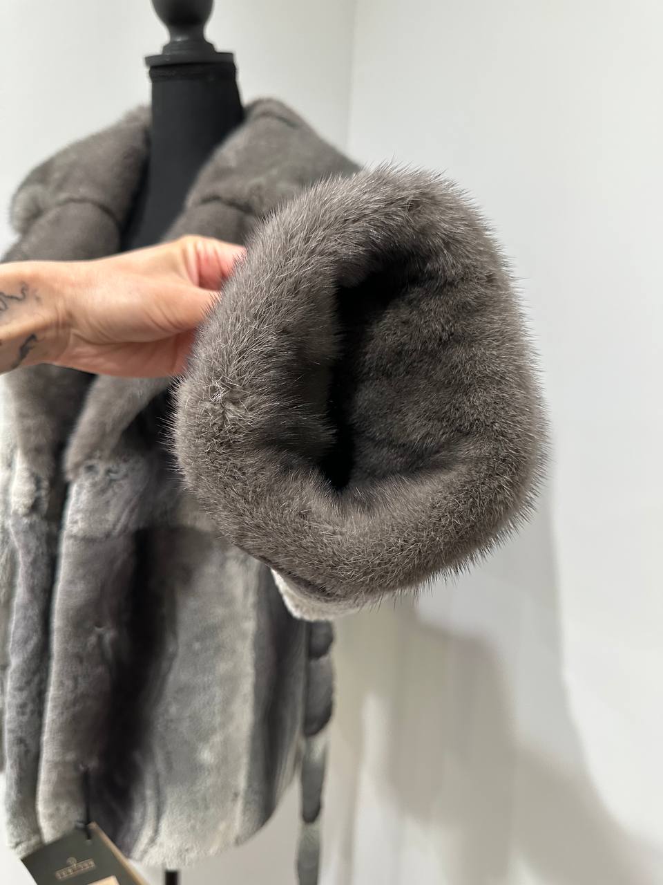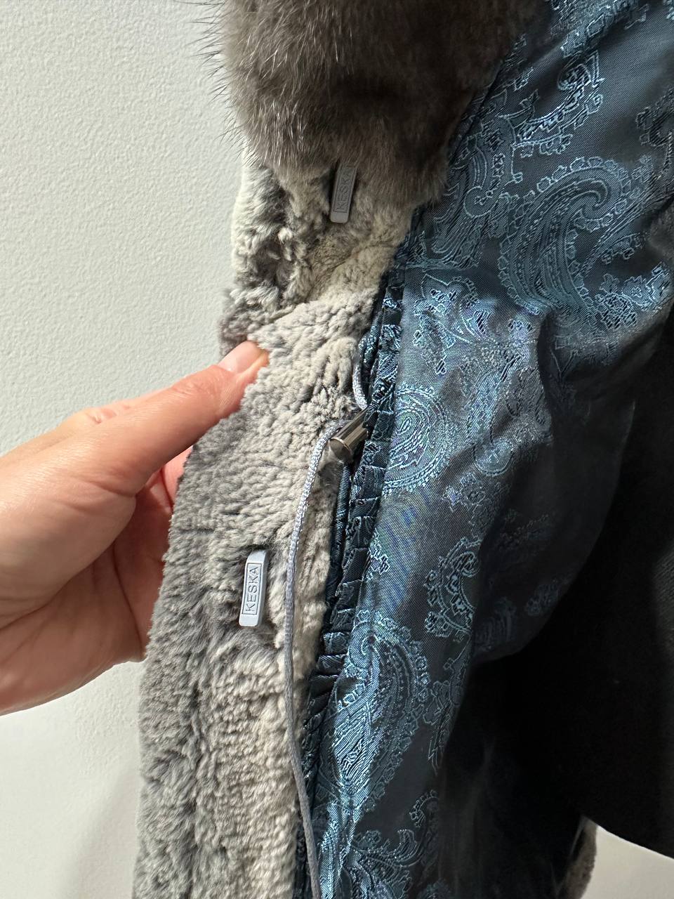 Stunning Karakul Astrakhan Fur Jacket M size with Mink Fur Details 1201134 GREY