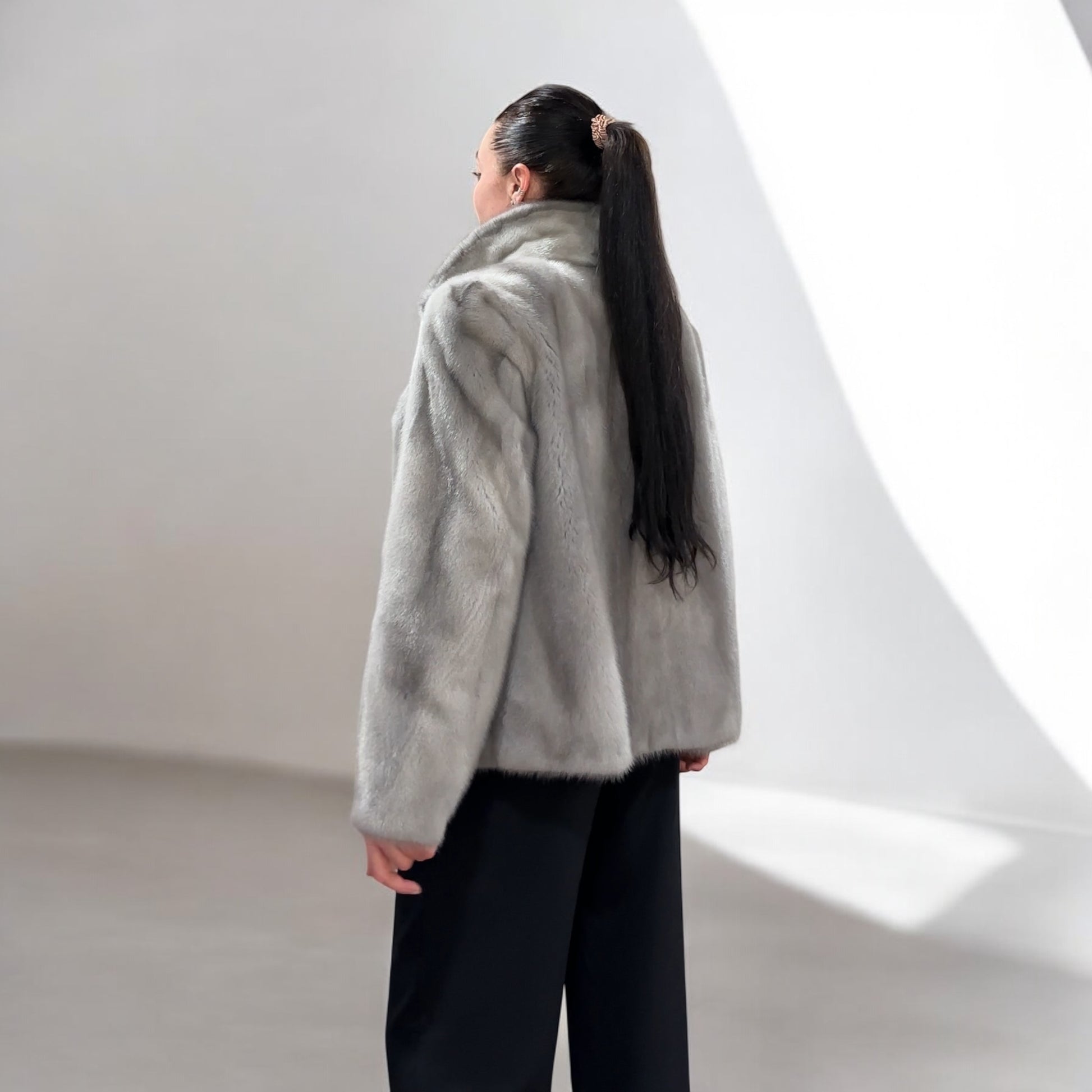 WOMEN New MINK FUR SHORT coat JACKET size M REAL FULL SKIN 1201120 GREY