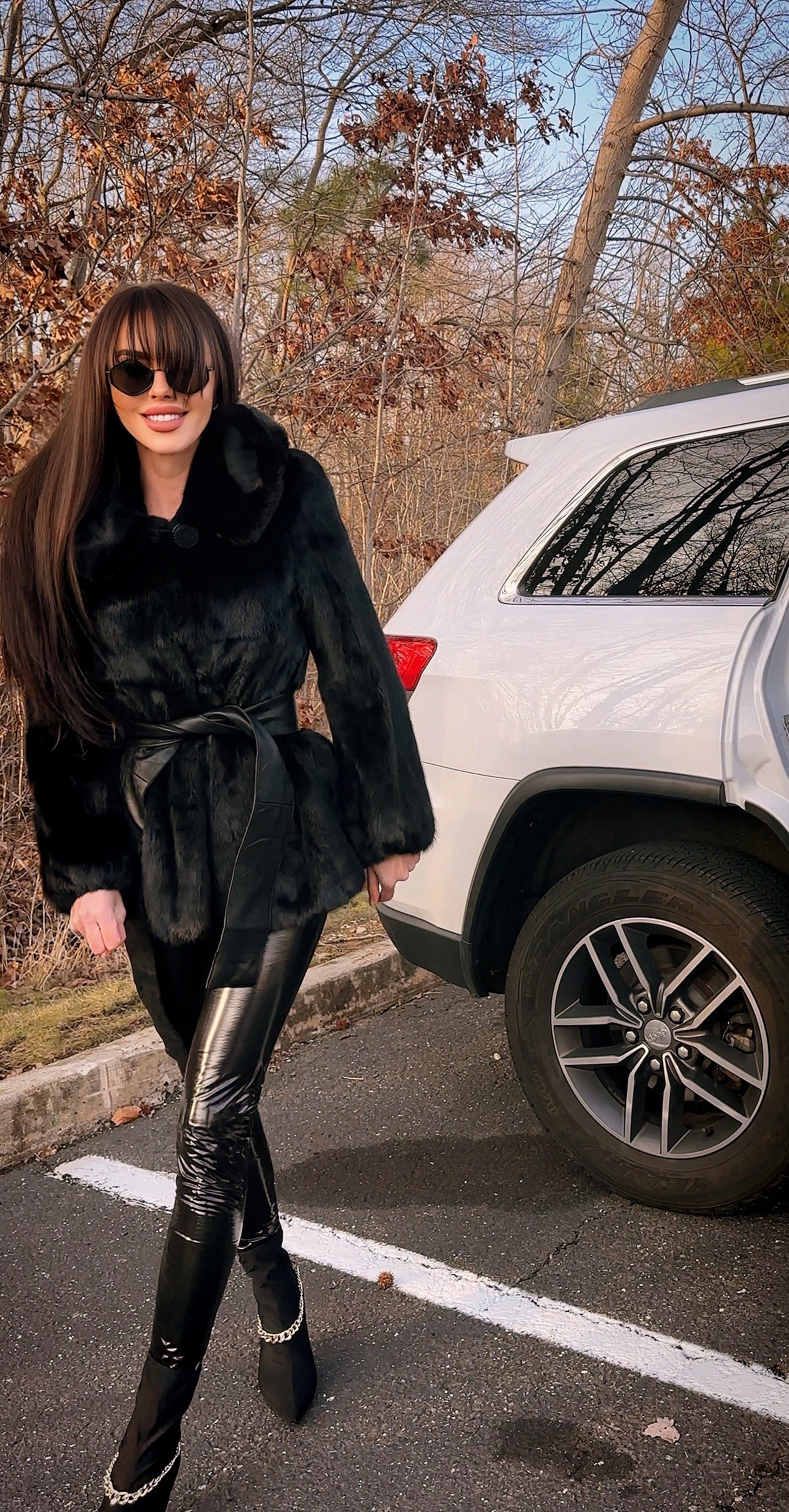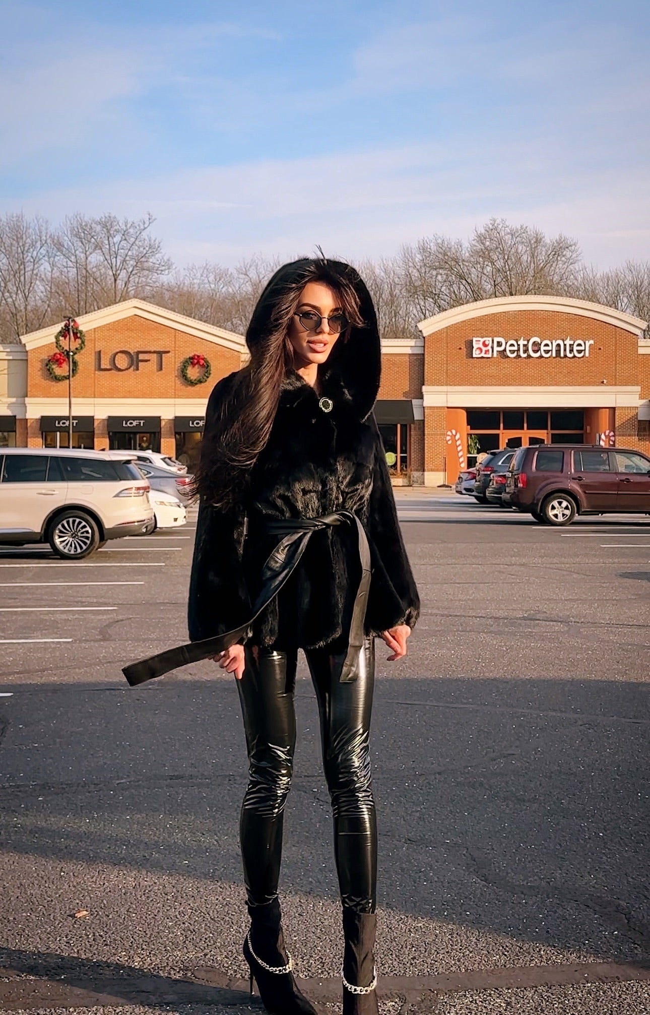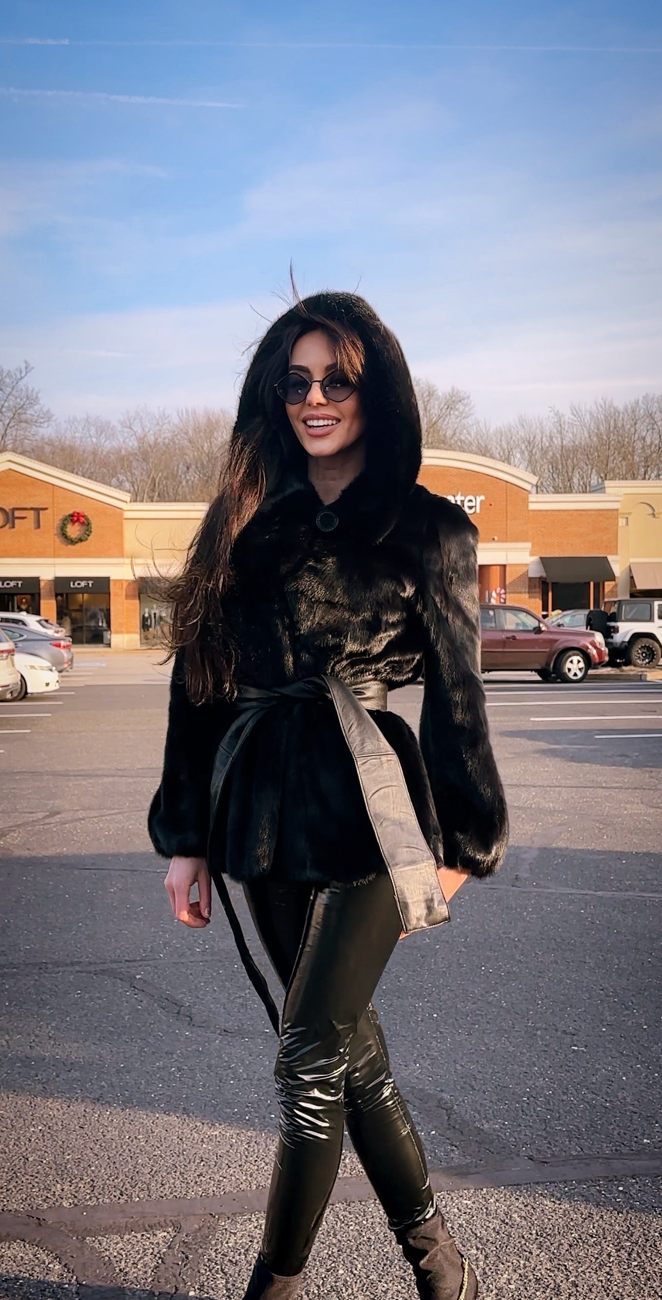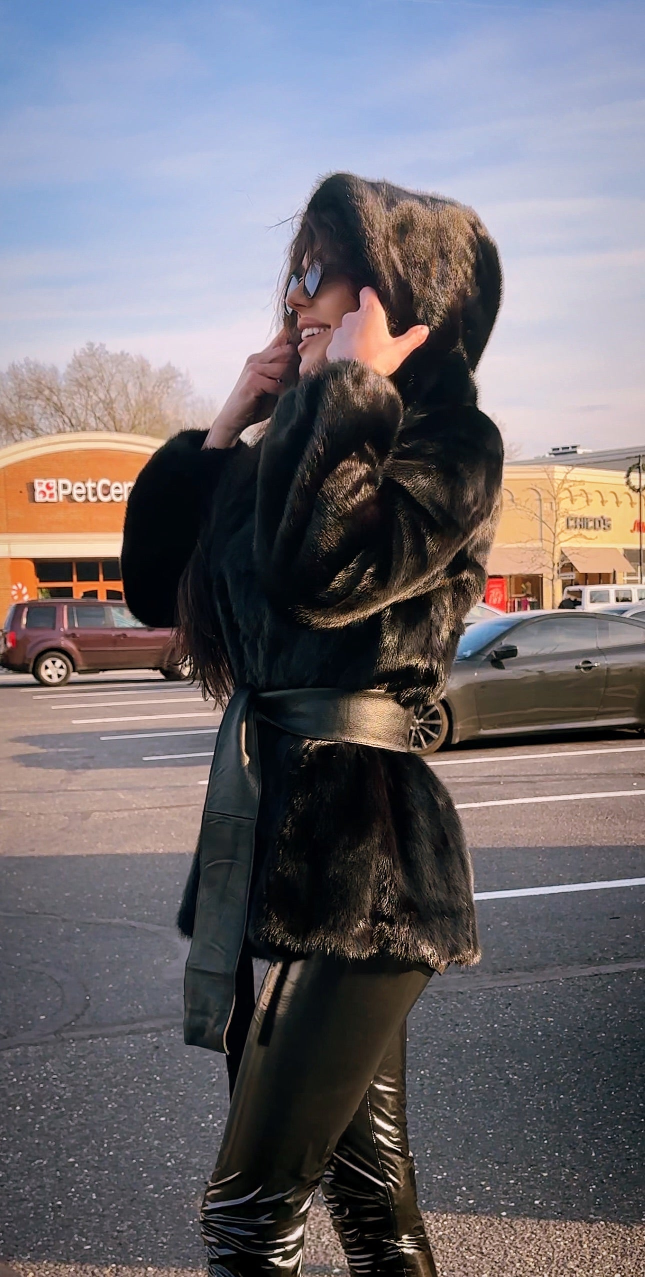 Women's mink fur coat with a hood size M. Color - deep BLACK, natural color. The sleeves are long. The fur is thick, fluffy, soft, shiny. There are 2 pockets. Fastens with hooks. Ukrainian manufacturer.