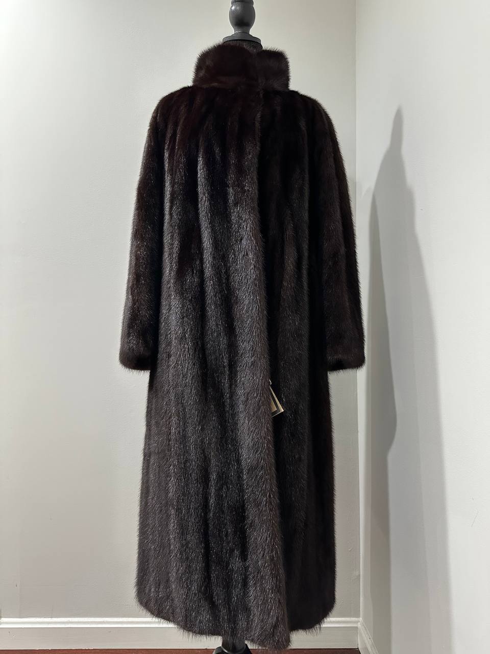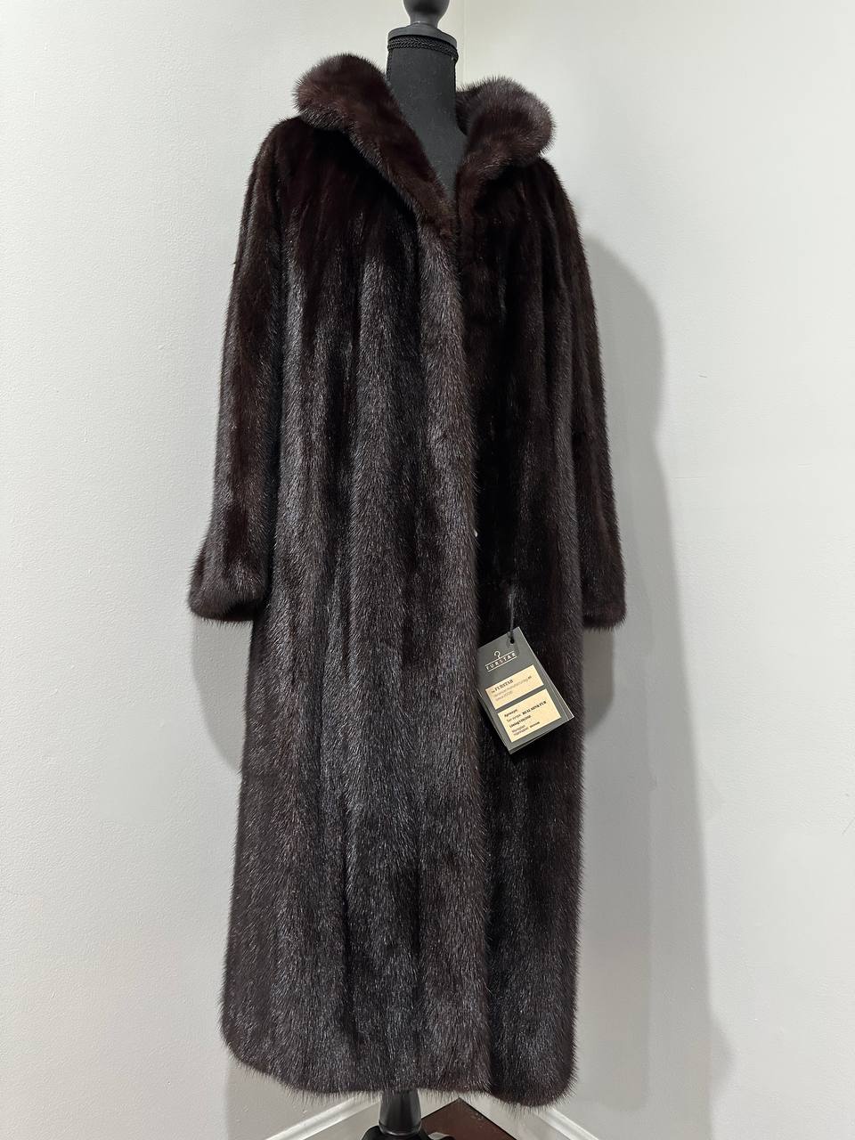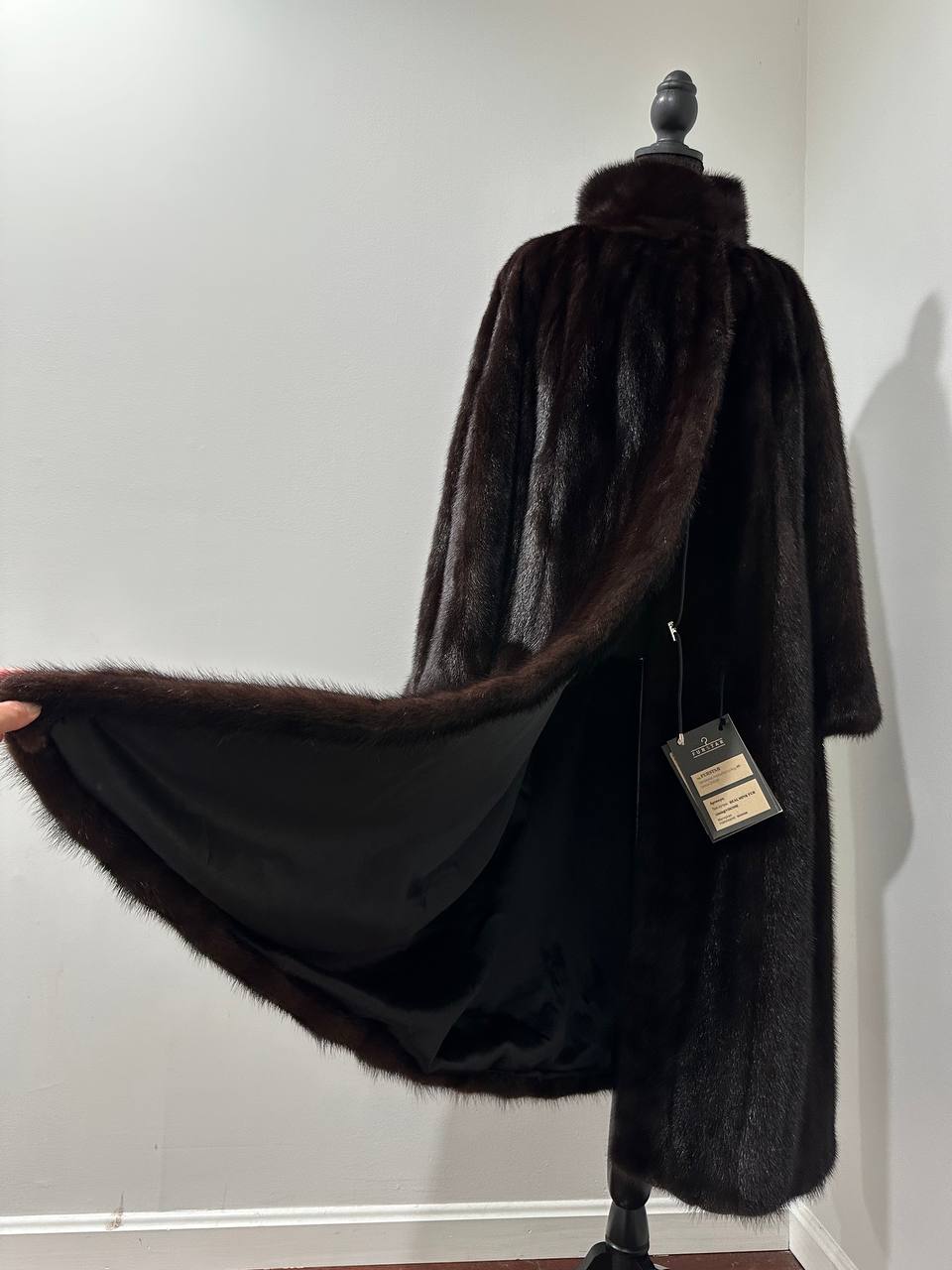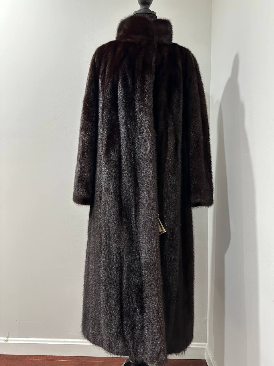 Women Real Mink Fur coat long dark brown color size 2XL NEW 1109961 FURSTAR
