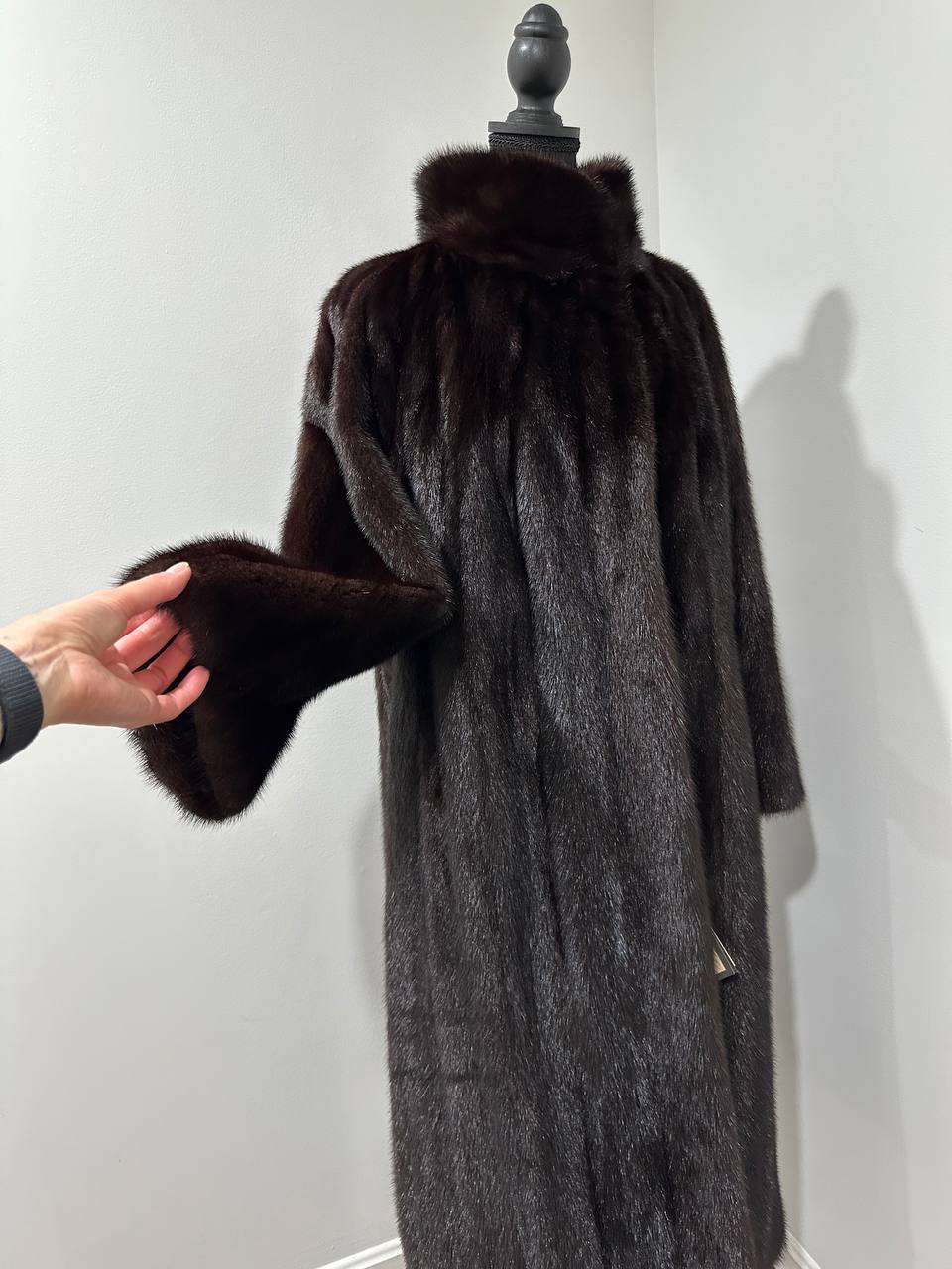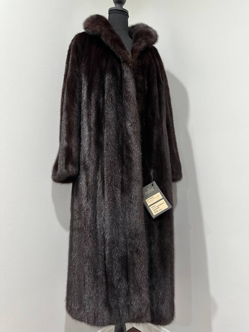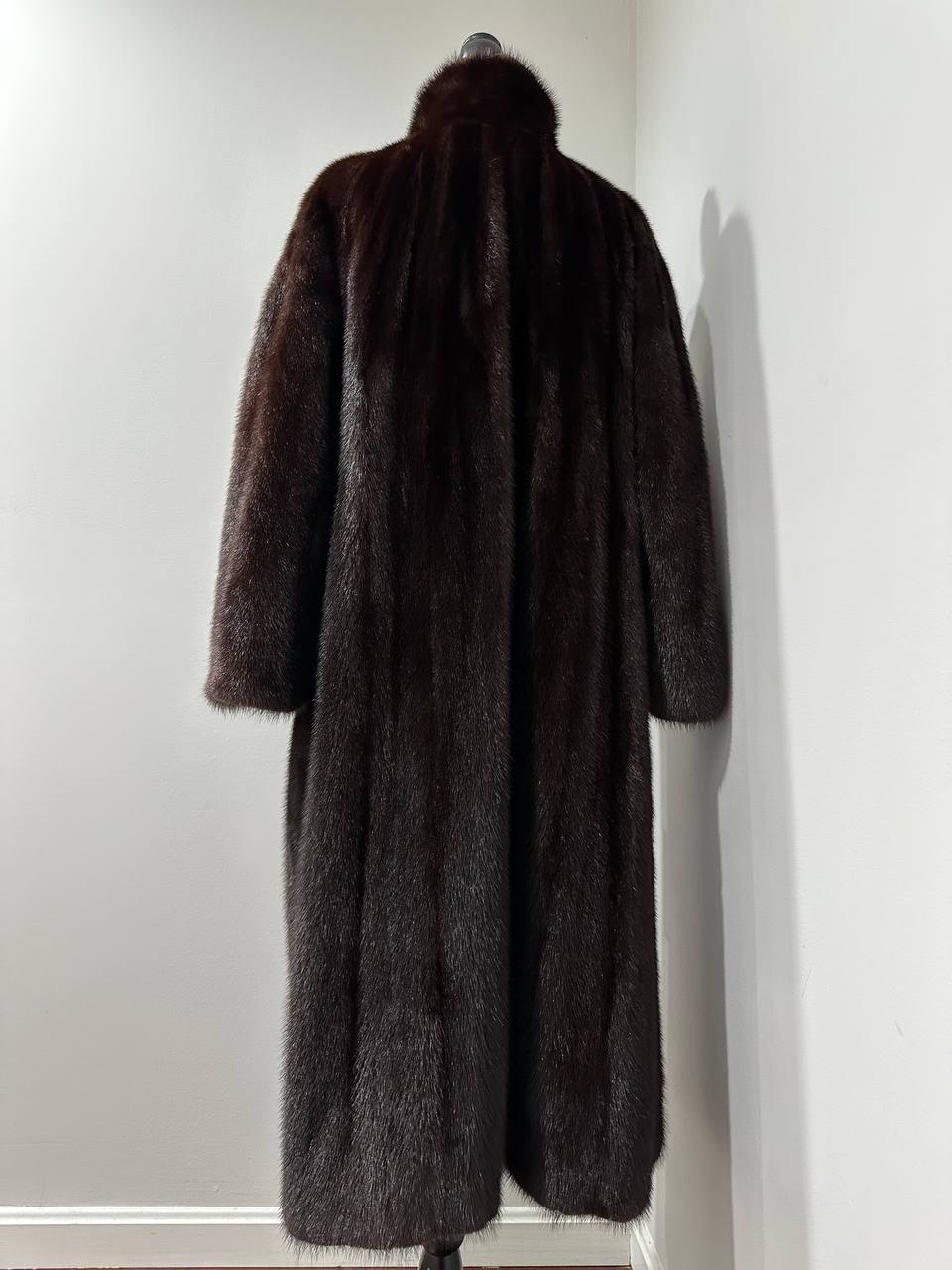 Women Real Mink Fur coat long dark brown color size 2XL NEW 1109961 FURSTAR