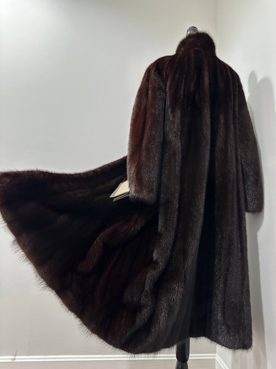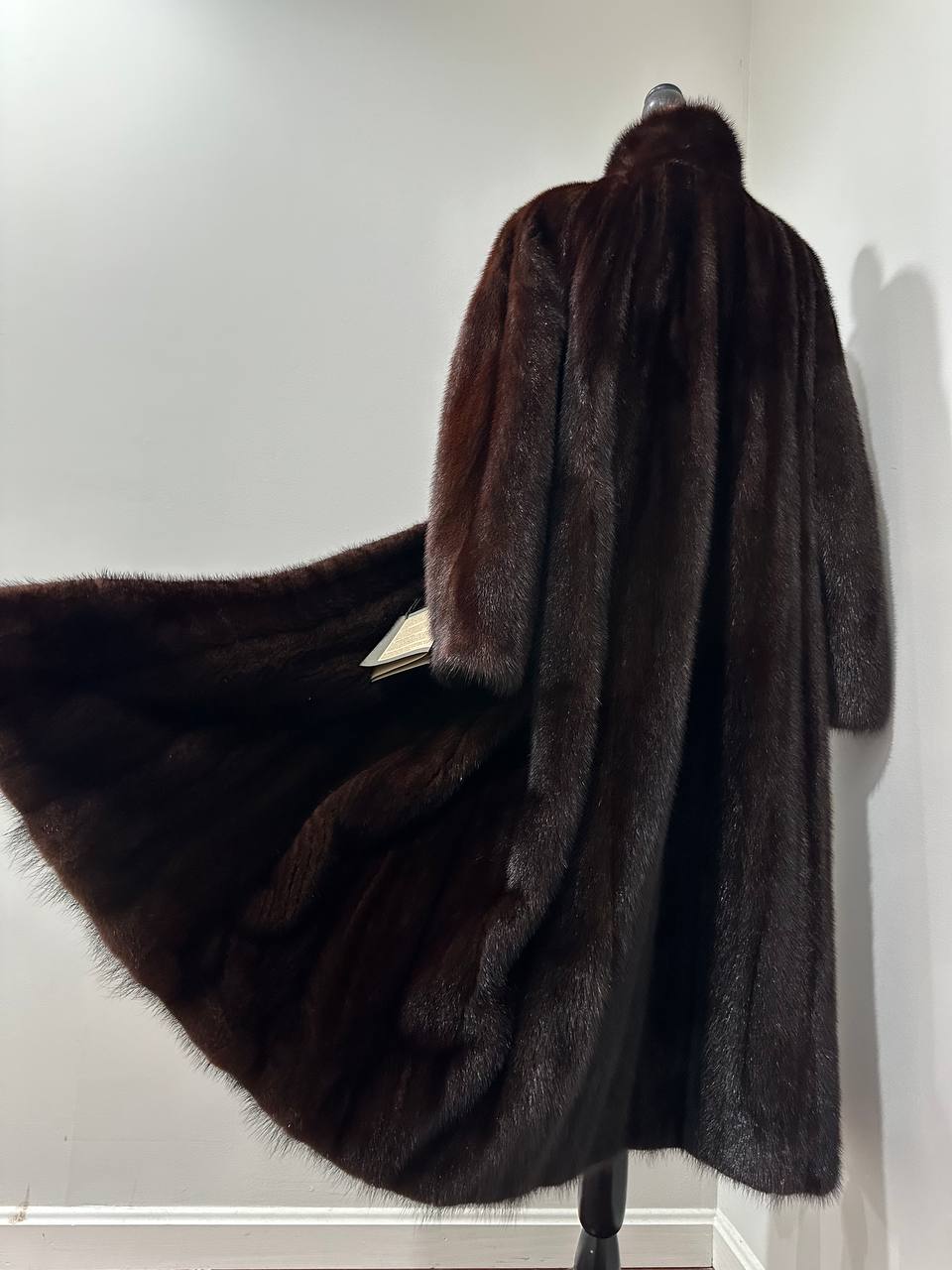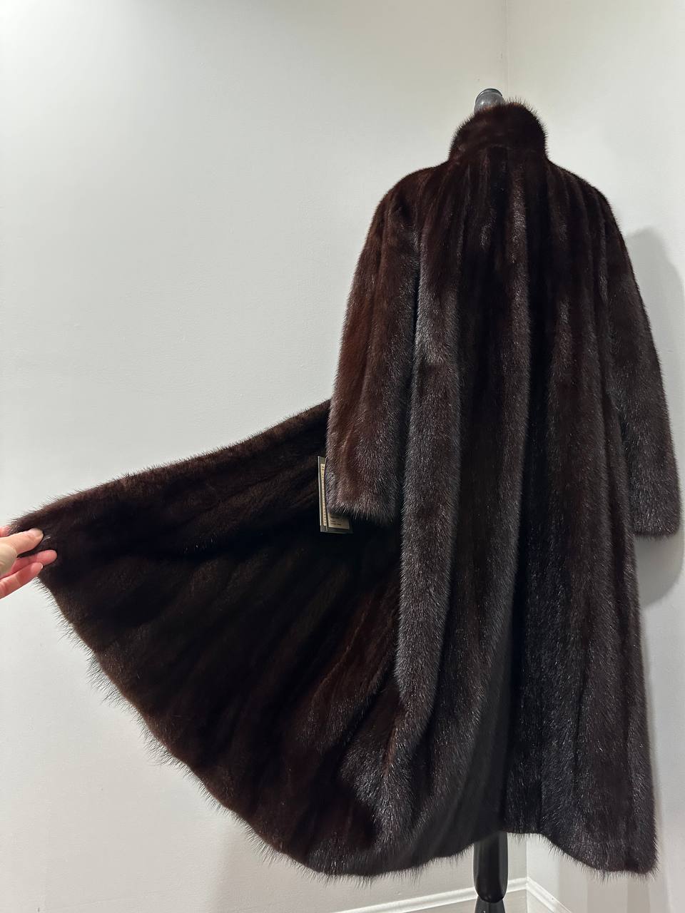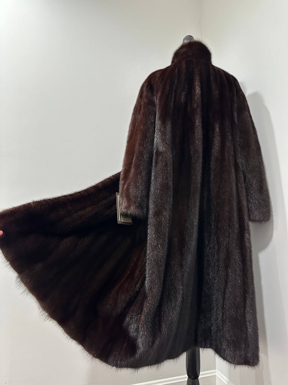 Women Real Mink Fur coat long dark brown color size 2XL NEW 1109961 FURSTAR
