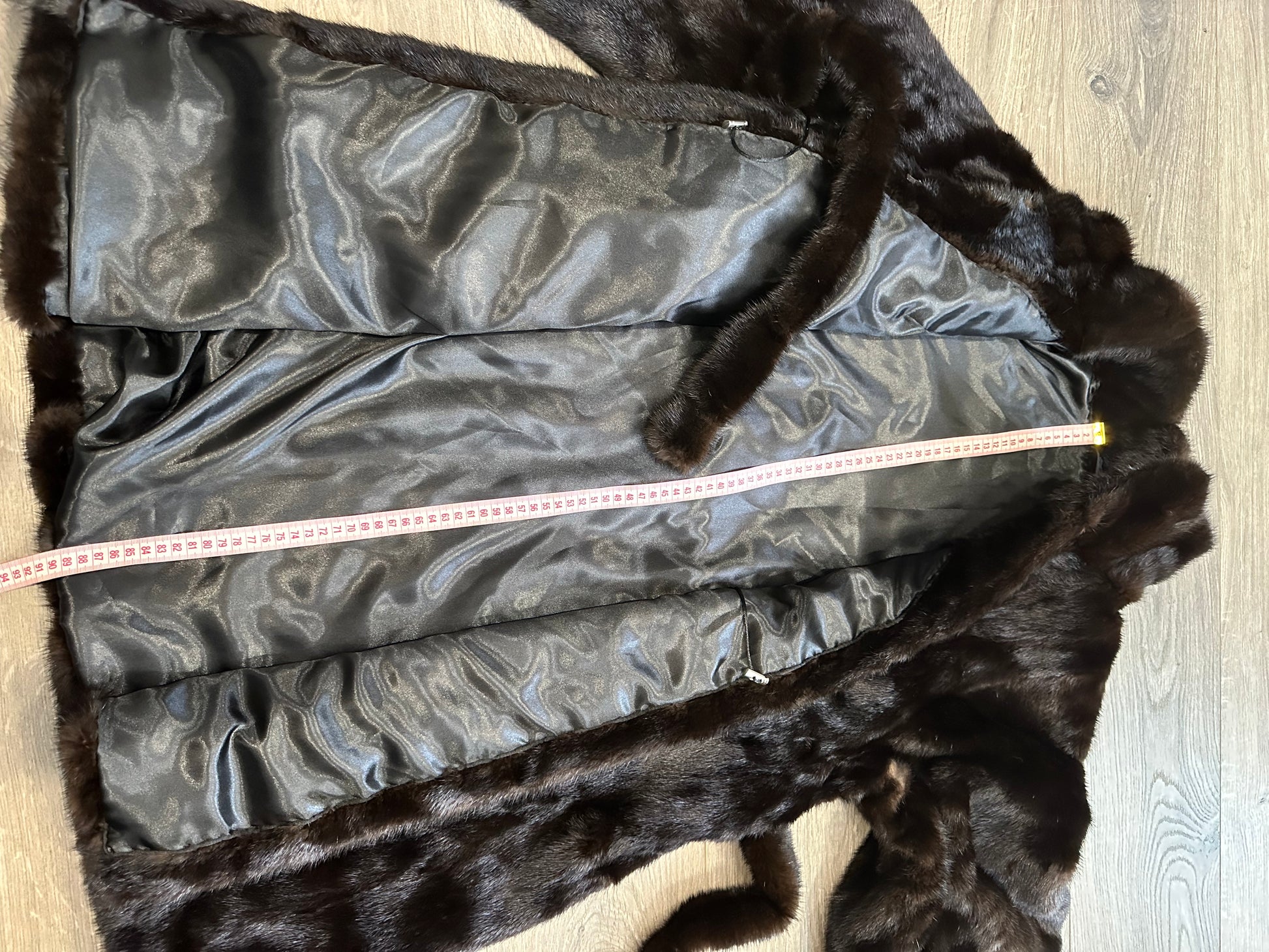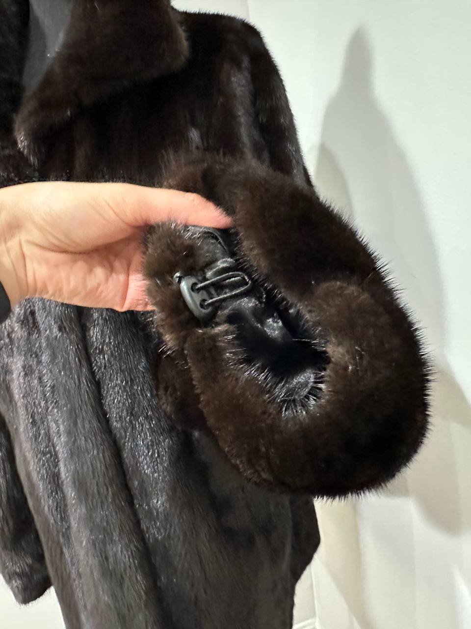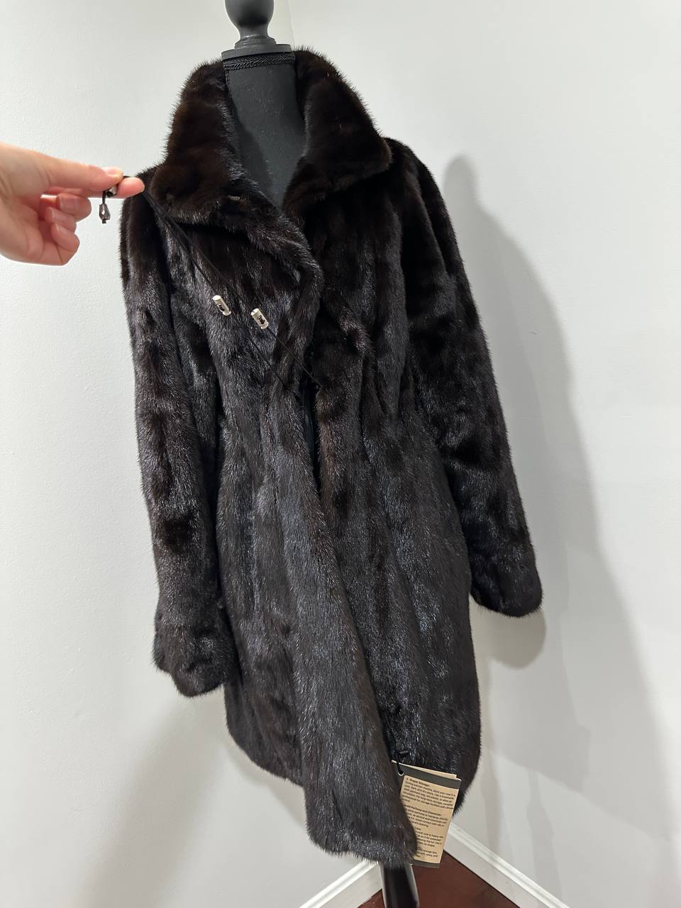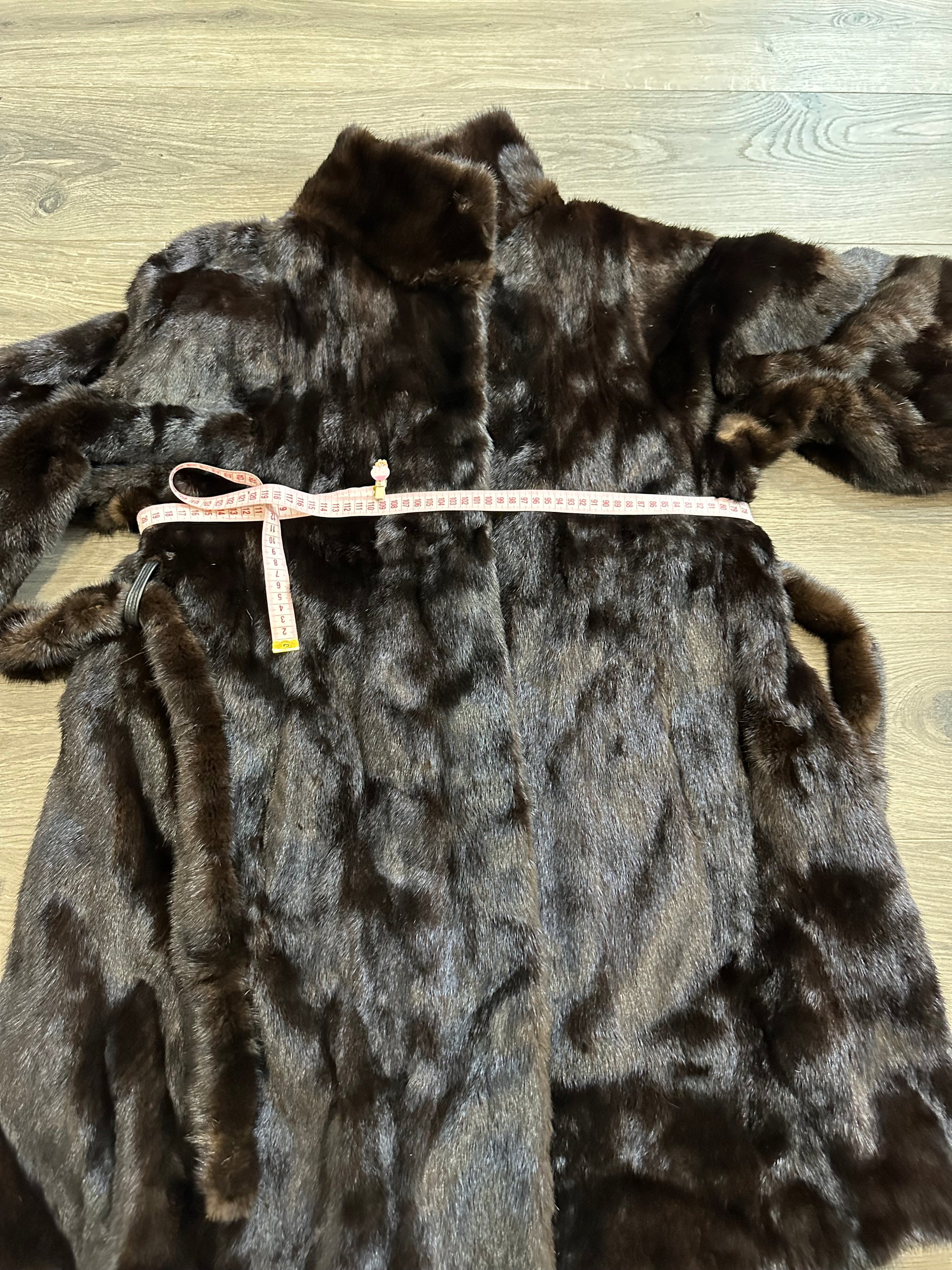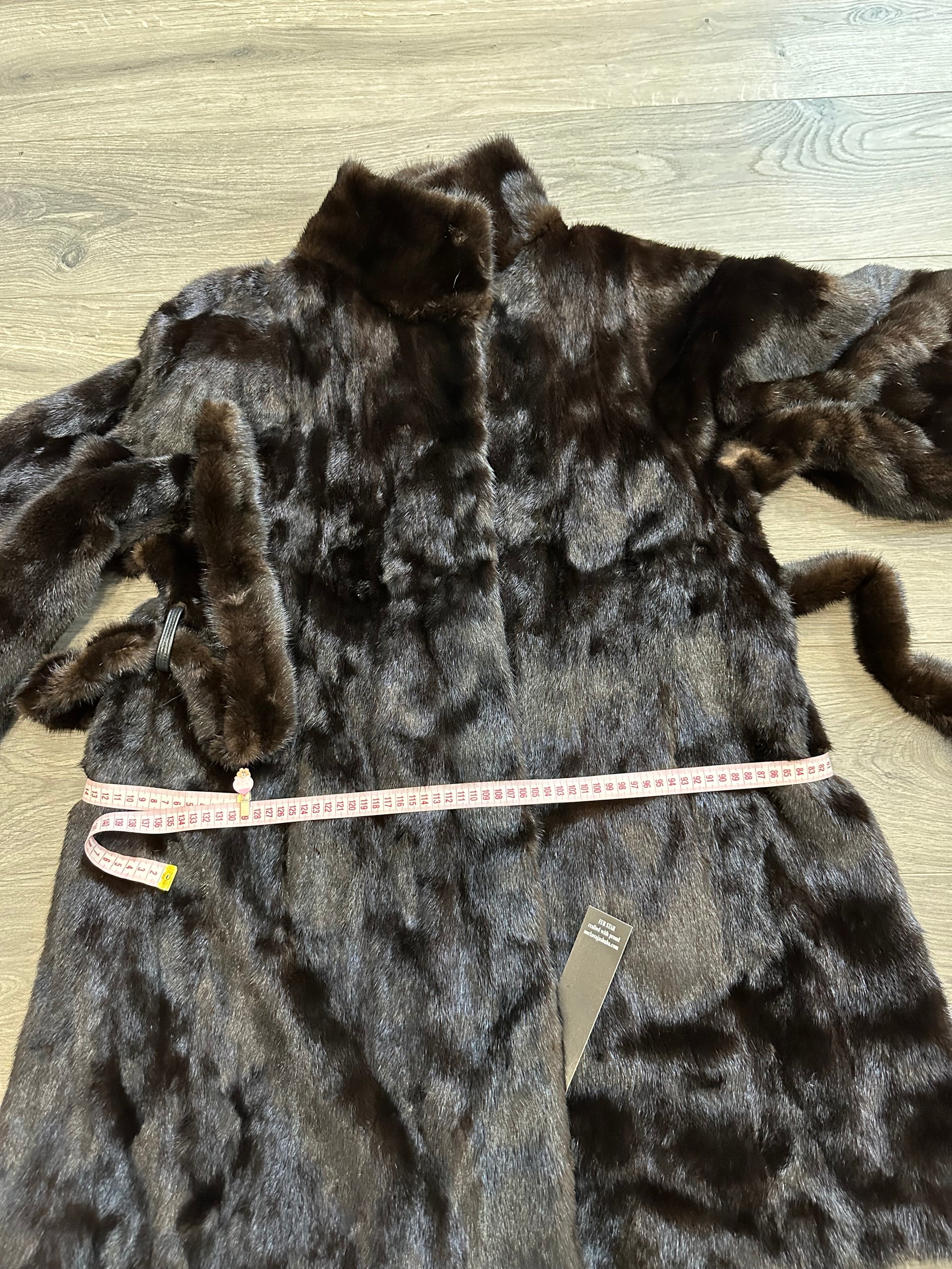 women real mink fur coat with belt dark brown color size L NEW!!! 1109927