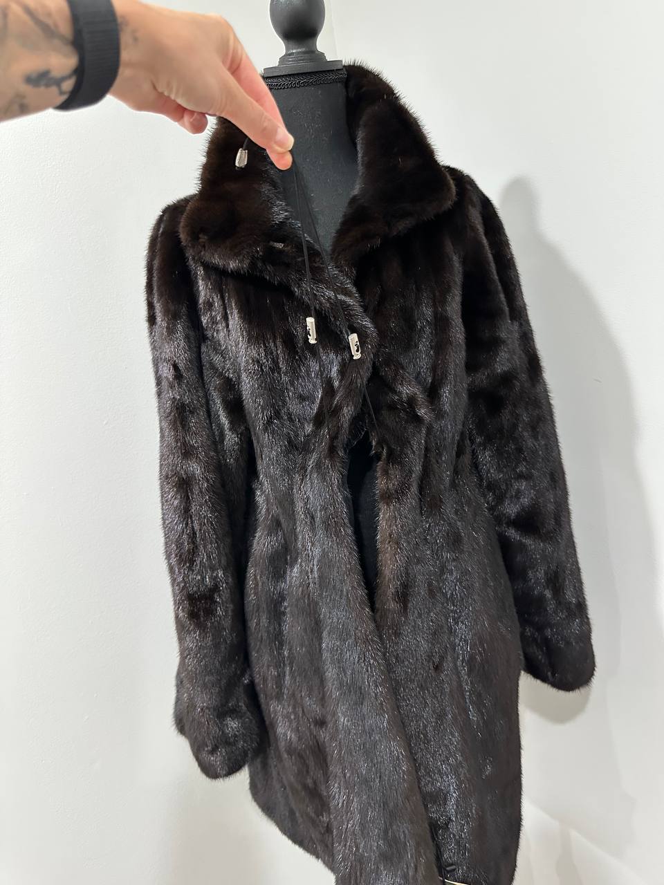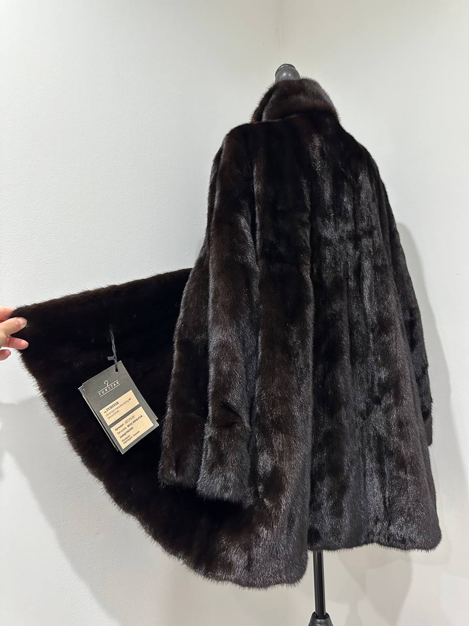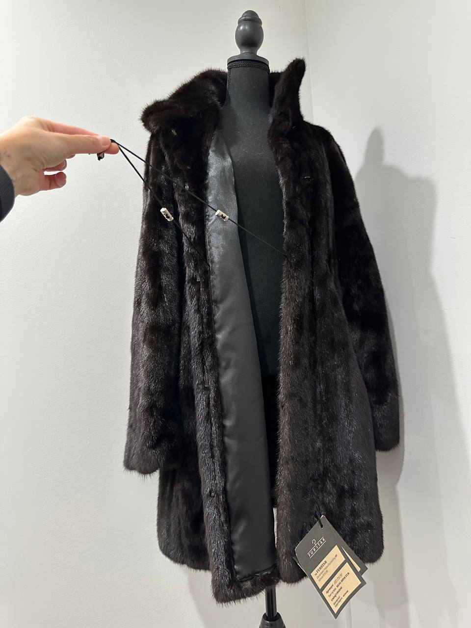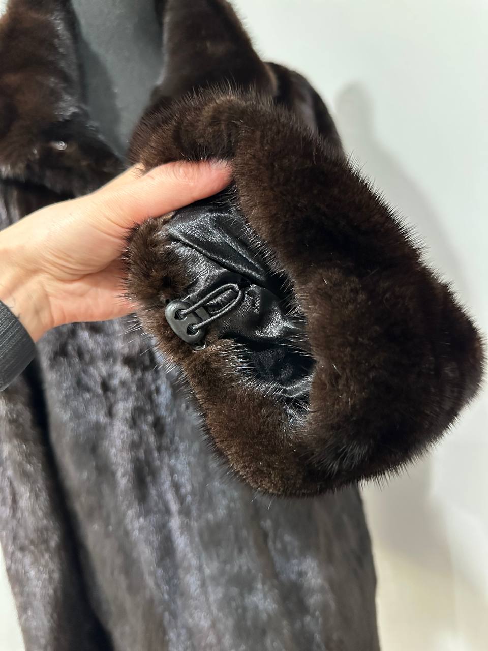 women real mink fur coat with belt dark brown color size L NEW!!! 1109927
