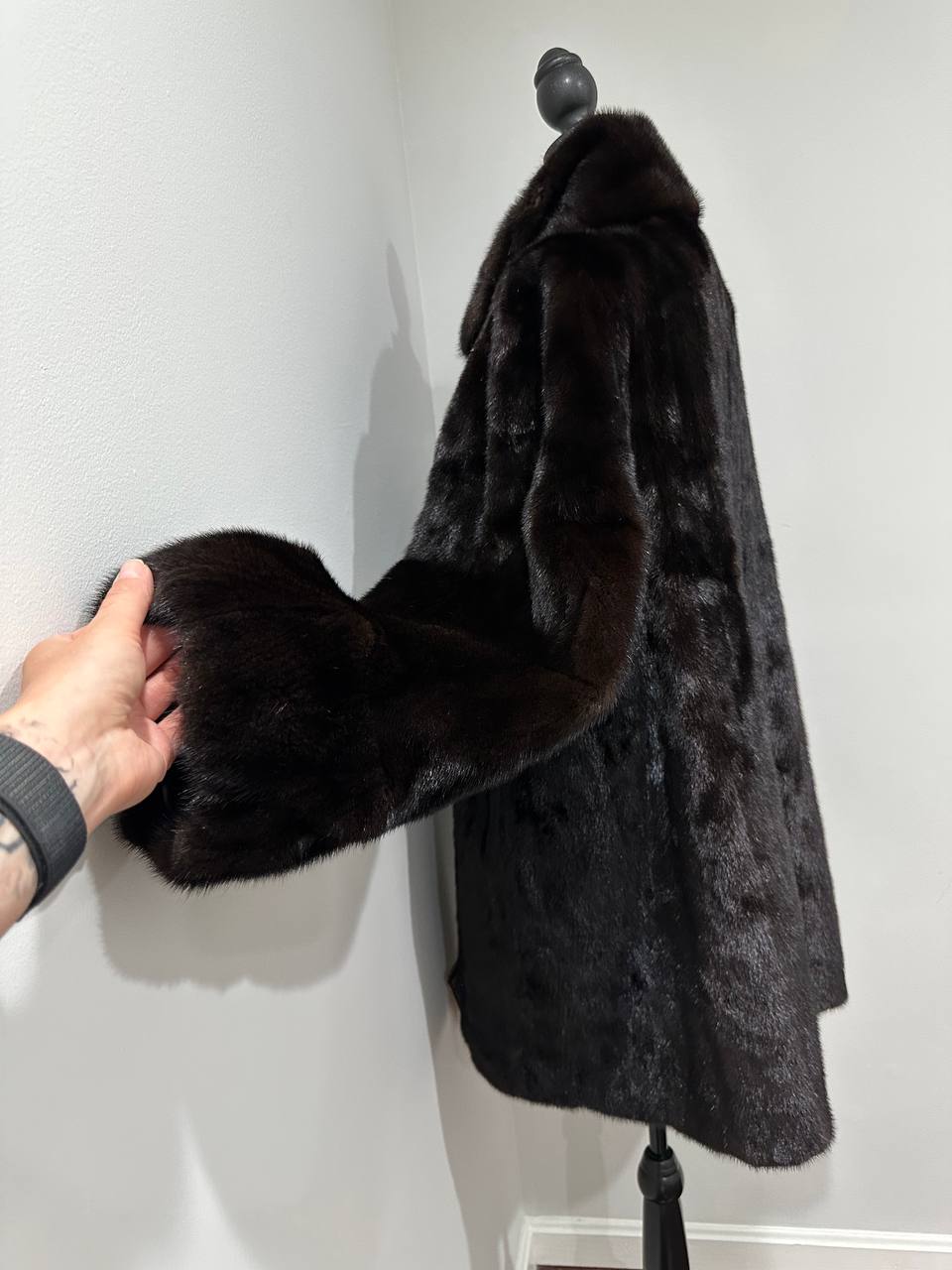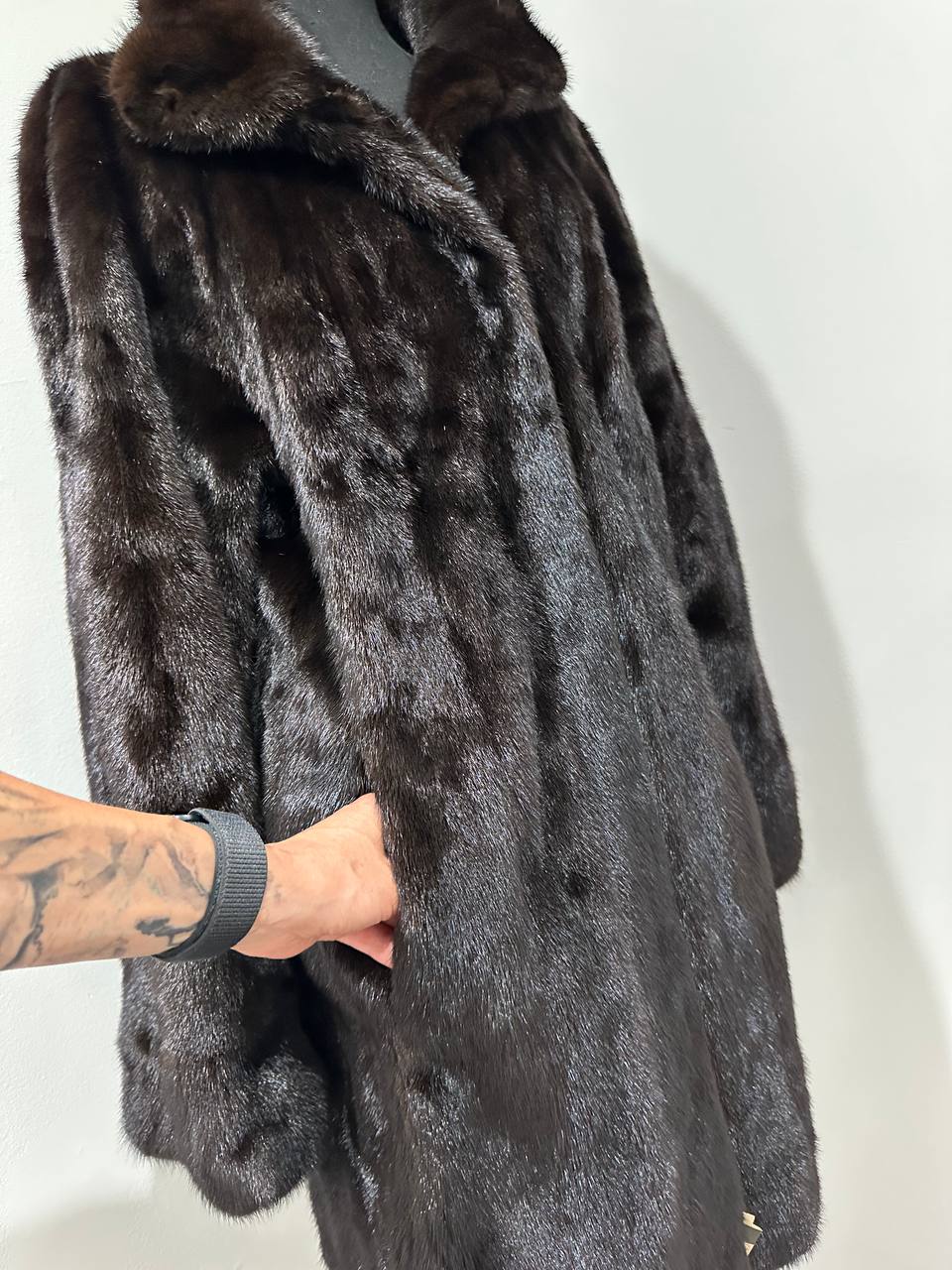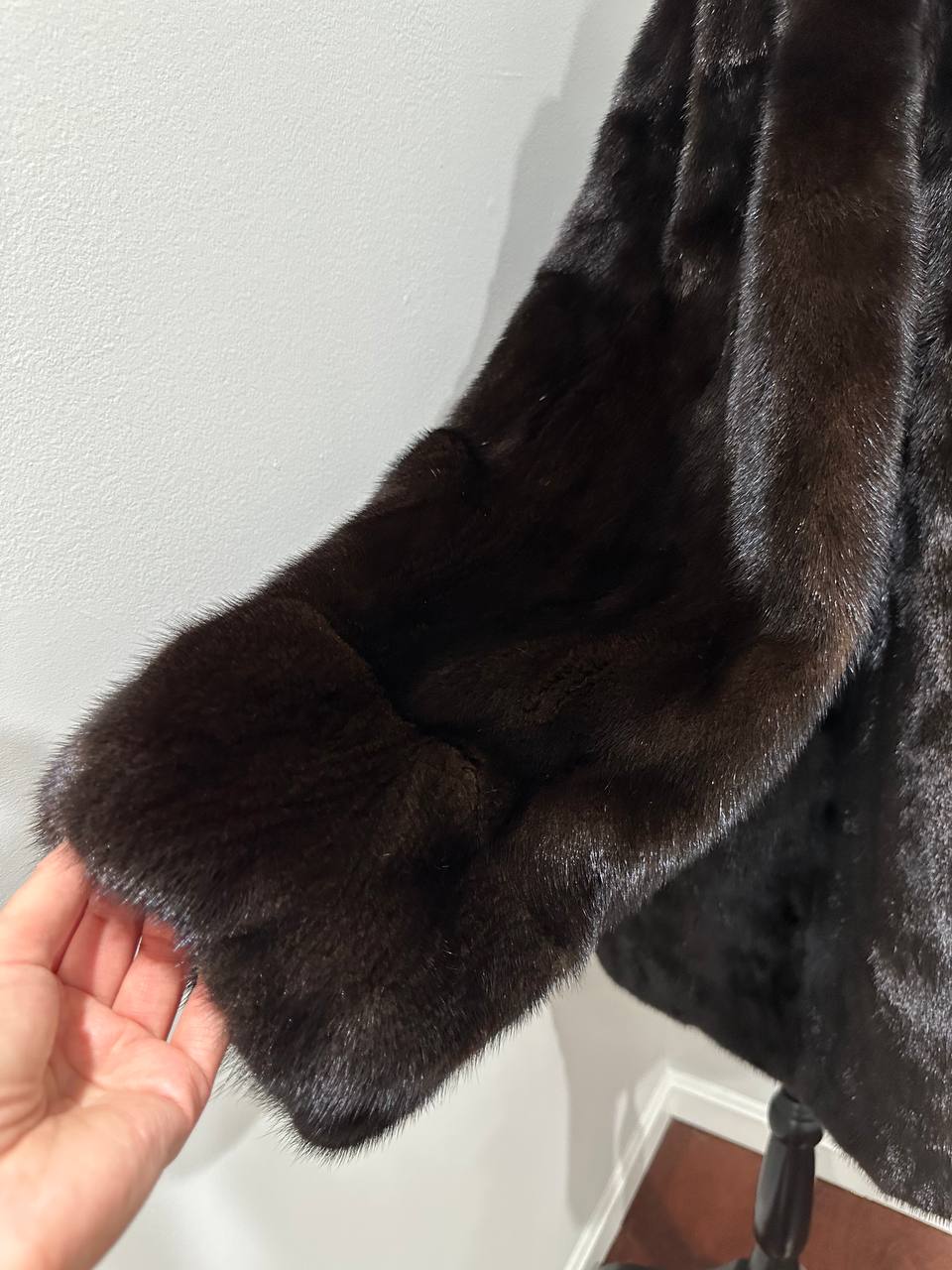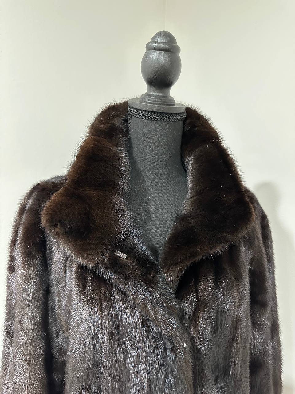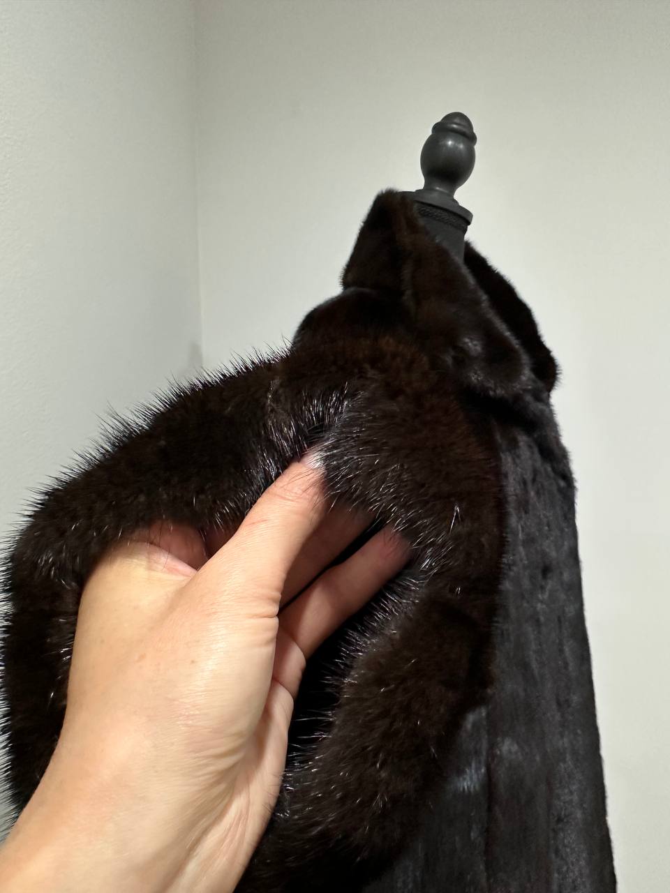 women real mink fur coat with belt dark brown color size L NEW!!! 1109927