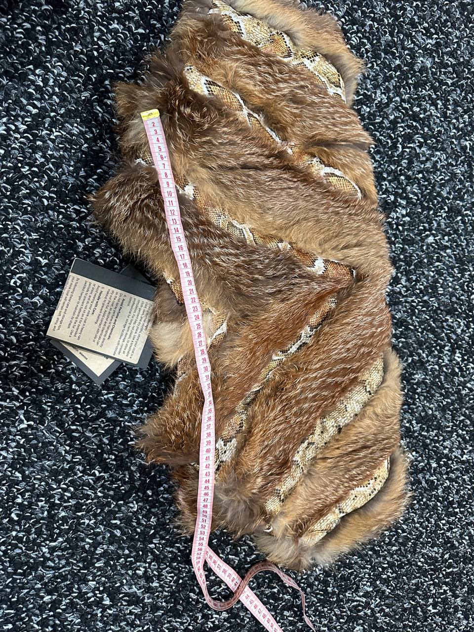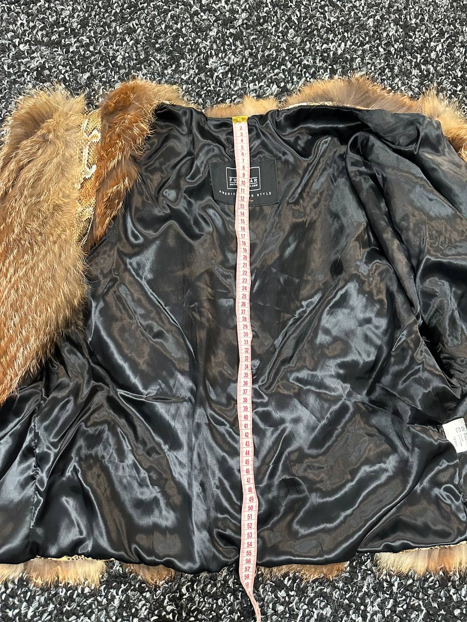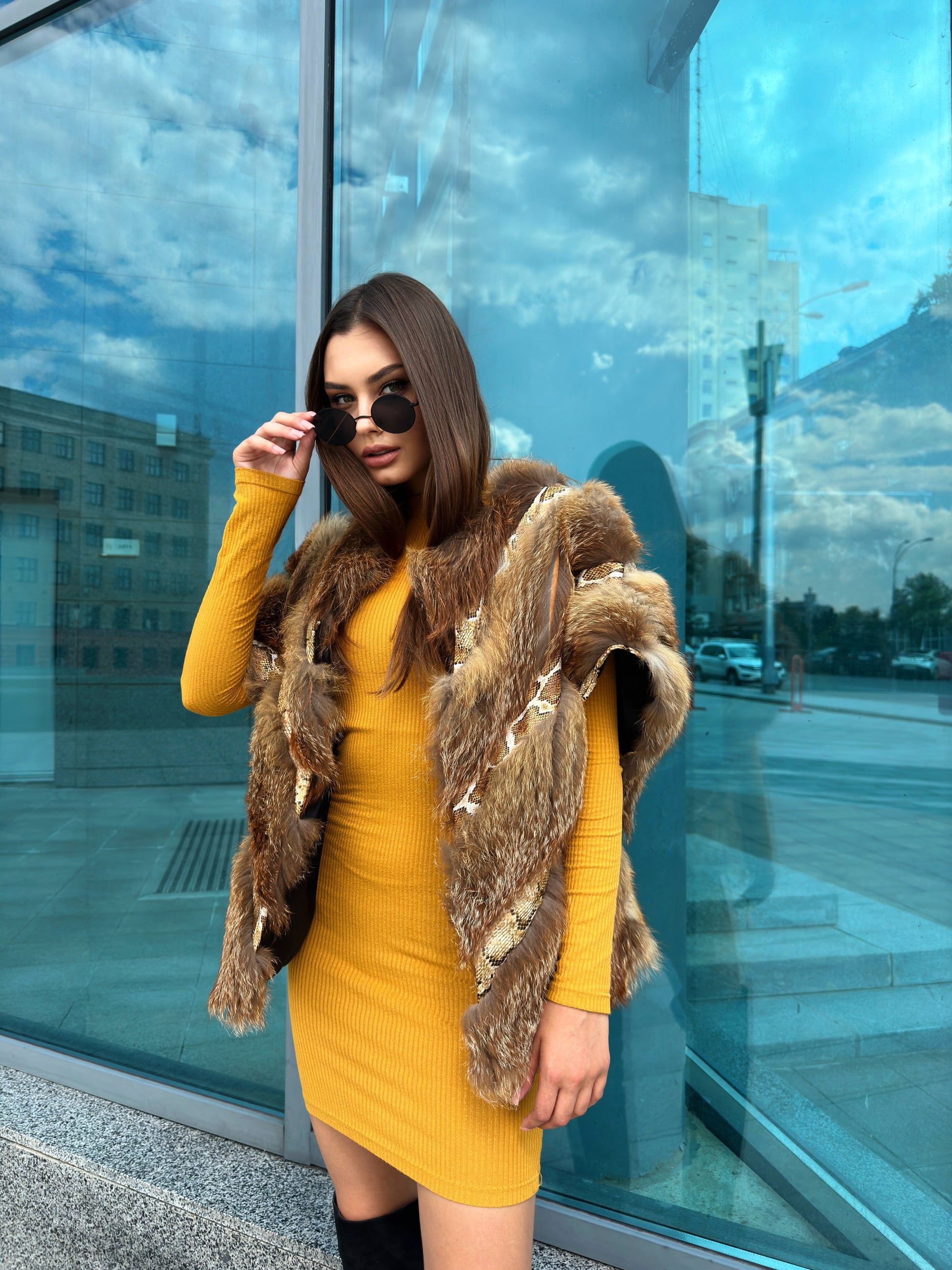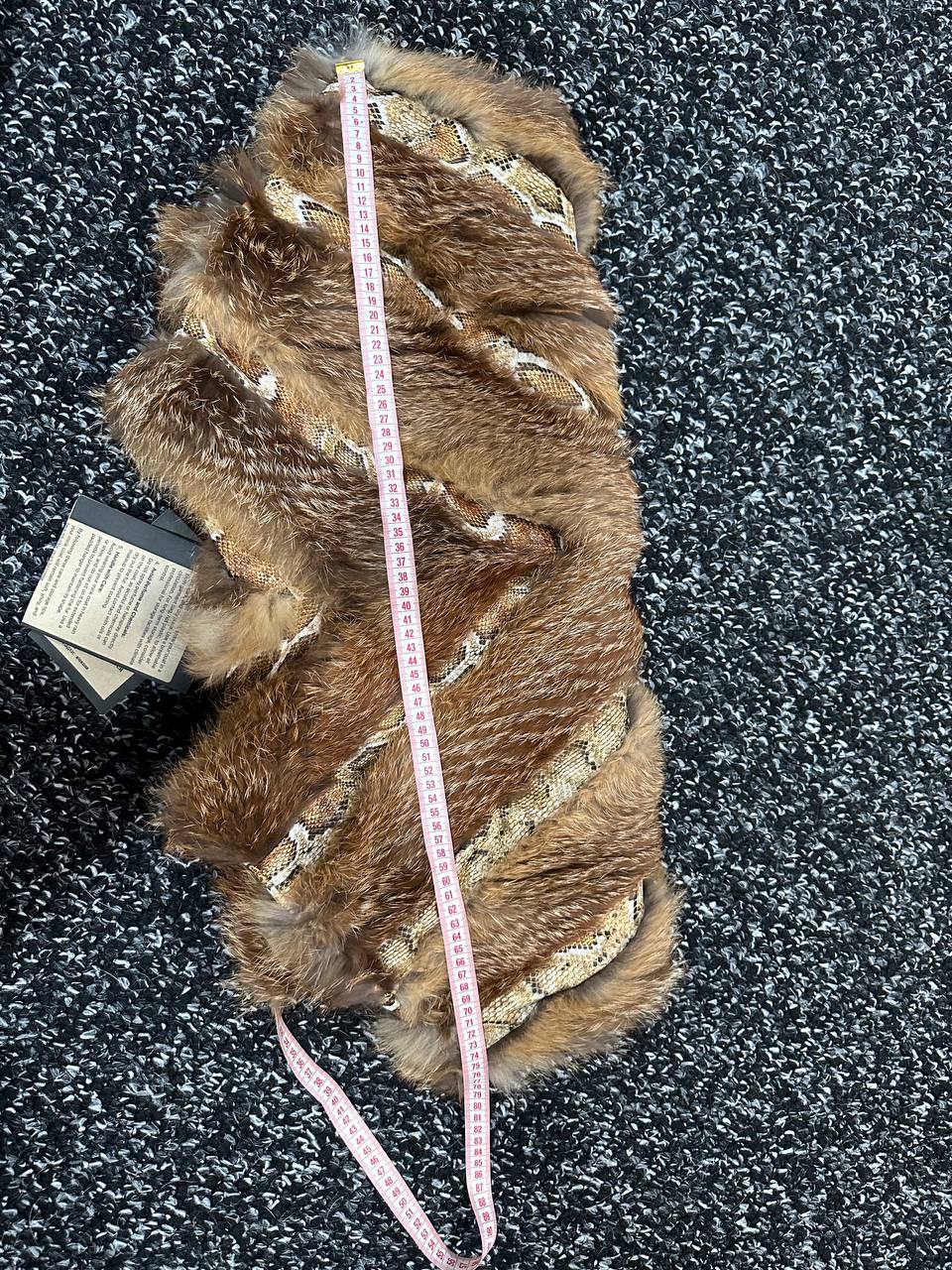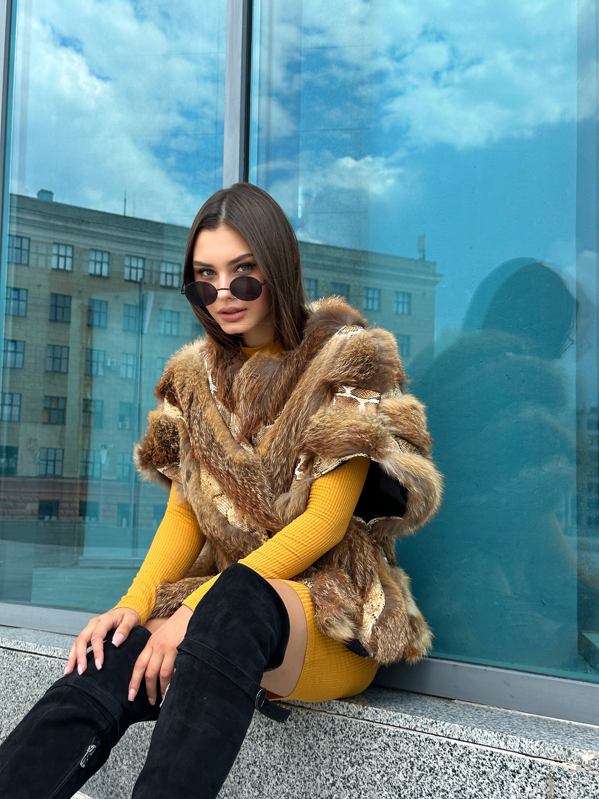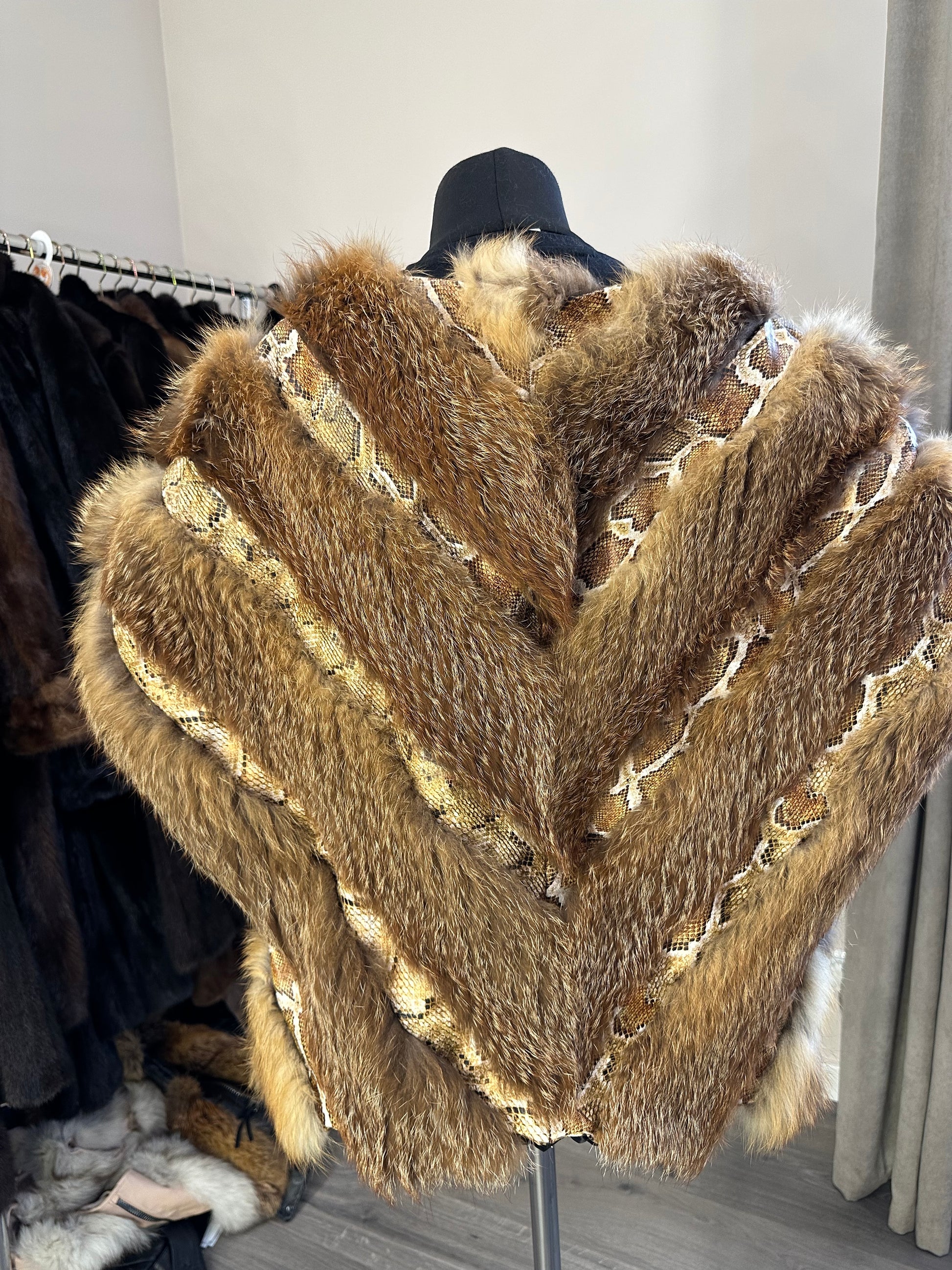 Women's vest made of natural fur of a polar fluffy fox and skin in "python" coloring Size M . An exclusive vest in which you will be irresistible and unique. Fur - fluffy, thick, warm, natural color. Model - the fur is laid with diagonal stripes, the armhole is wide, comfortable. no collar or pockets. Fastens with hooks. Viscose lining, hand-sewn. Ukrainian manufacturer.