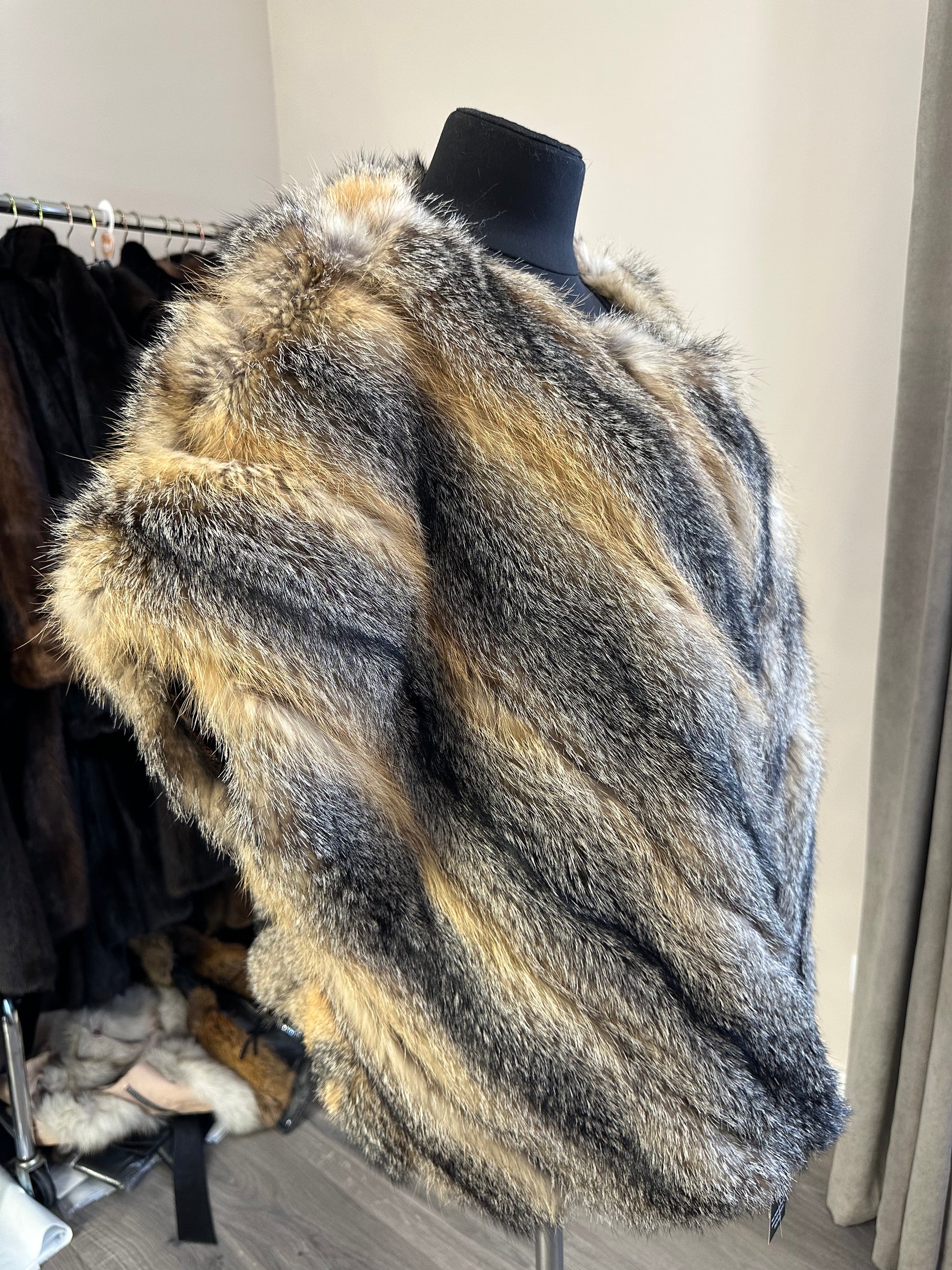 Women's Brand New Real natural coyote Fur VEST waist Coat Sleeves Less 1109979 size L XL